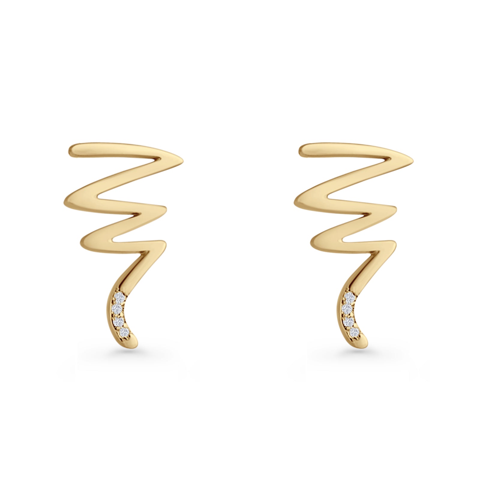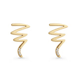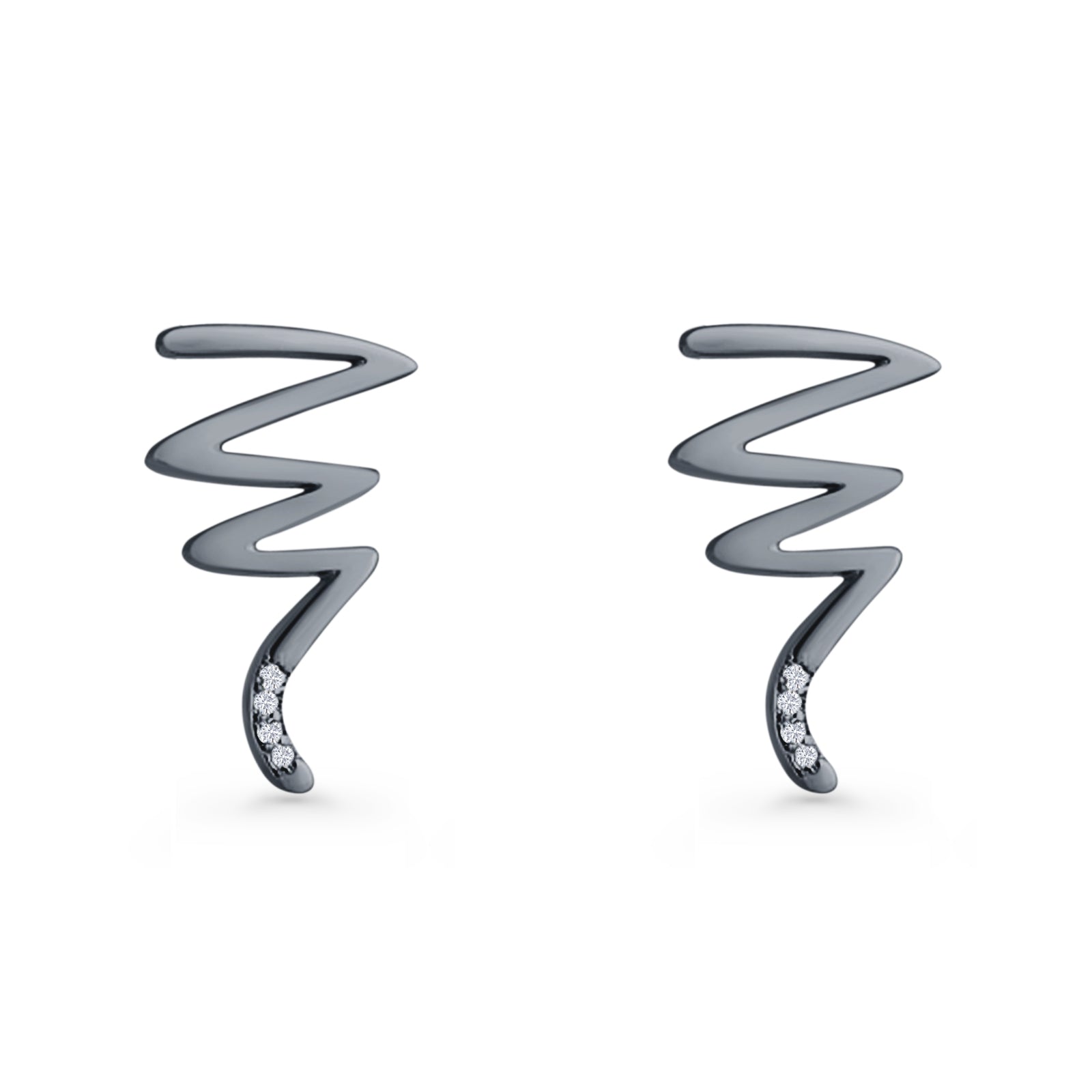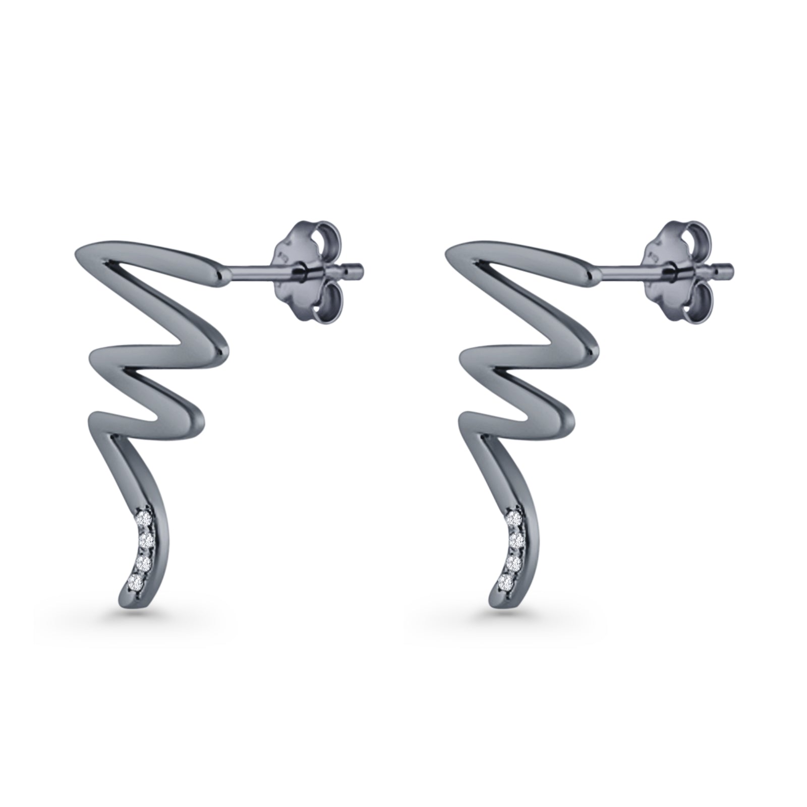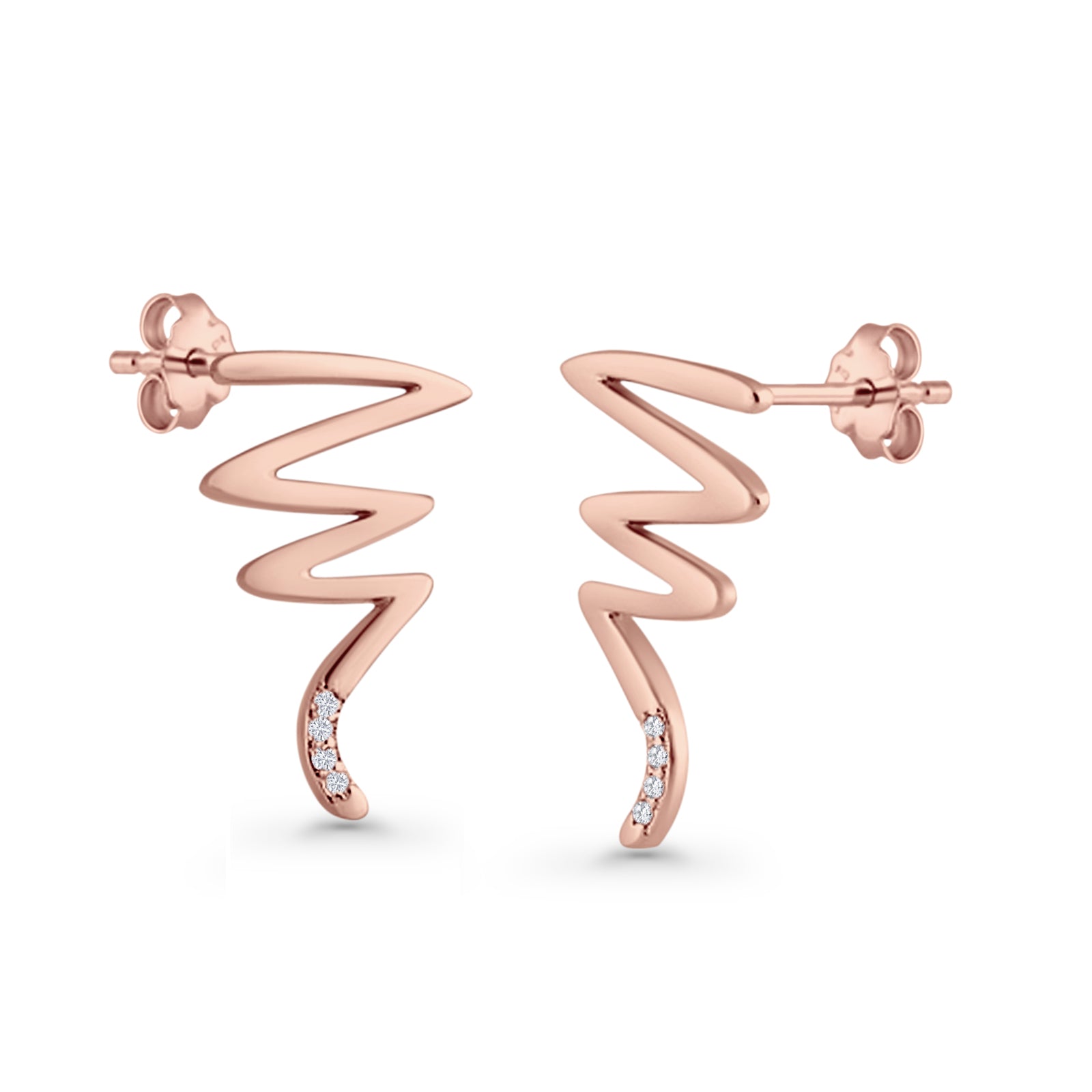 Minimalist 19.6mm Zig Zag Stud Earrings Cubic Zirconia 925 Sterling Silver