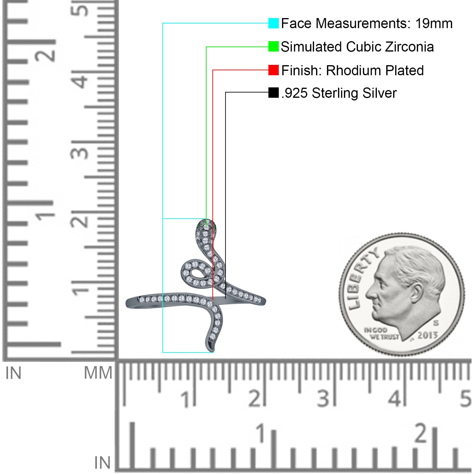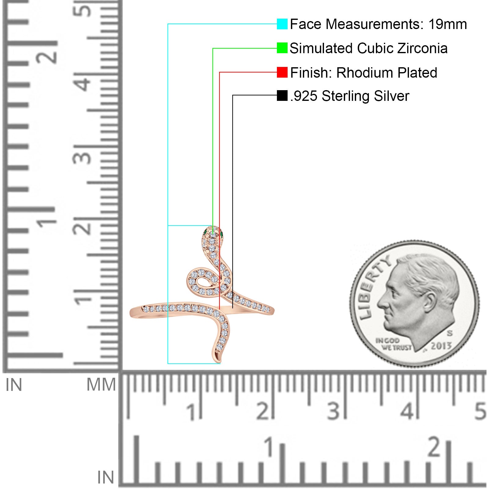 Ring Design: Cluster Cubic Zirconia Snake Ring.