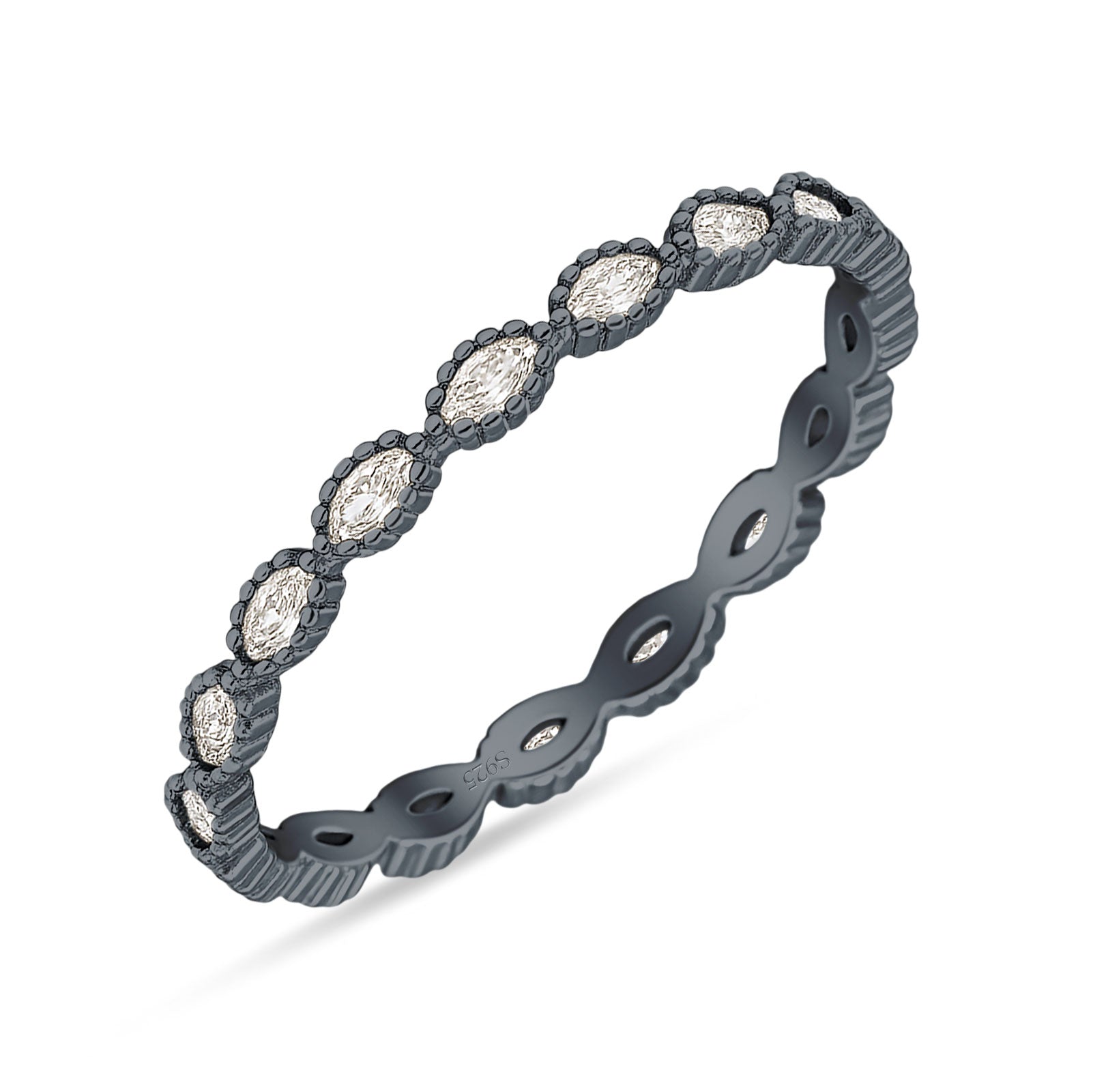 Minimalist 10mm Black Onyx Solitaire Oxidized Ring 925 Sterling Silver