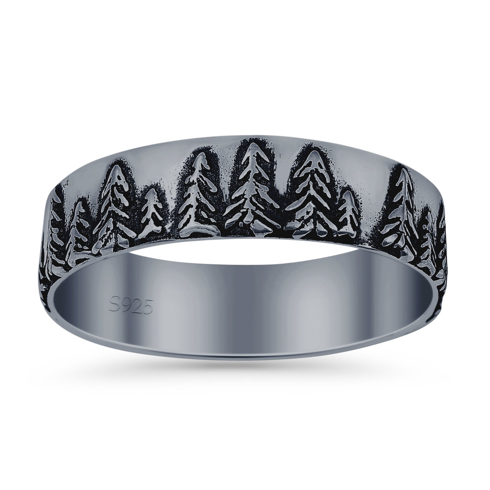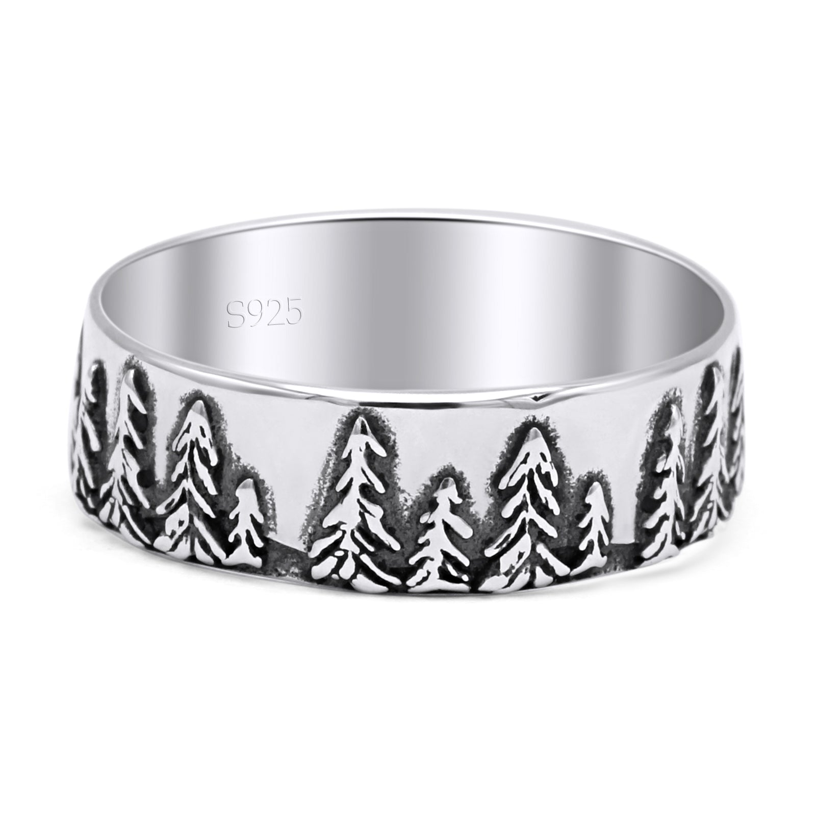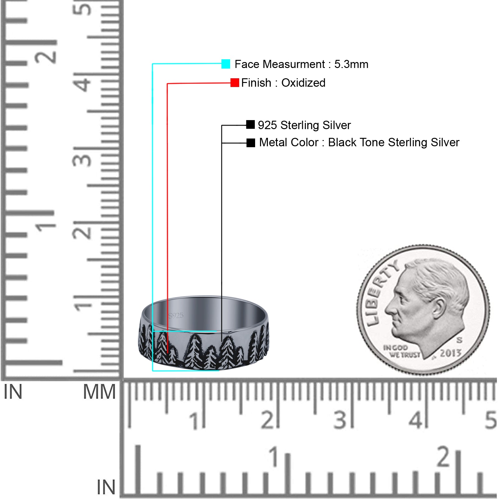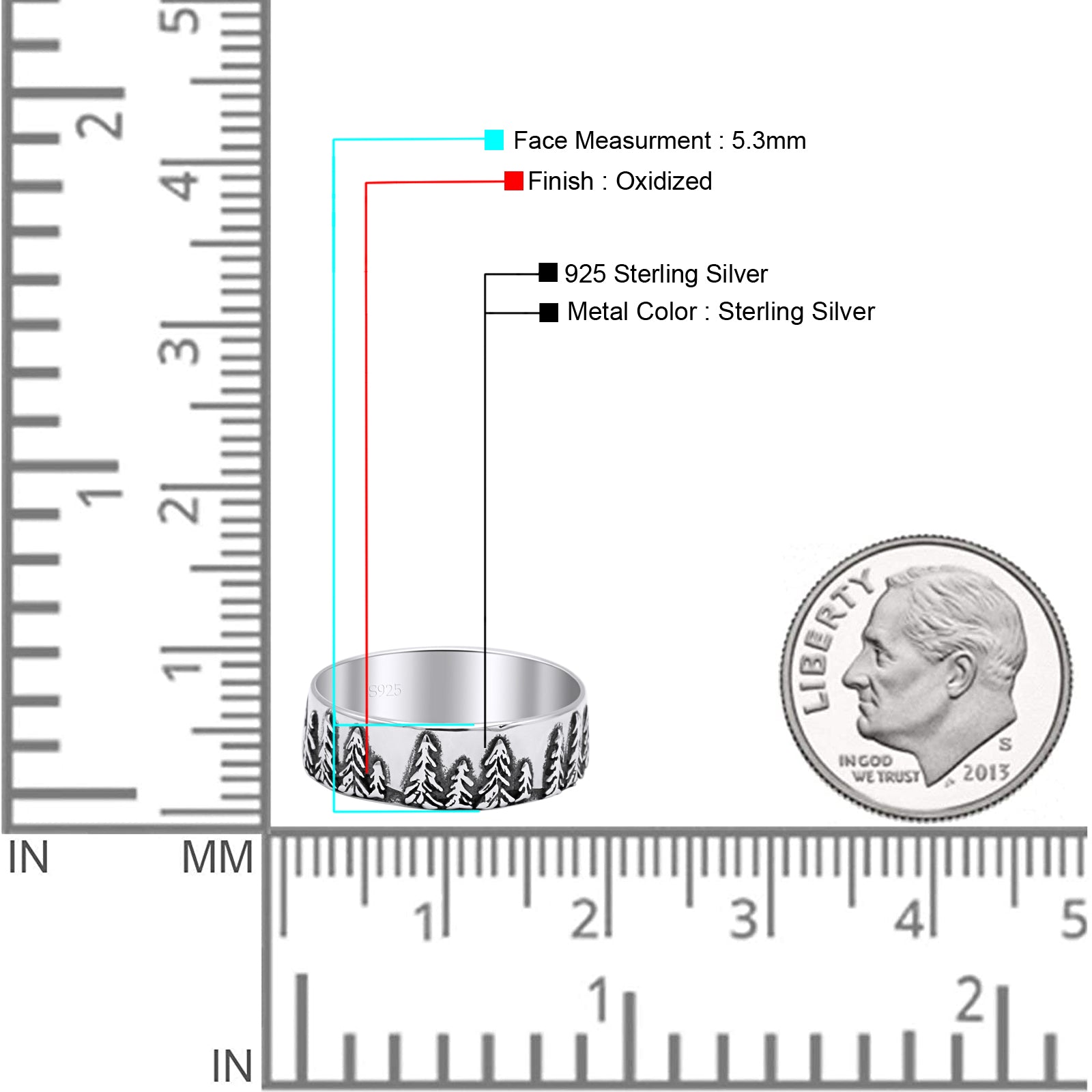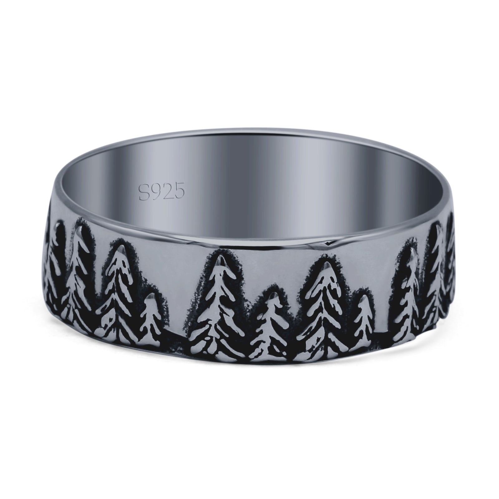 Minimalist 5.3mm Forest Trees Classic Ring Oxidized Band 925 Sterling Silver