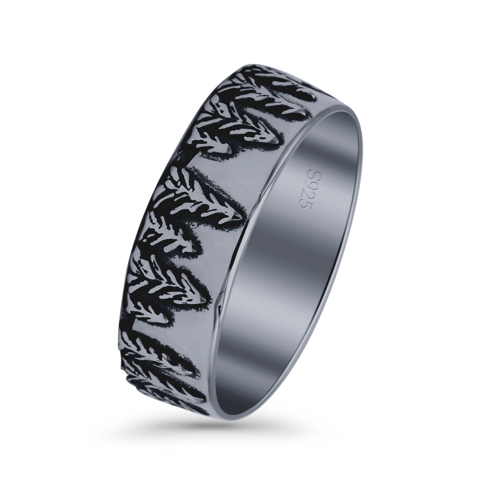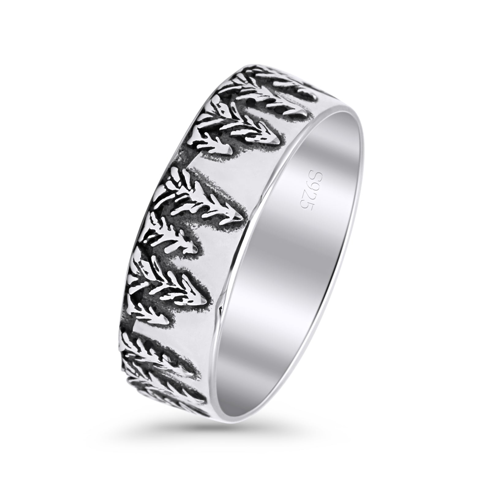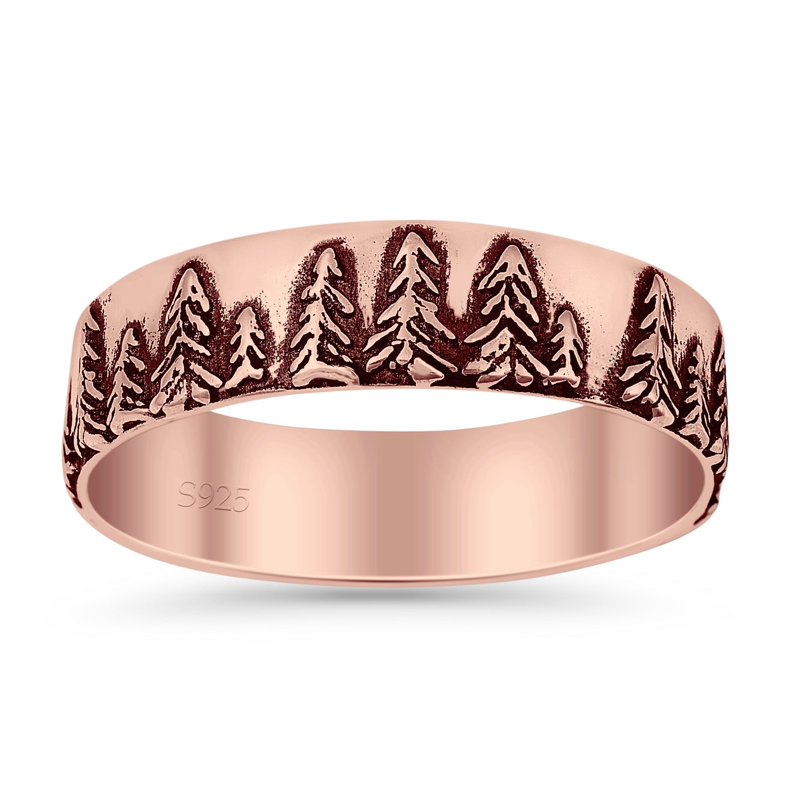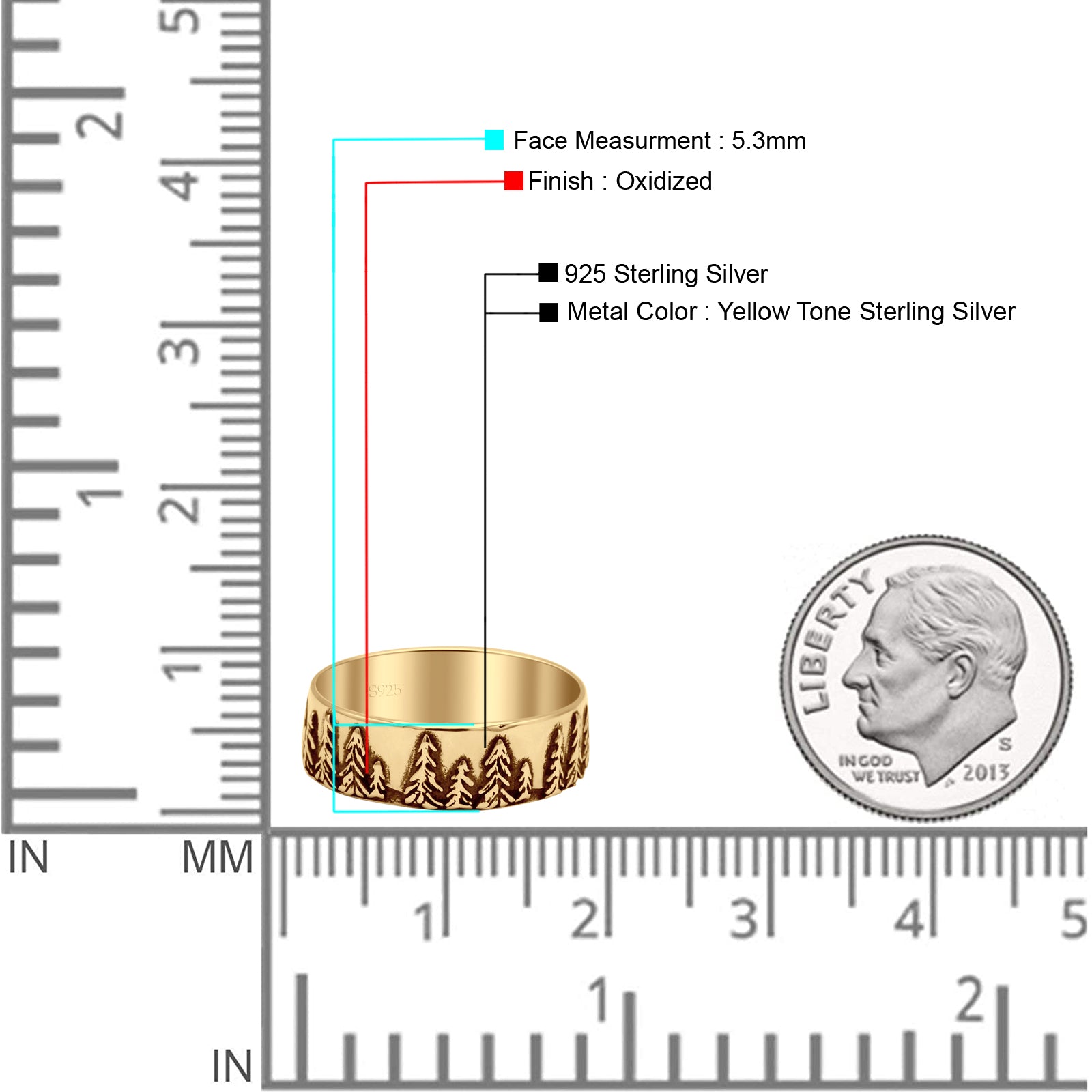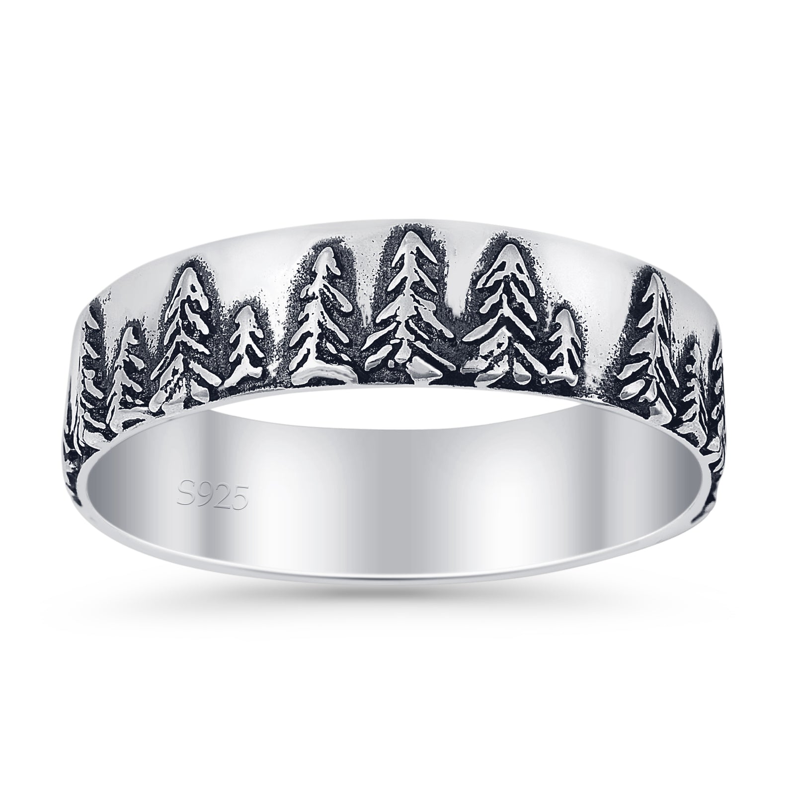 Minimalist 5.3mm Forest Trees Classic Ring Oxidized Band 925 Sterling Silver