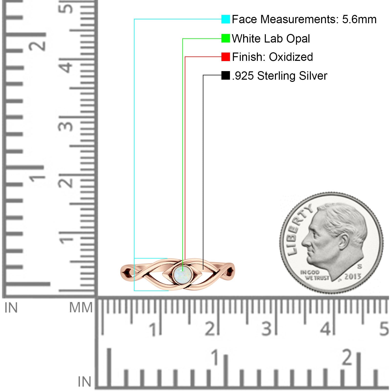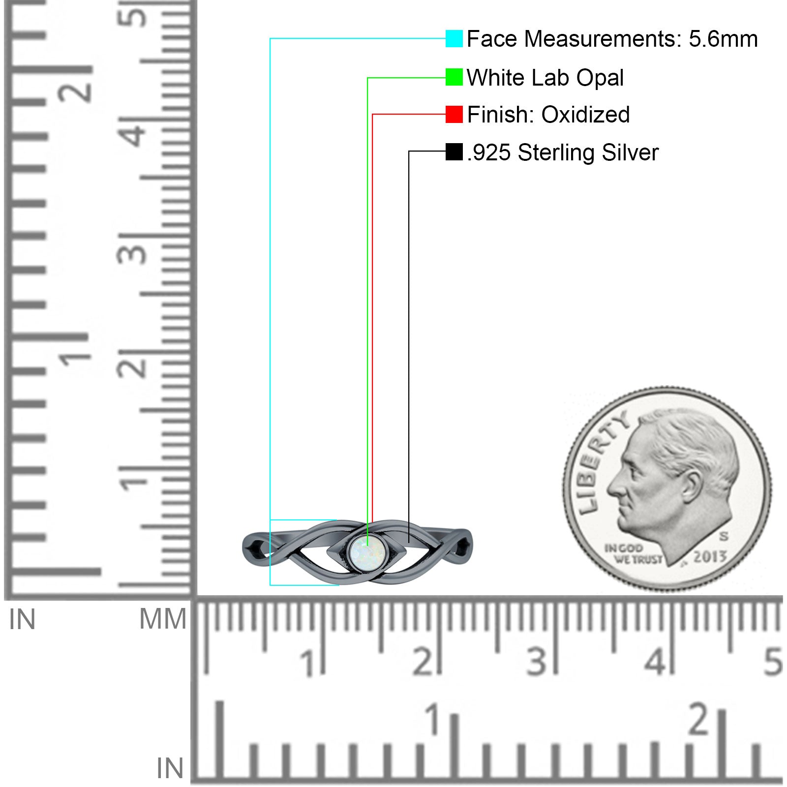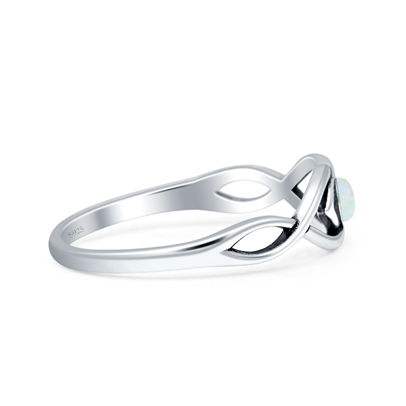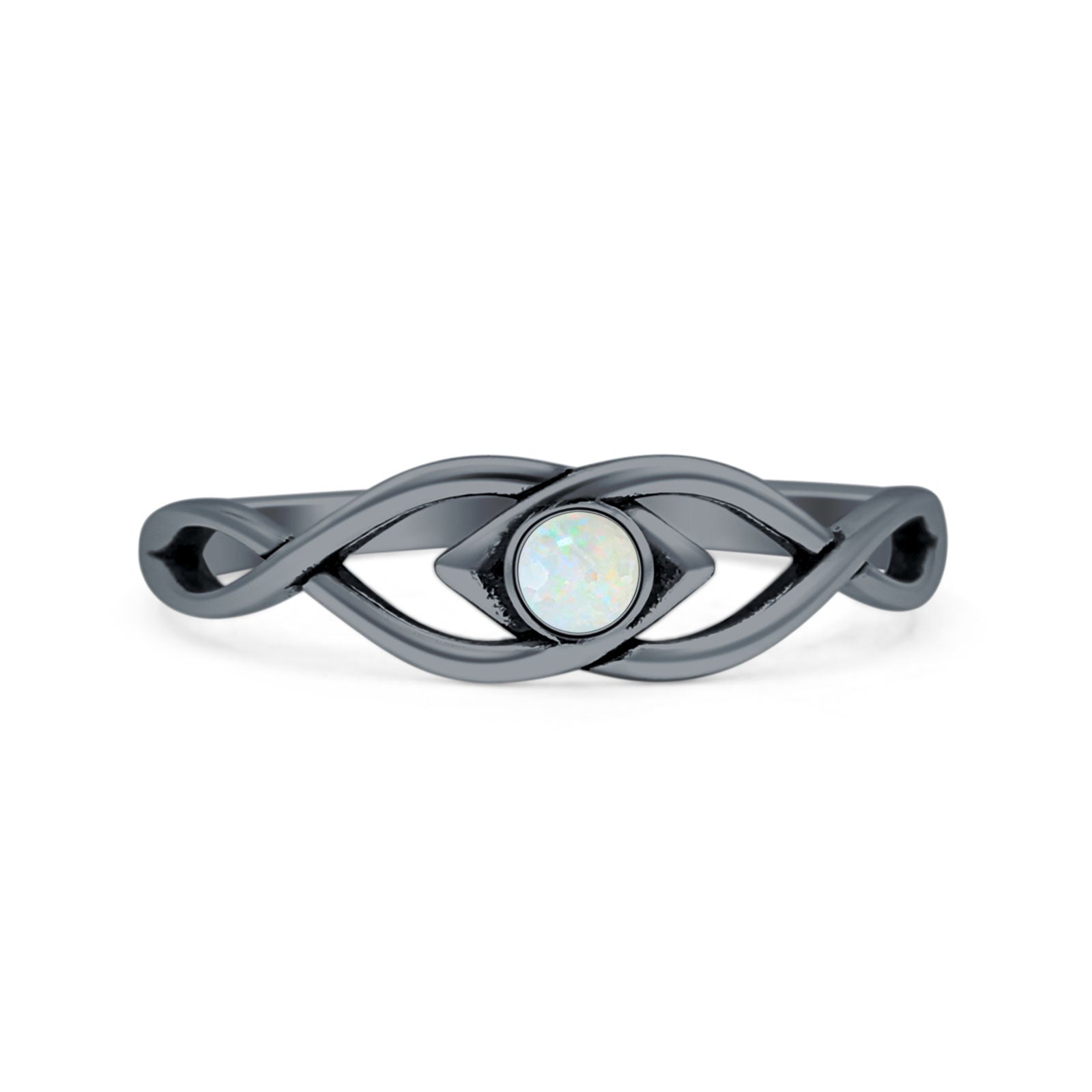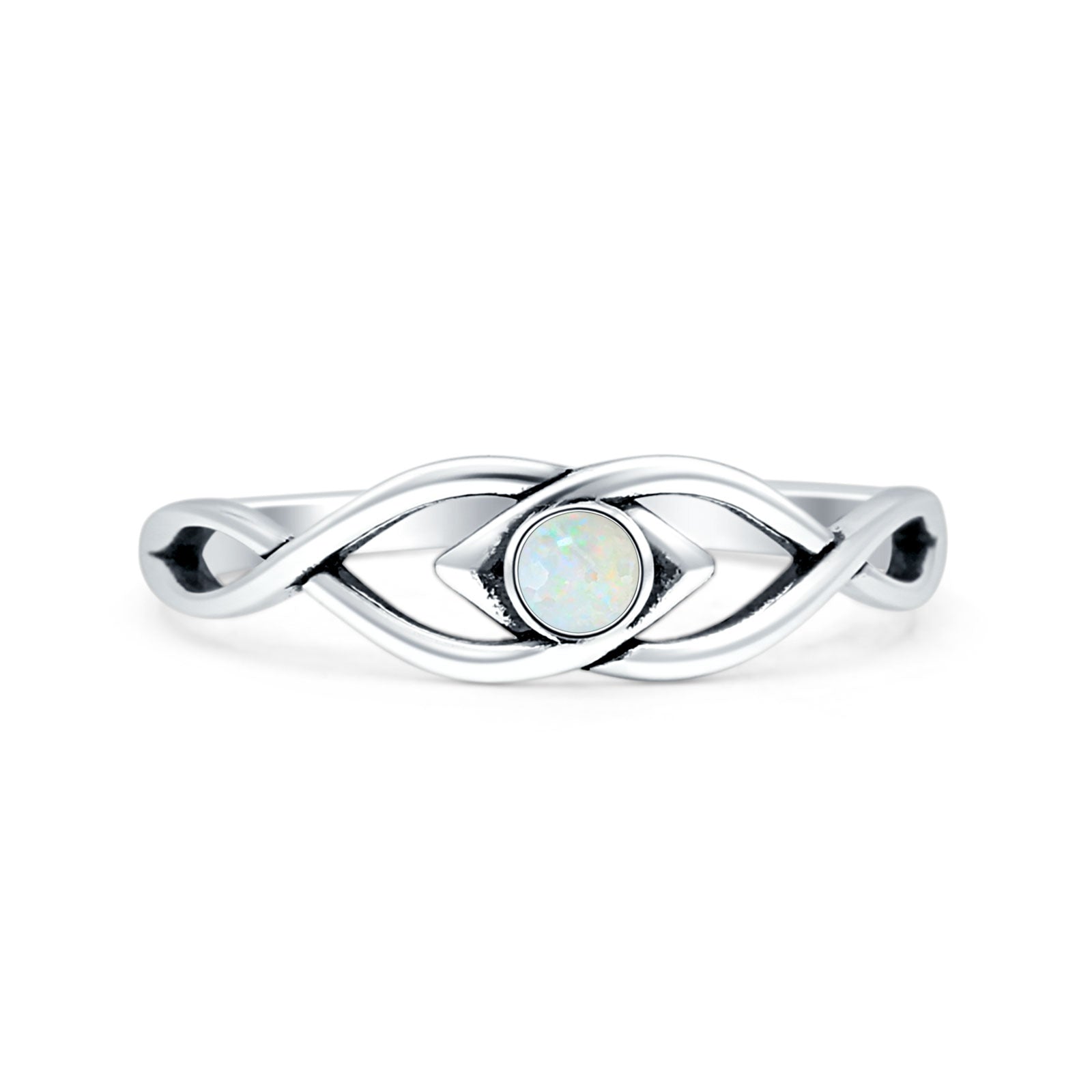 Minimalist 5.6mm Round Lab Created White Opal Twisted Eye Ring Oxidized 925 Sterling Silver