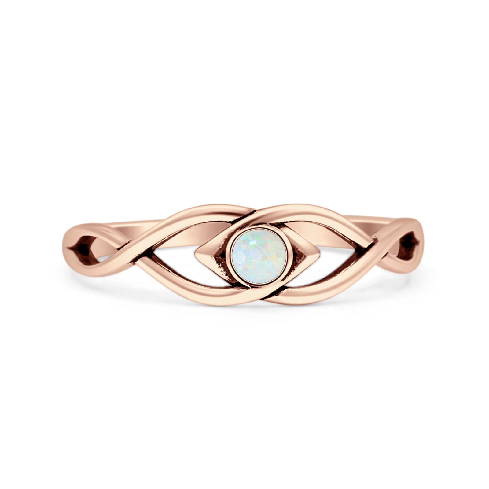 Design: Round Lab Created White Opal Twisted Eye Ring.
