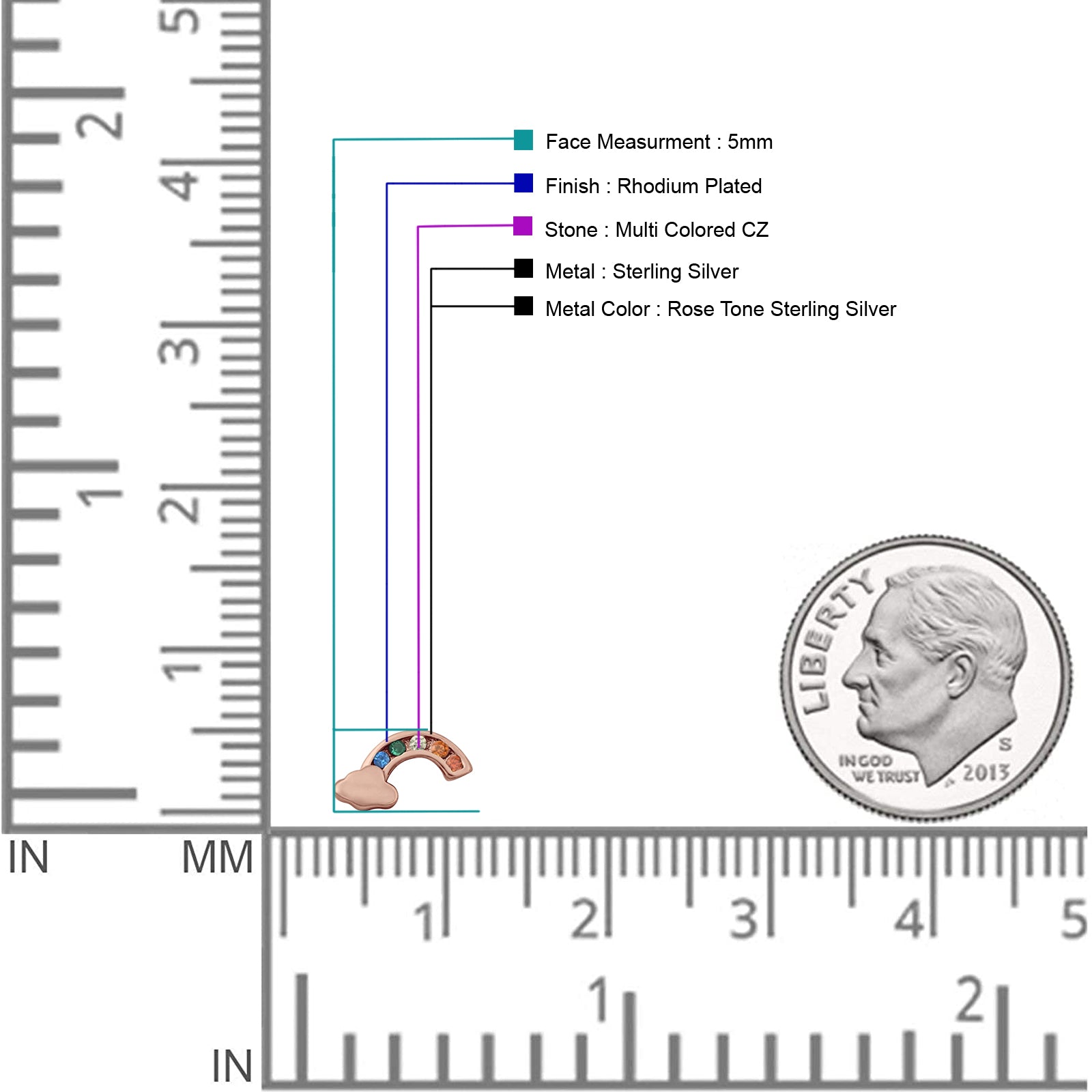 Gemstone: Multicolor Cubic Zirconia.