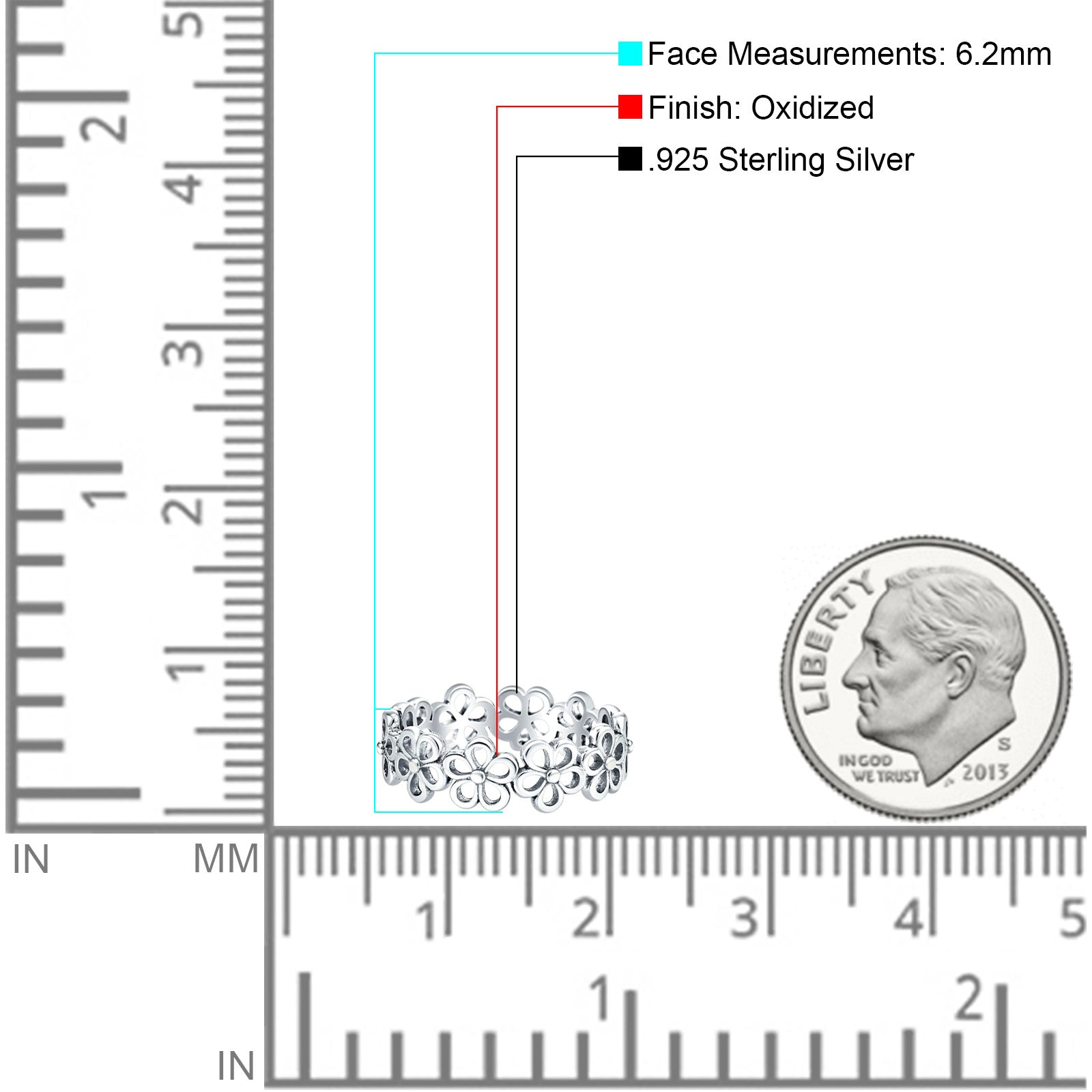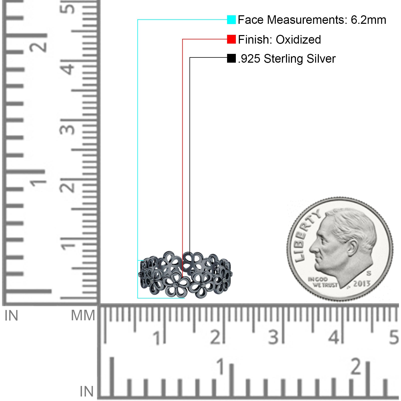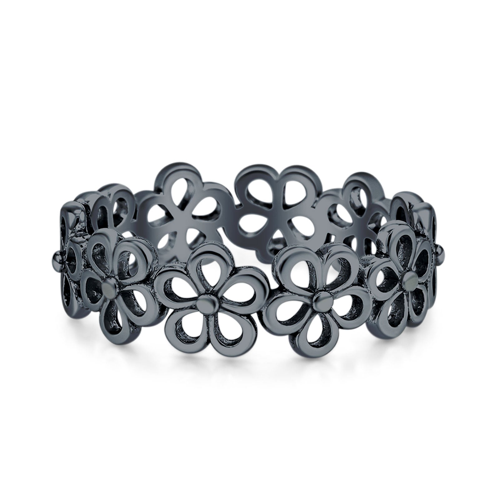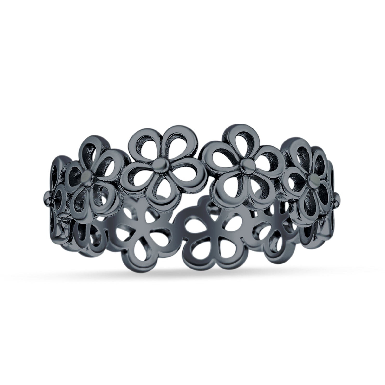 Minimalist 6.2mm Flower Band Oxidized 925 Sterling Silver