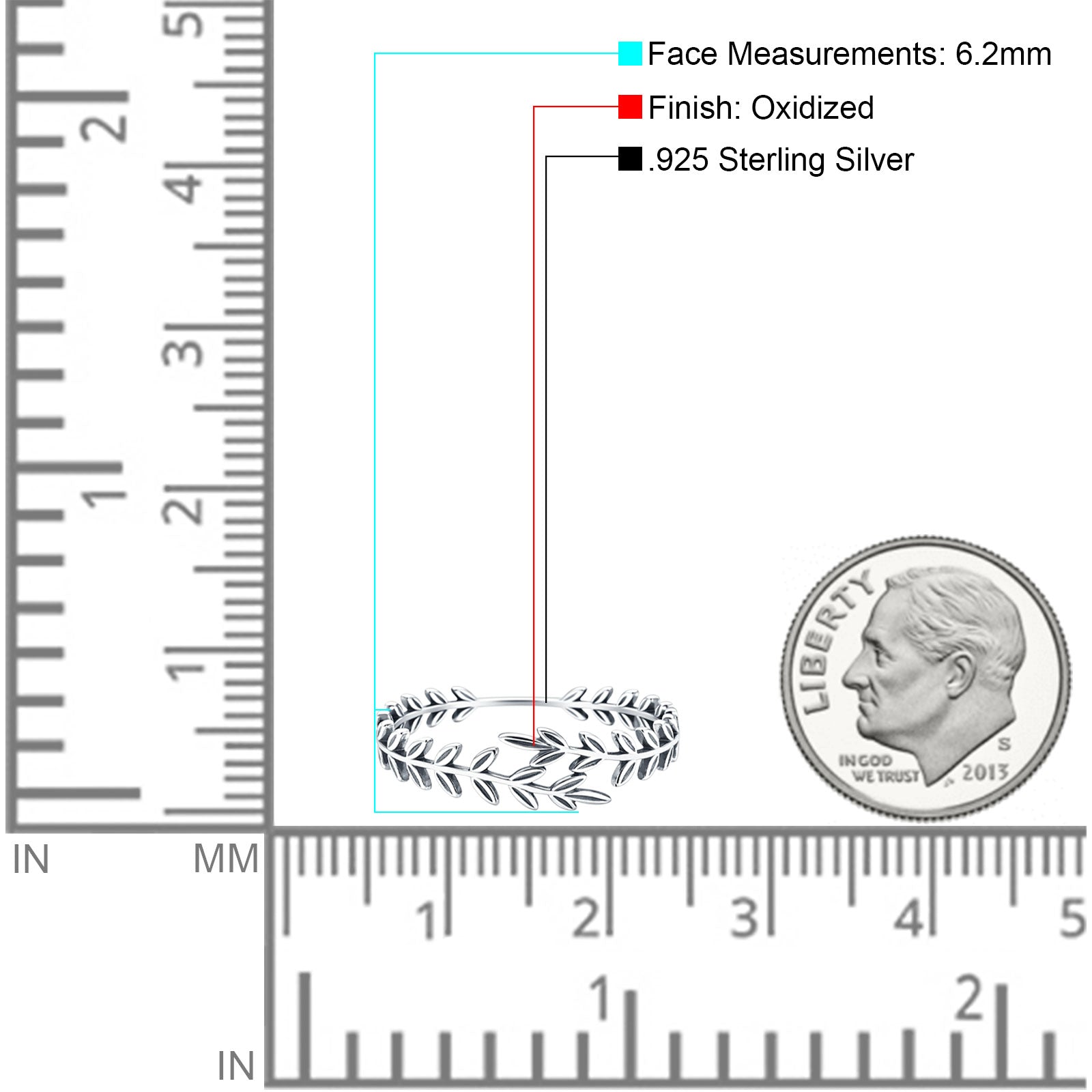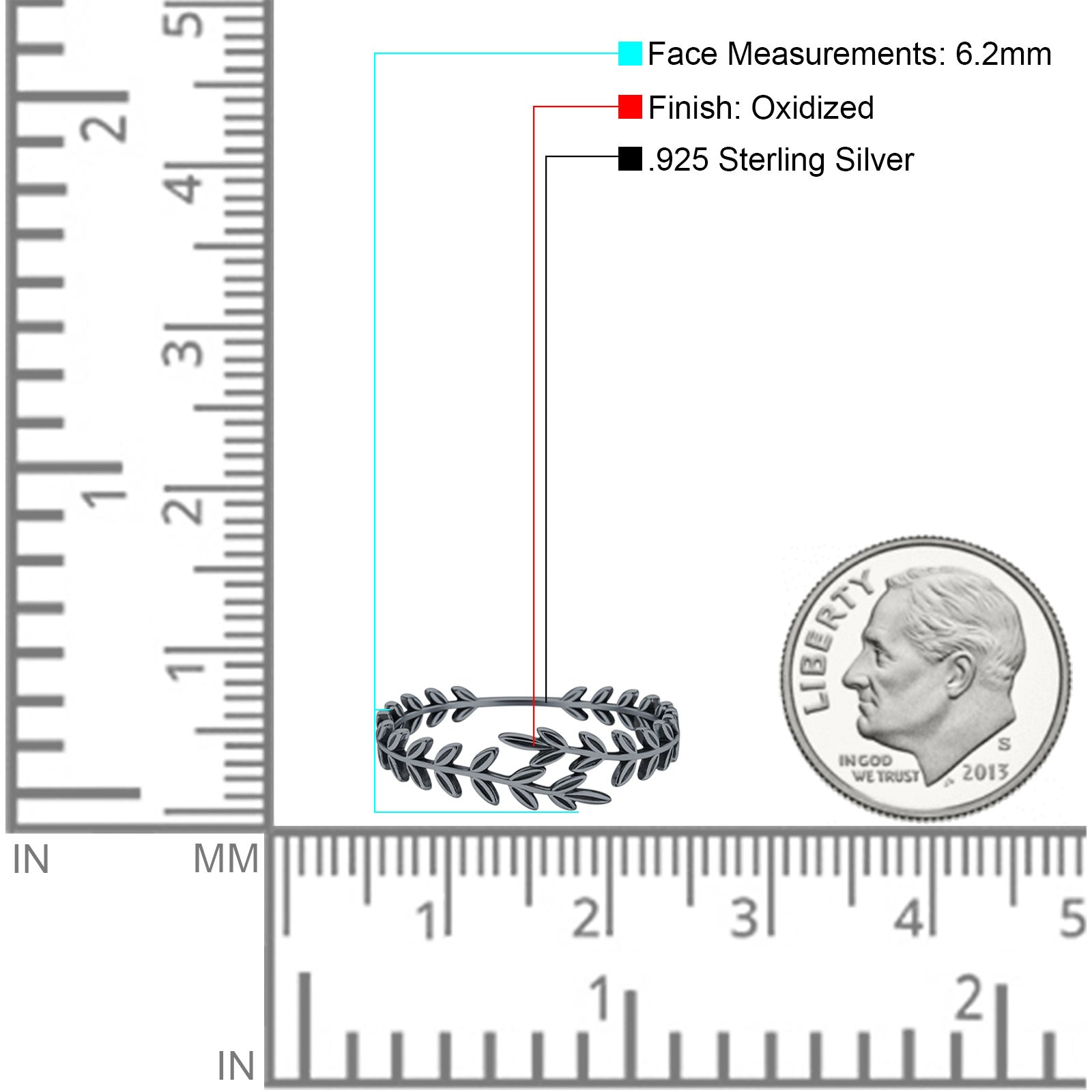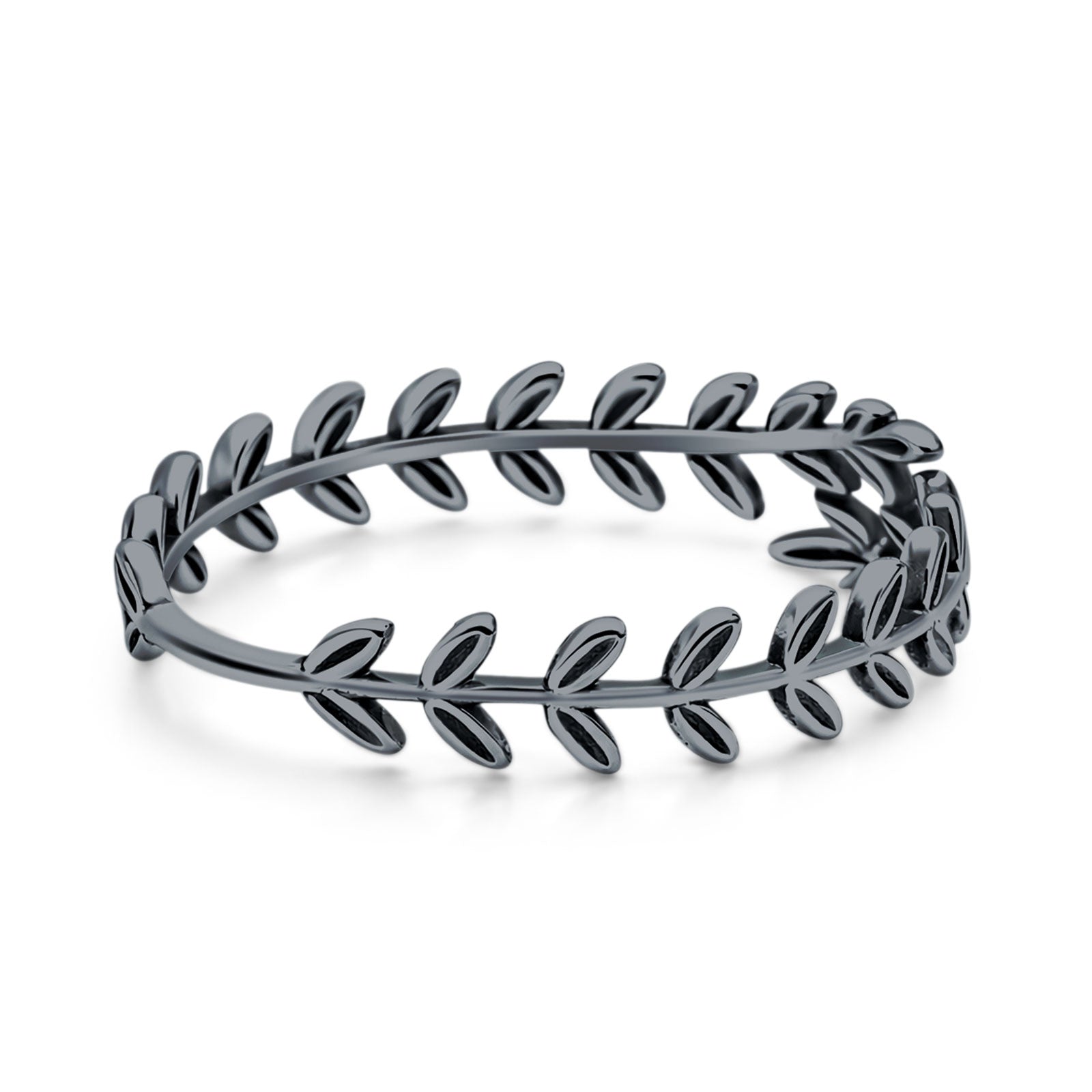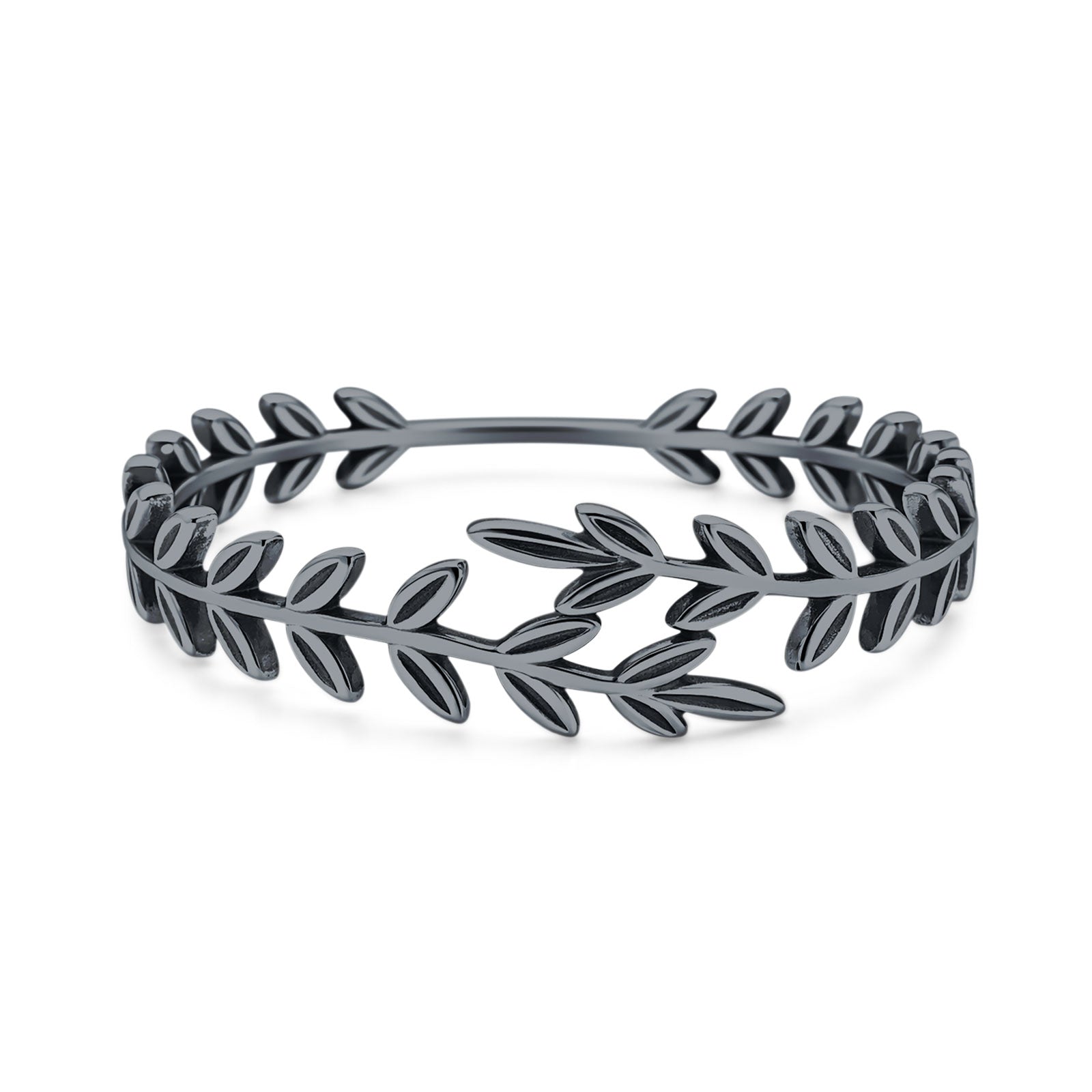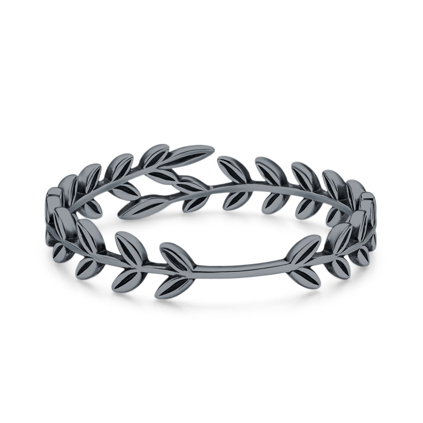Minimalist 6.2mm Olive Branch Band Oxidized 925 Sterling Silver