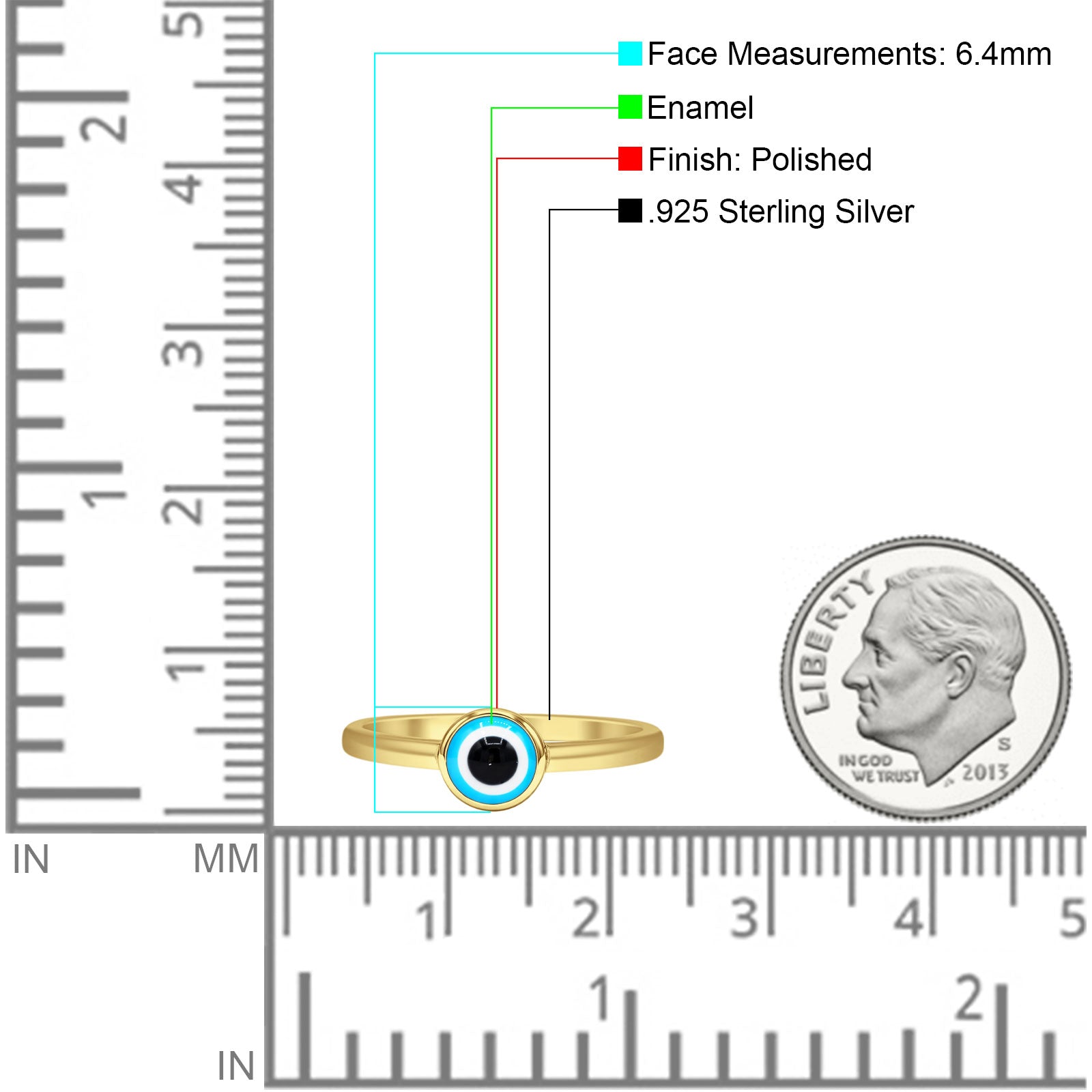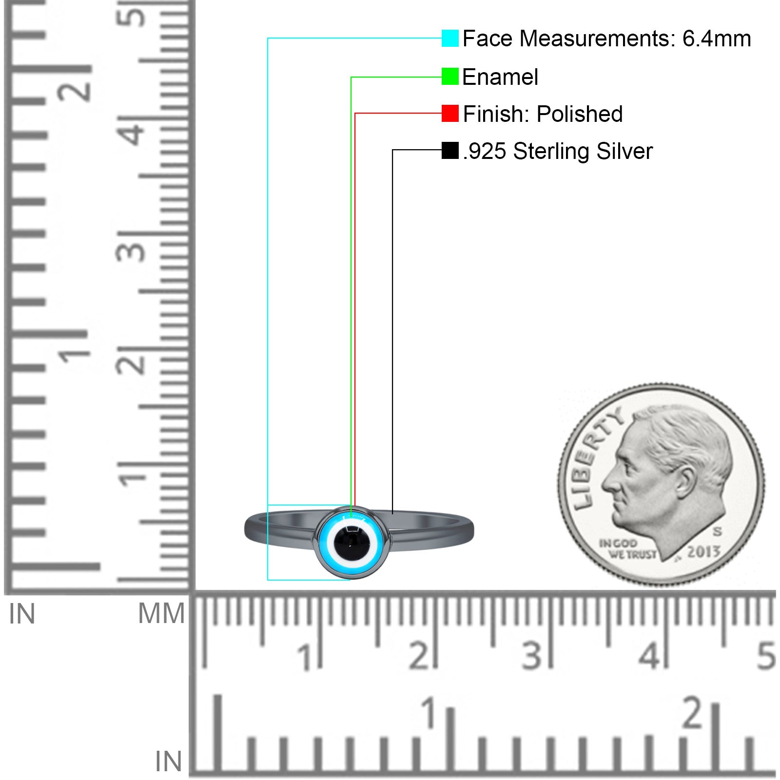 Minimalist 6.4mm Evil Eye Ring 925 Sterling Silver