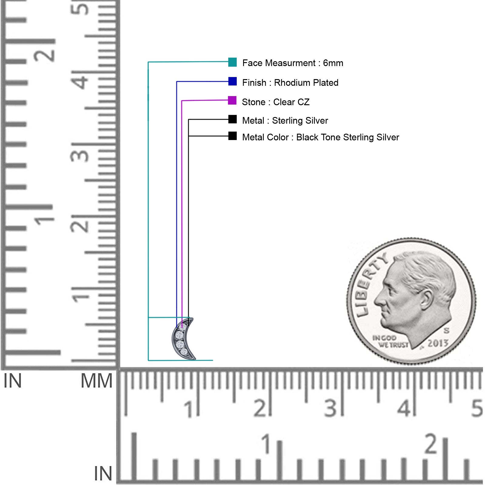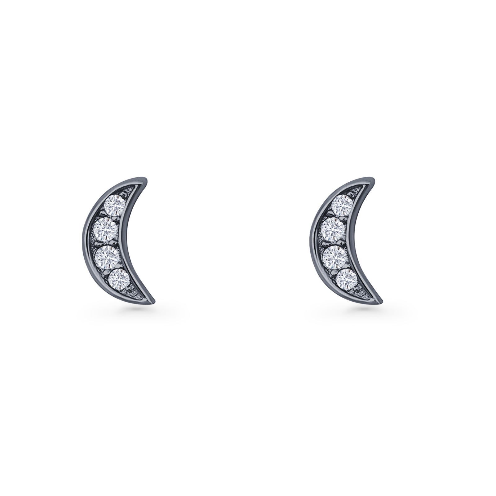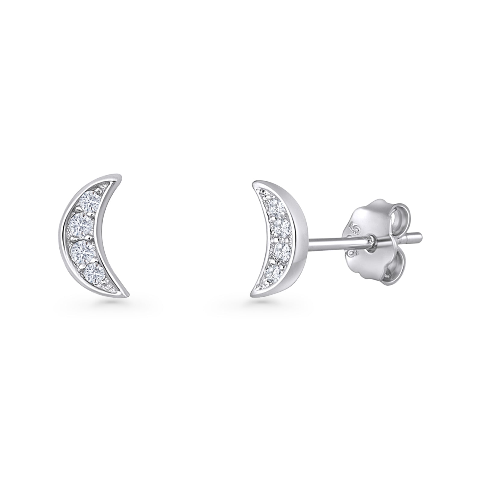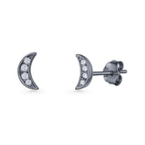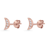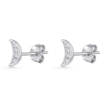 Minimalist 6mm Half Moon Stud Earring Cubic Zirconia 925 Sterling Silver
