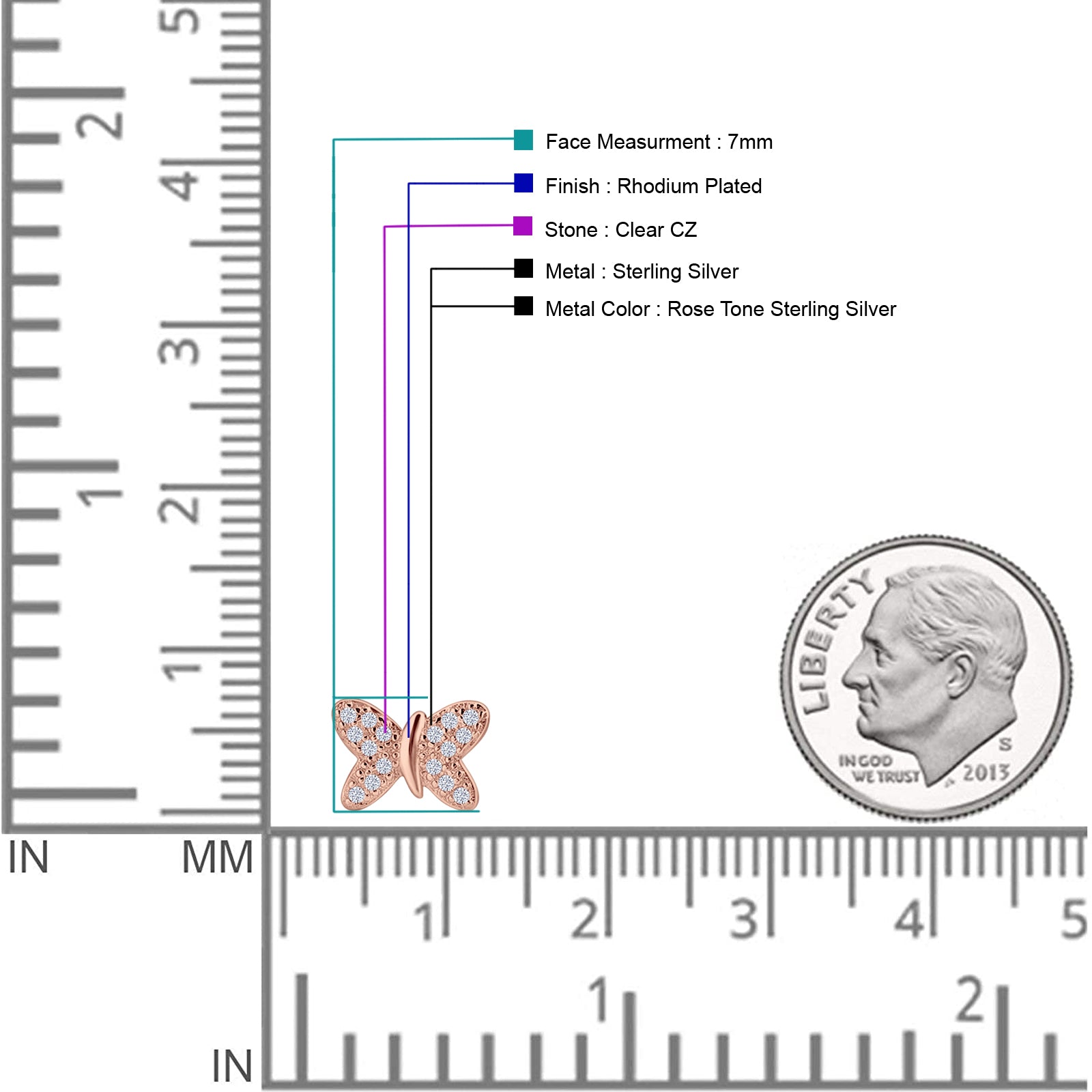 CZ & Blue Sapphire CZ Rose Tone Silver