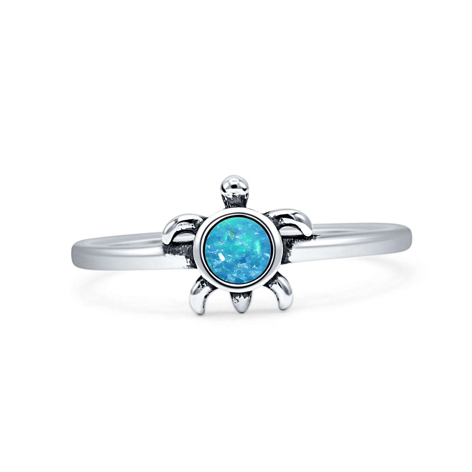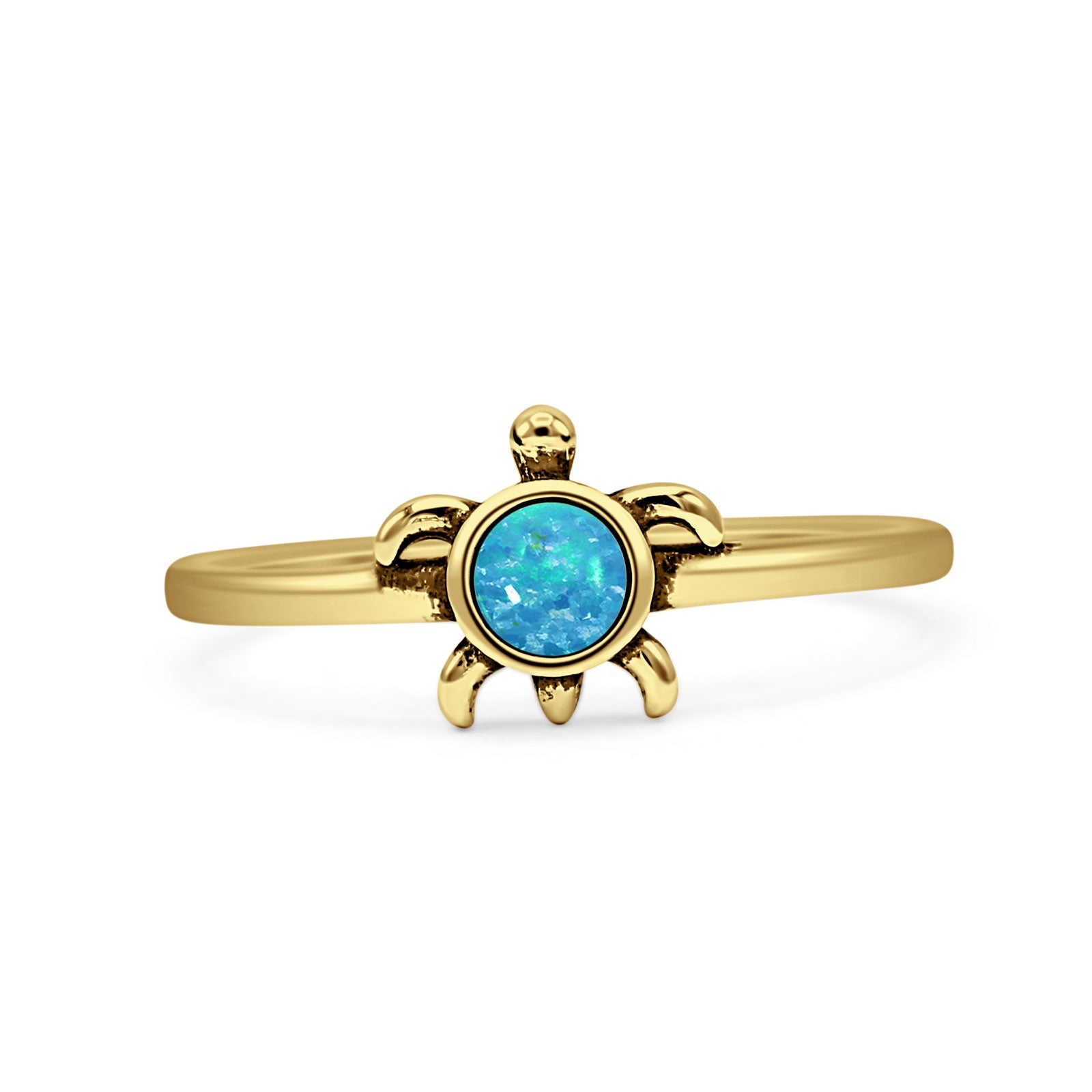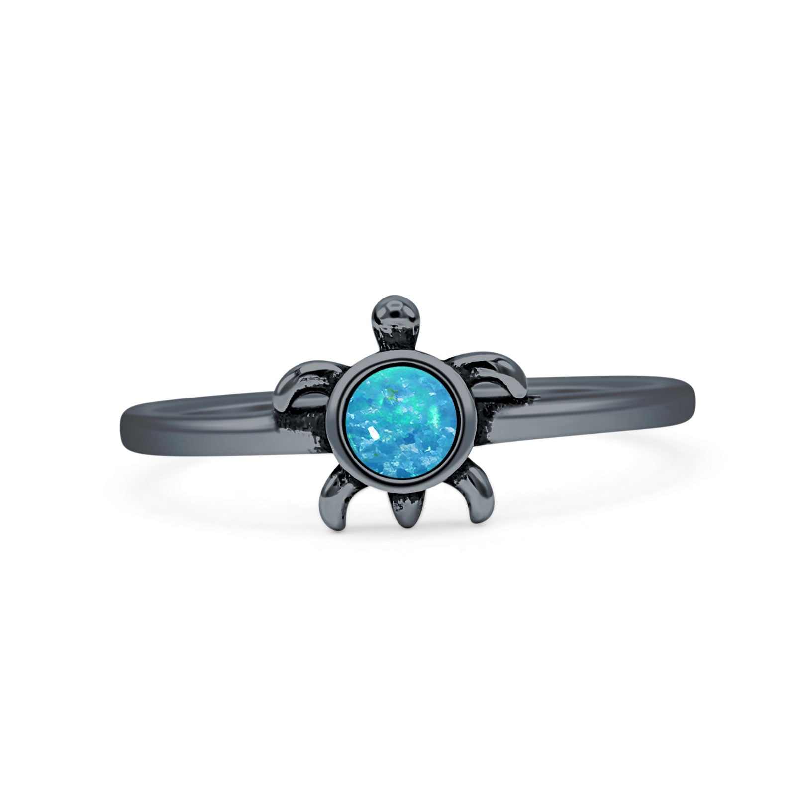 Design: Round Lab Created Blue Opal Turtle Ring.