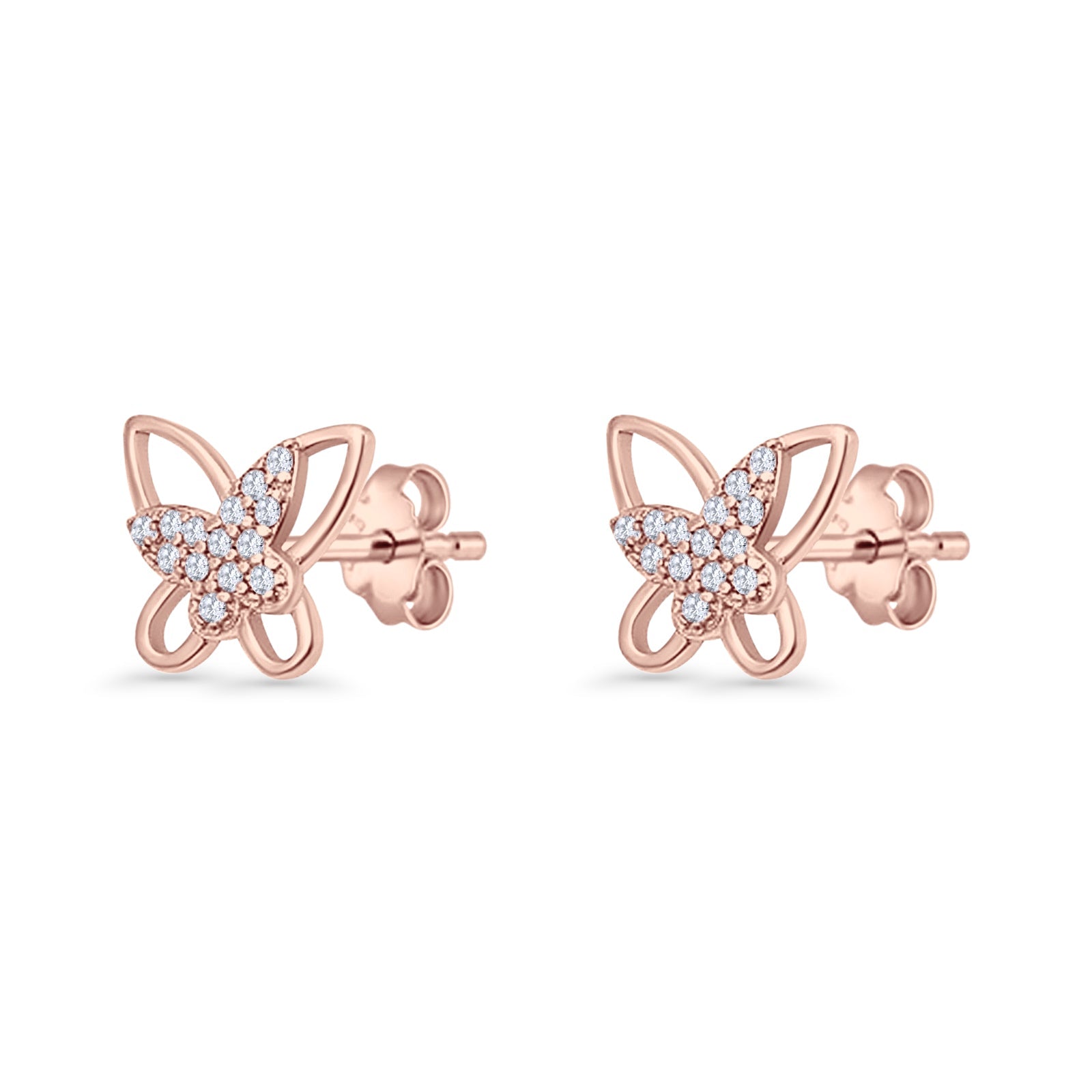 CZ & Blue Sapphire CZ Rose Tone Silver