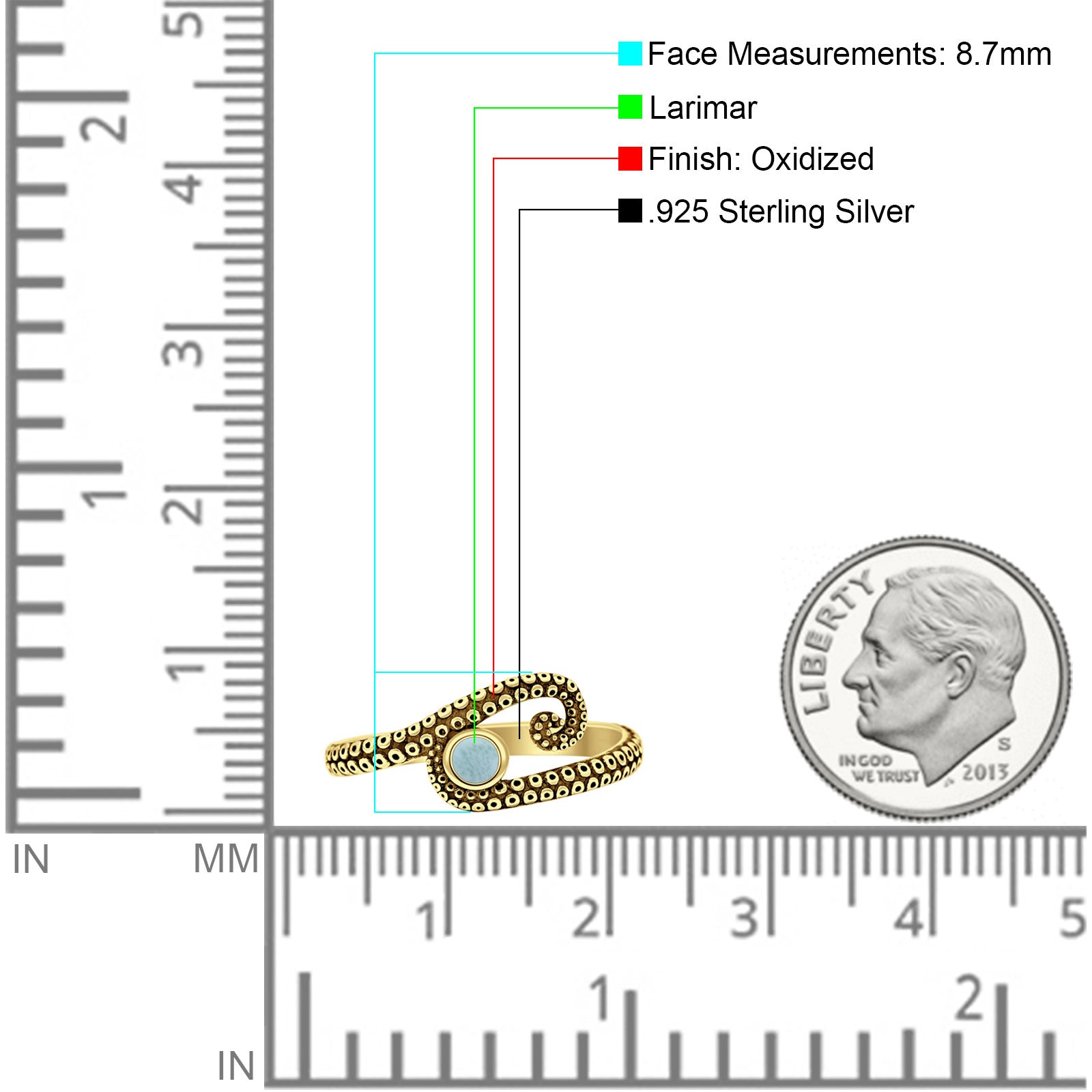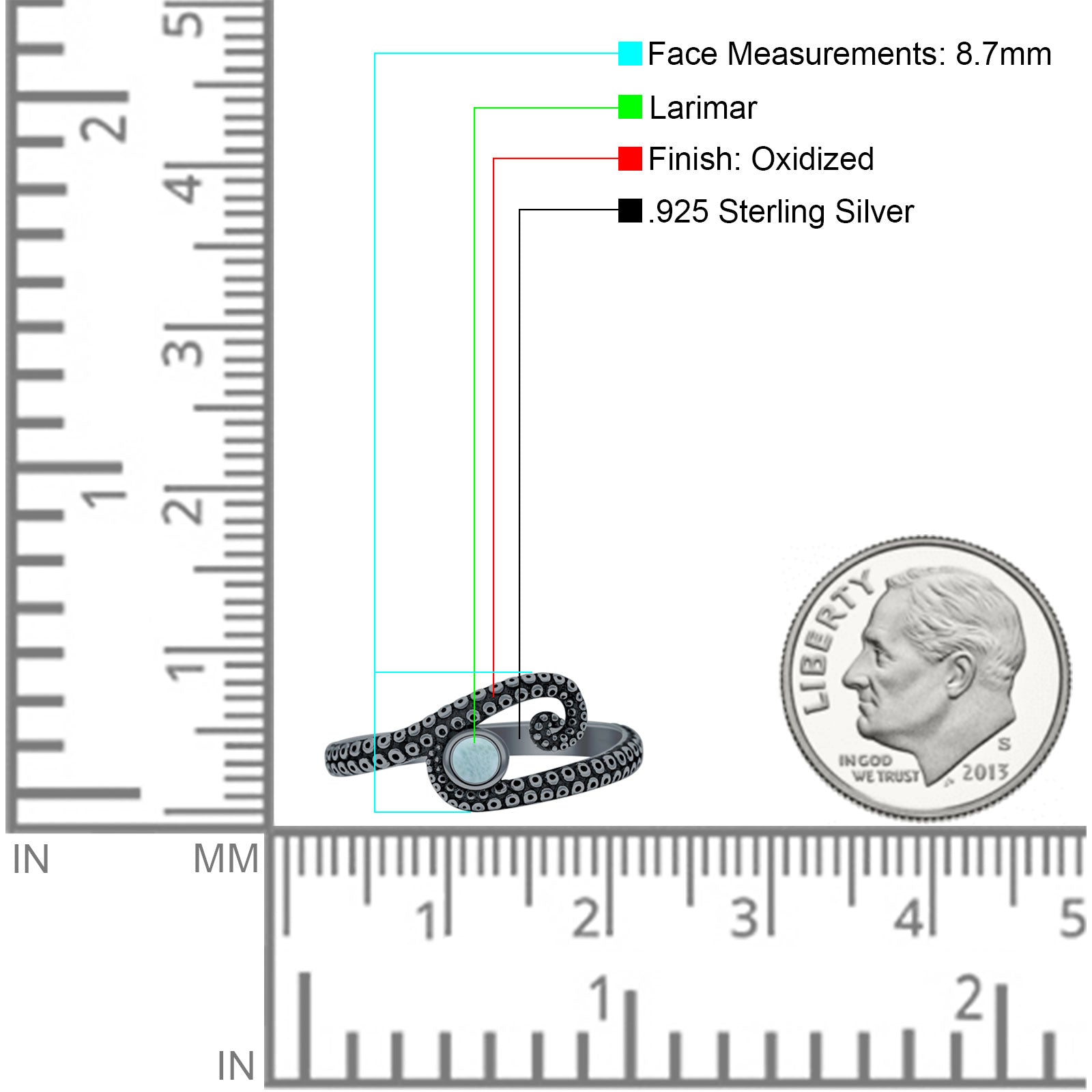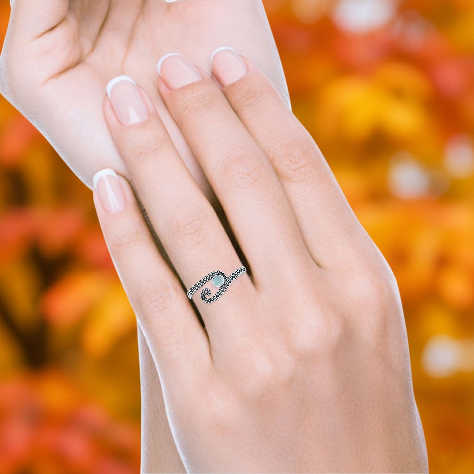 Design: Round Larimar Octopus Tentacle Ring.