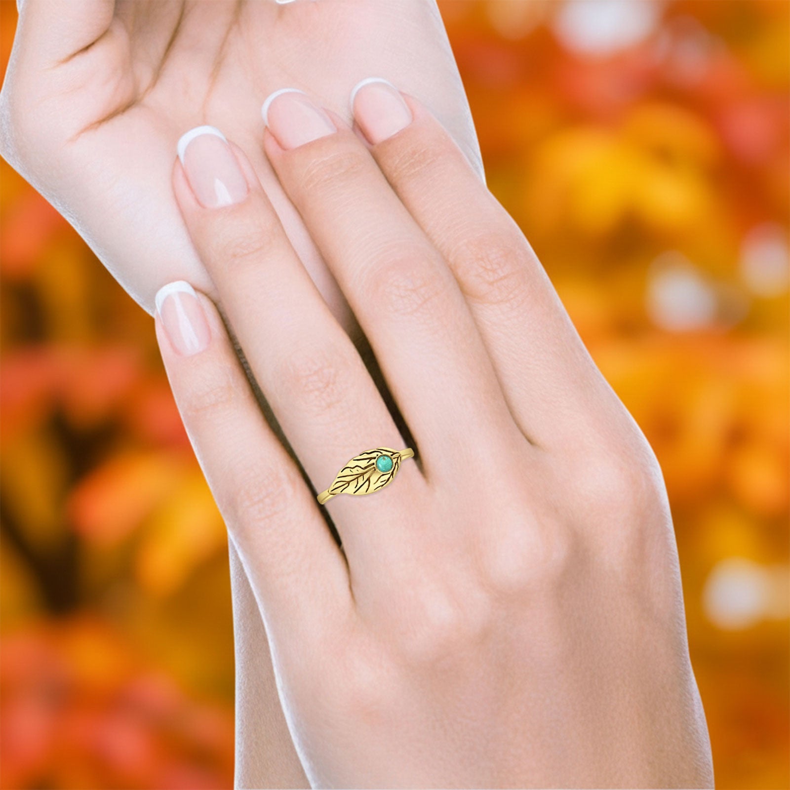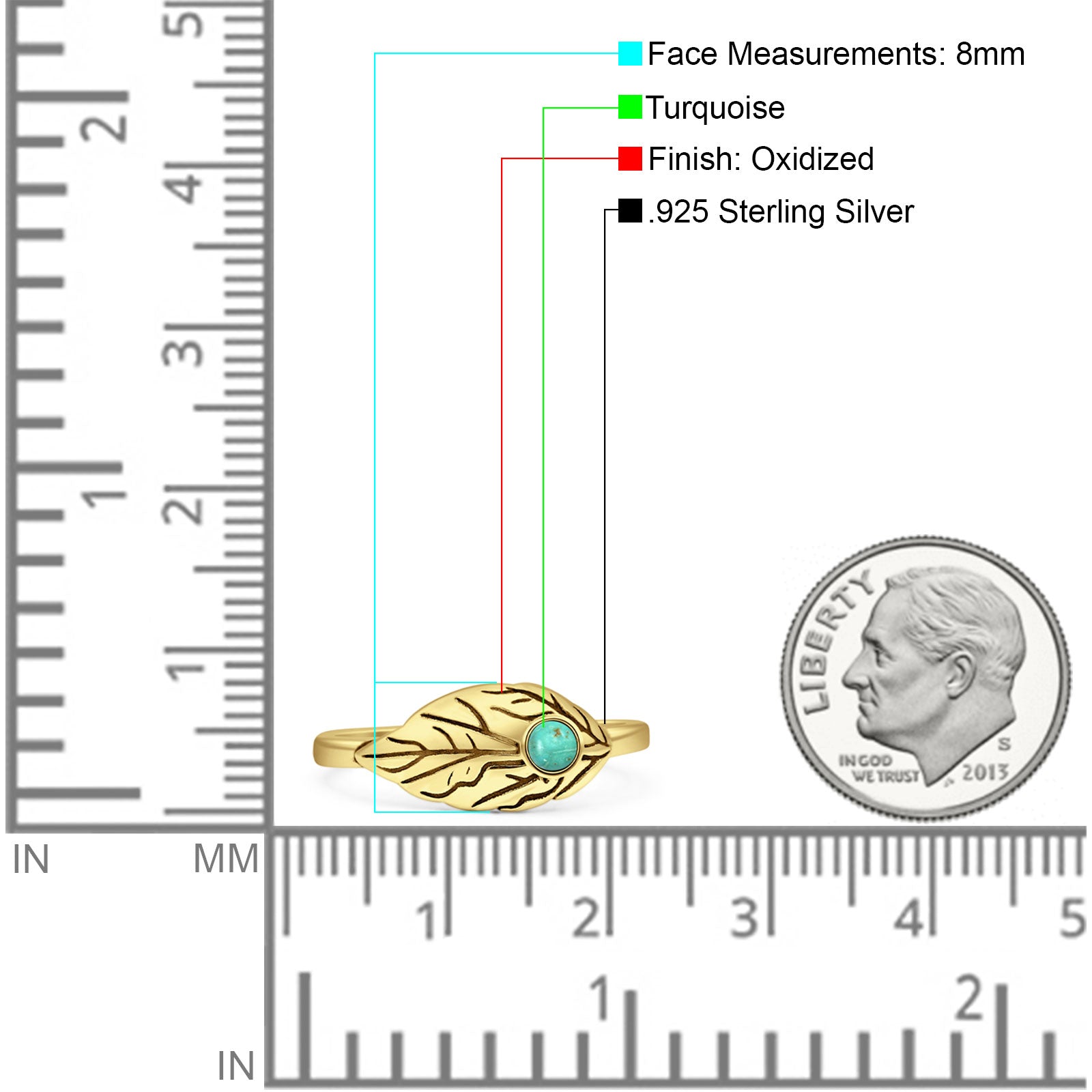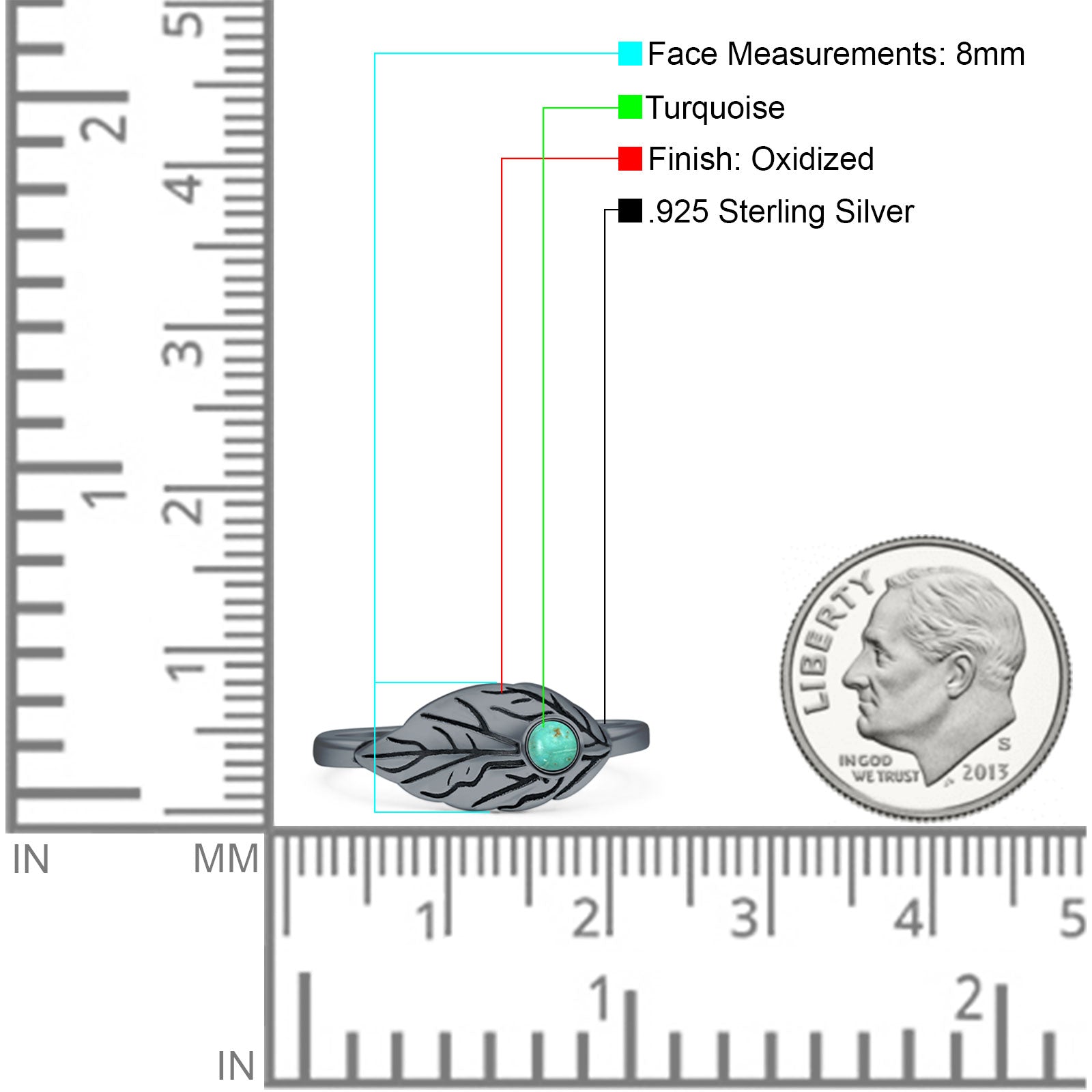 Minimalist 8mm Round Turquoise Leaf Ring Oxidized 925 Sterling Silver