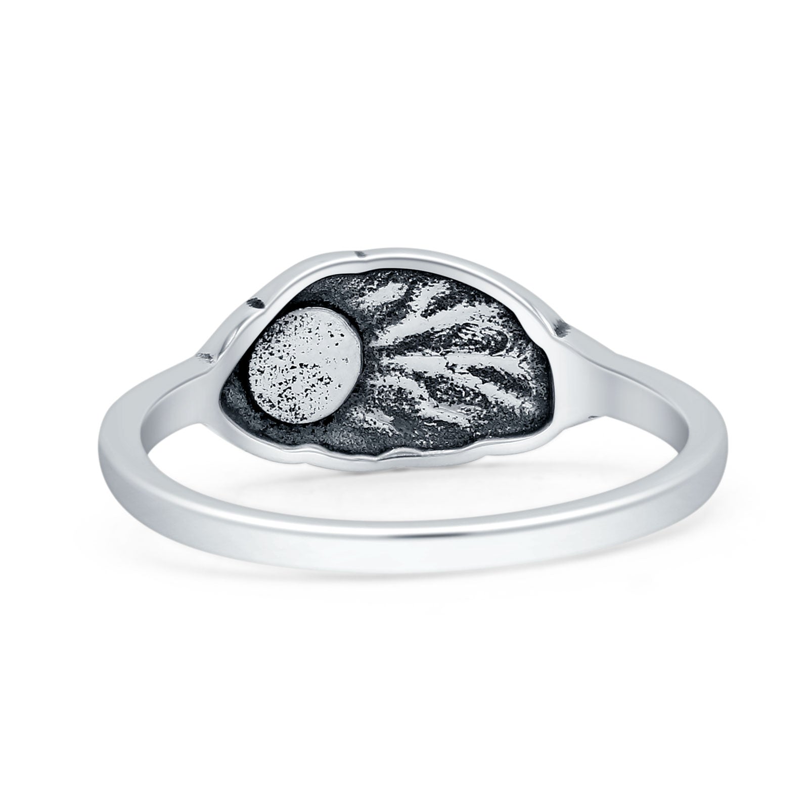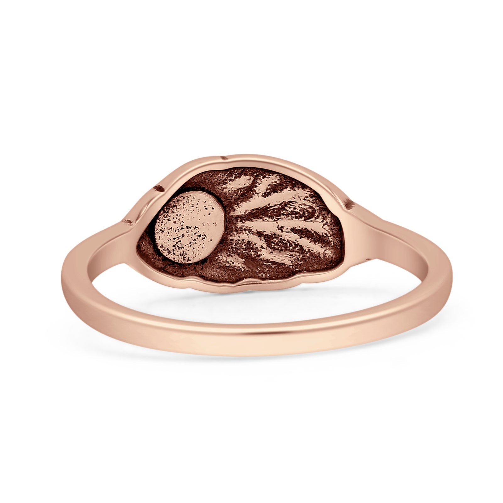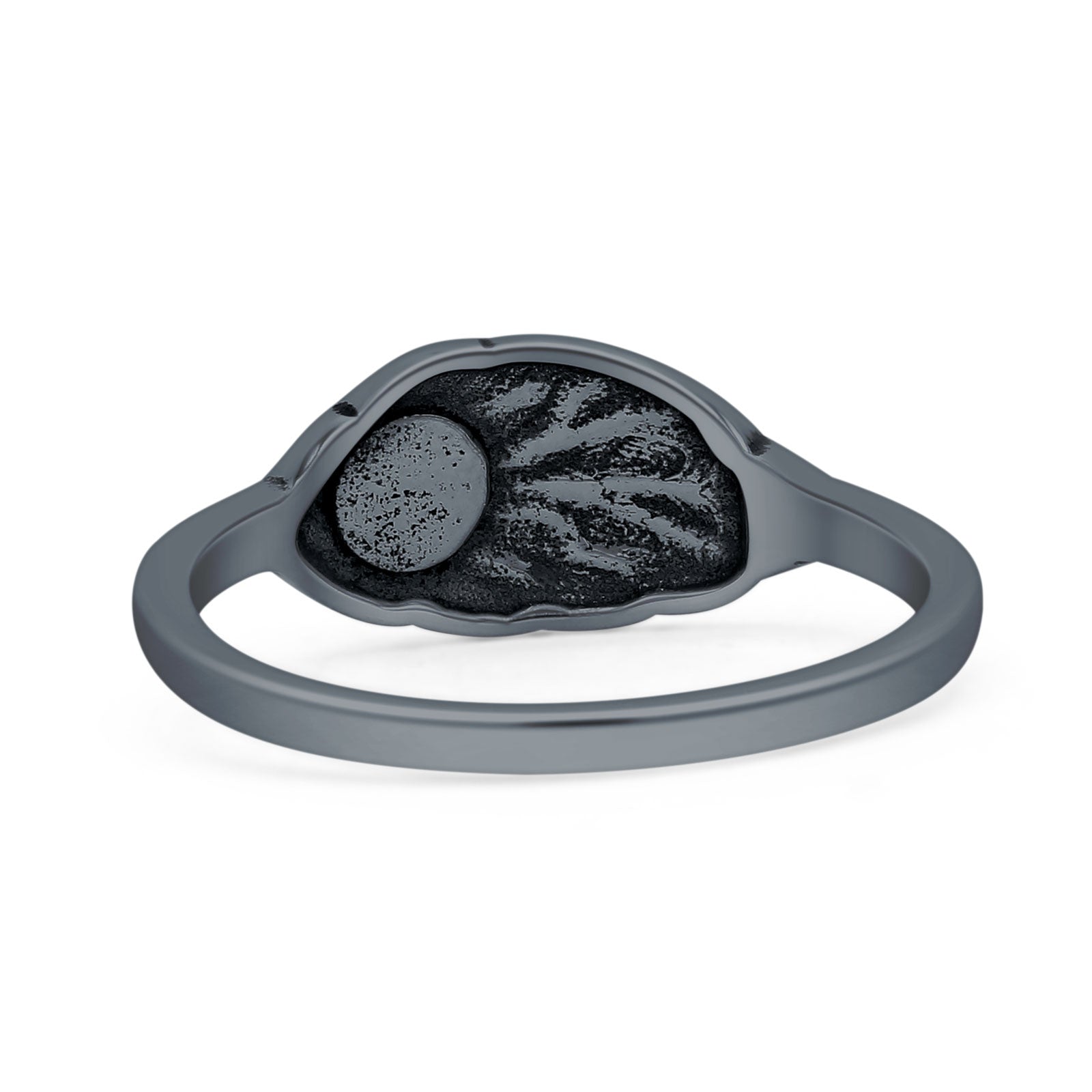 Minimalist 8mm Round Turquoise Leaf Ring Oxidized 925 Sterling Silver