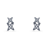 CZ & Blue Sapphire CZ Black Tone Silver