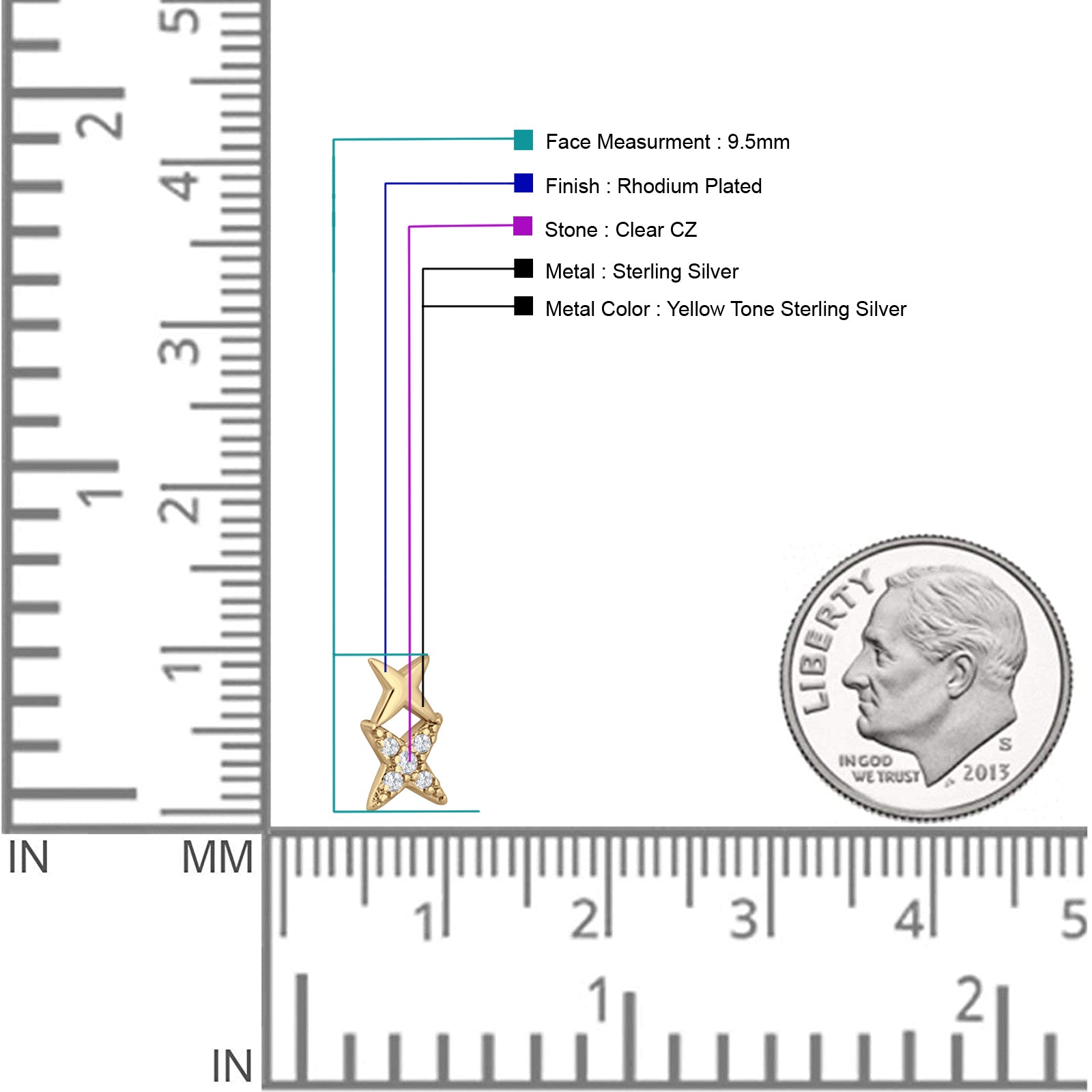 Metal Purity: 92.5% Sterling.