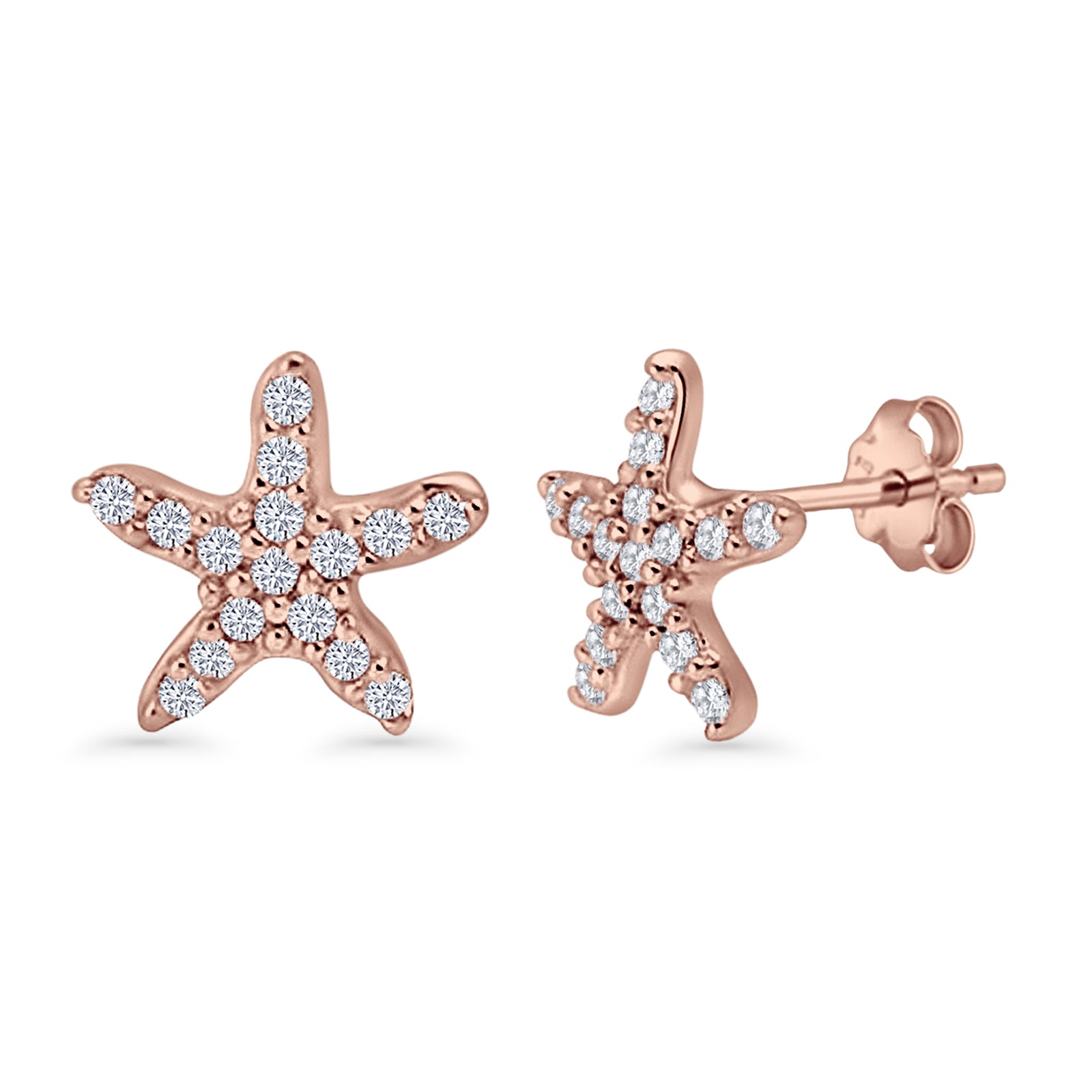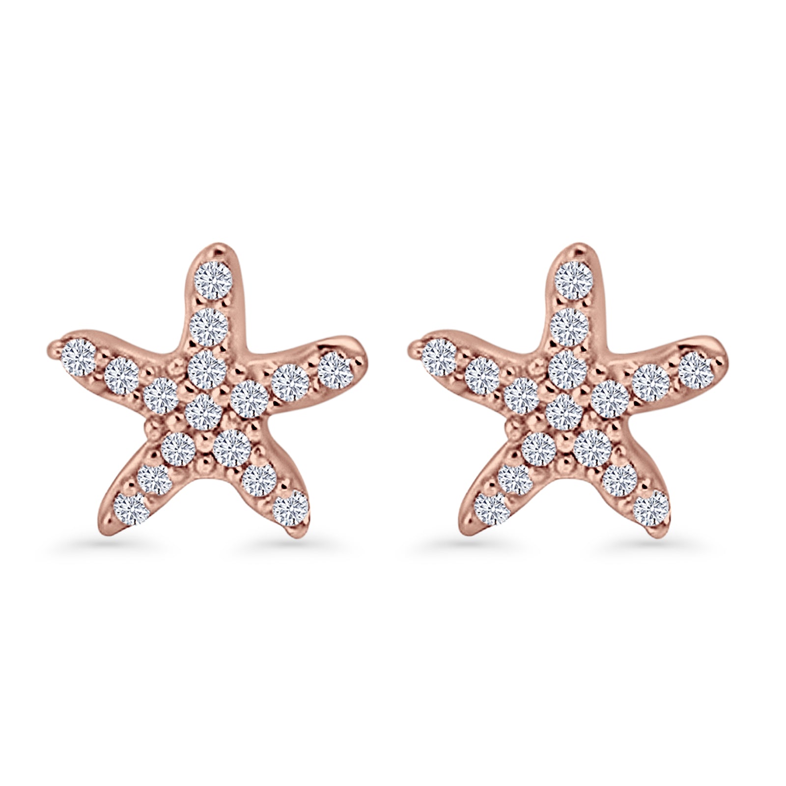 CZ & Blue Sapphire CZ Rose Tone Silver