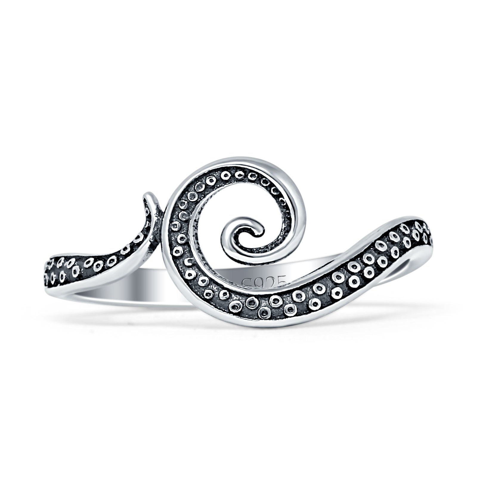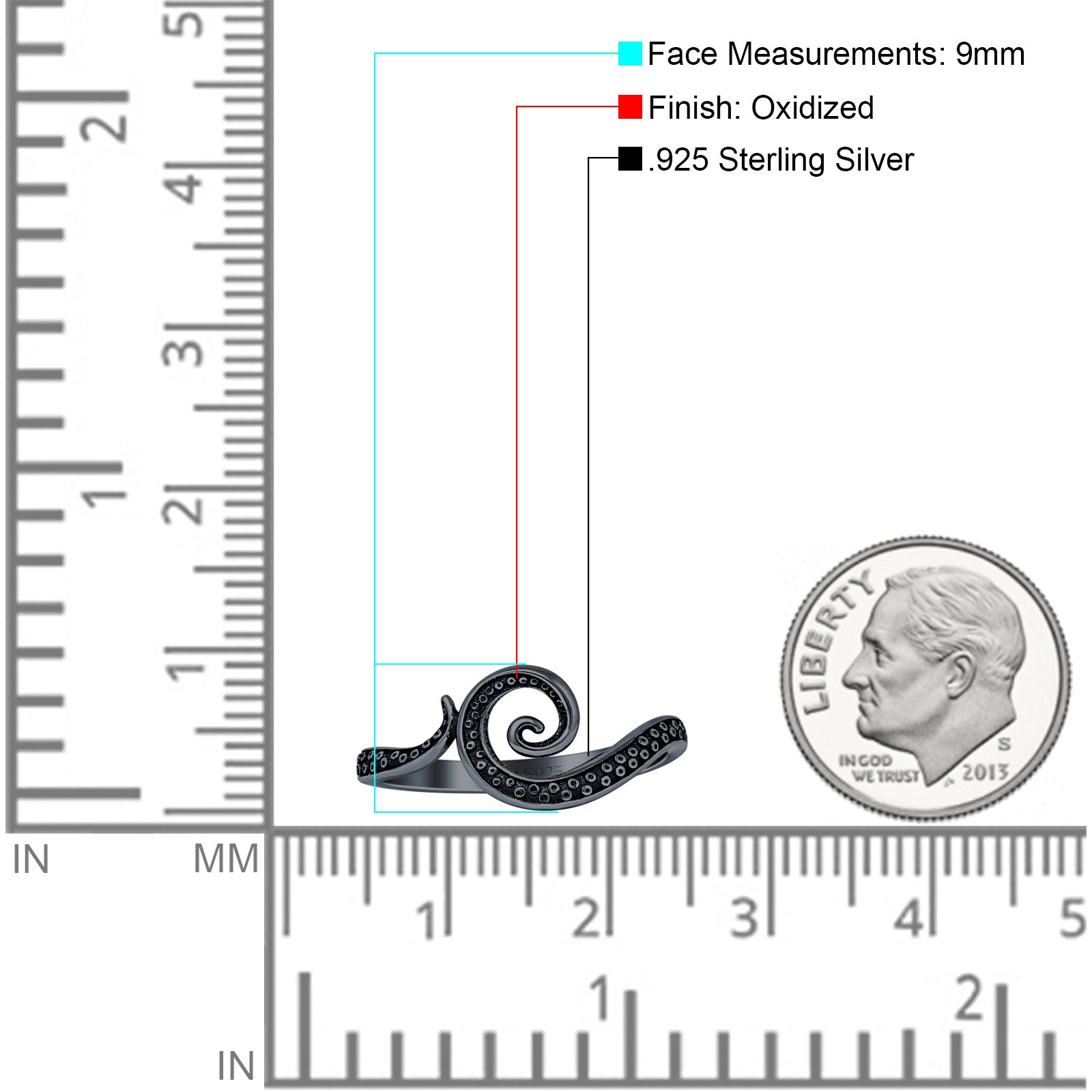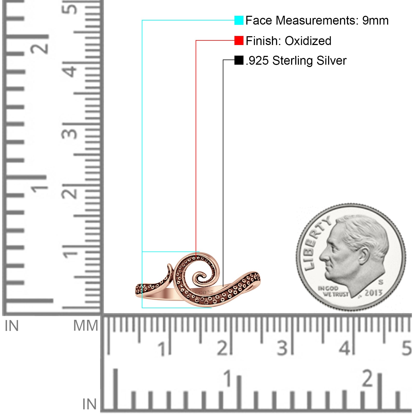 Minimalist 9mm Tentacle Octopus Ring Oxidized 925 Sterling Silver
