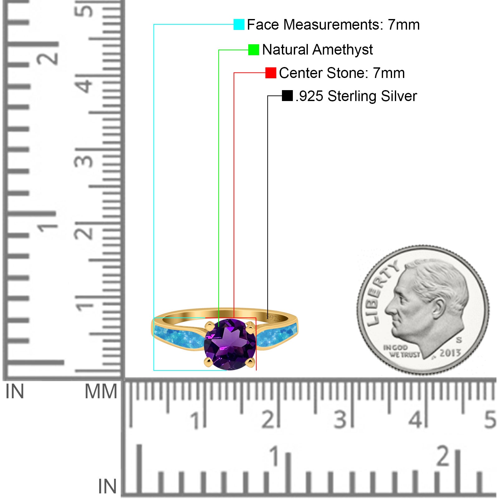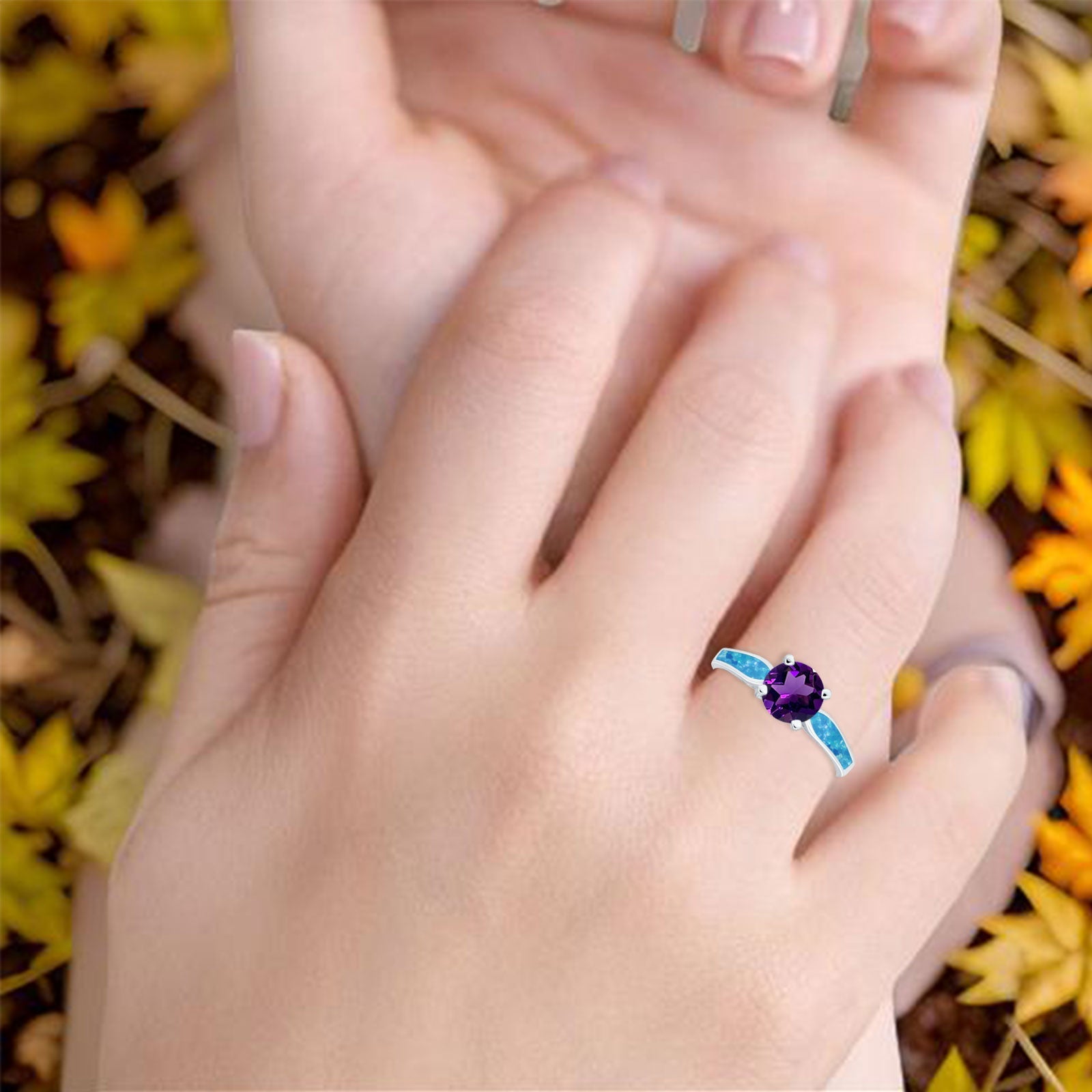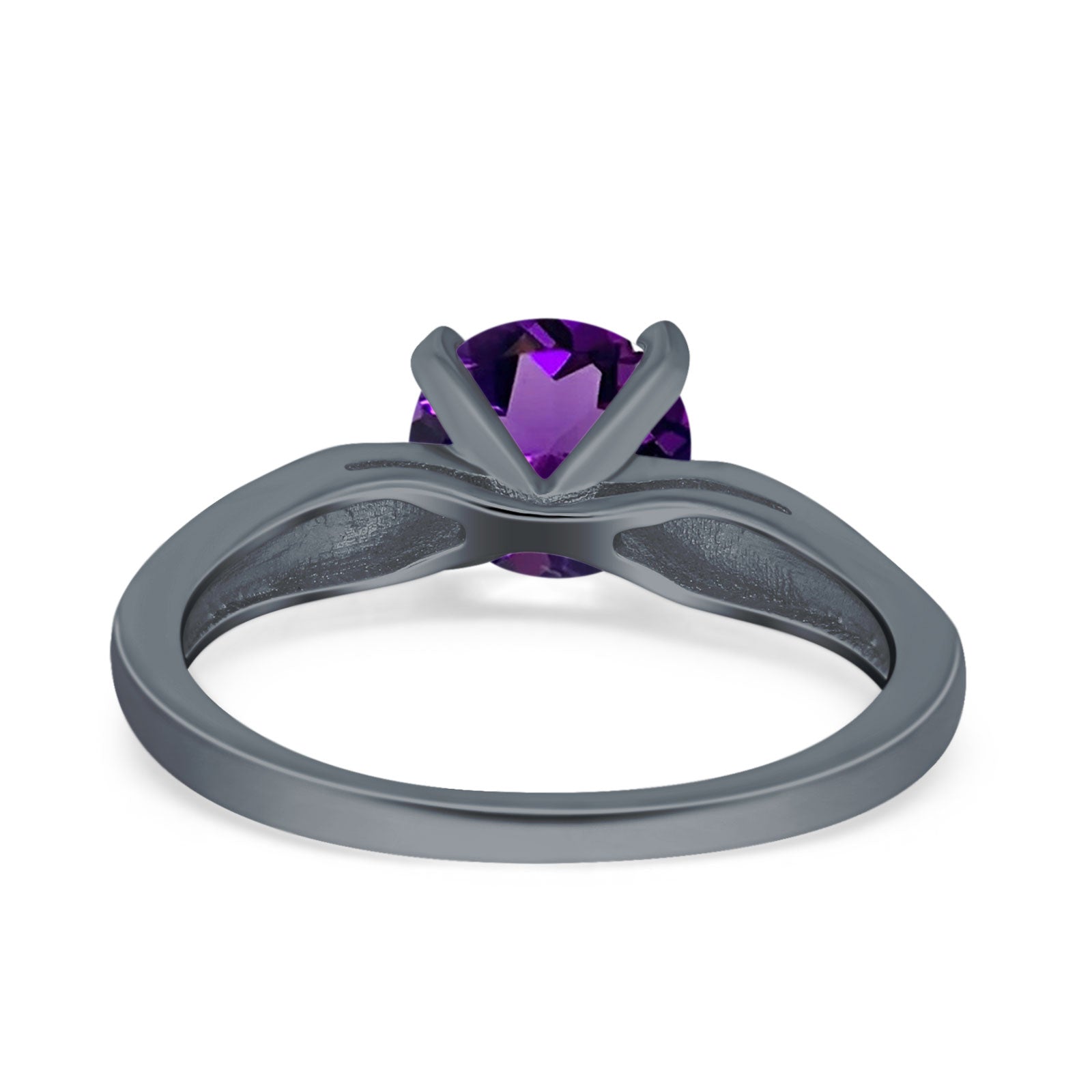 Minimalist Round Natural Amethyst Solitaire Ring 925 Sterling Silver