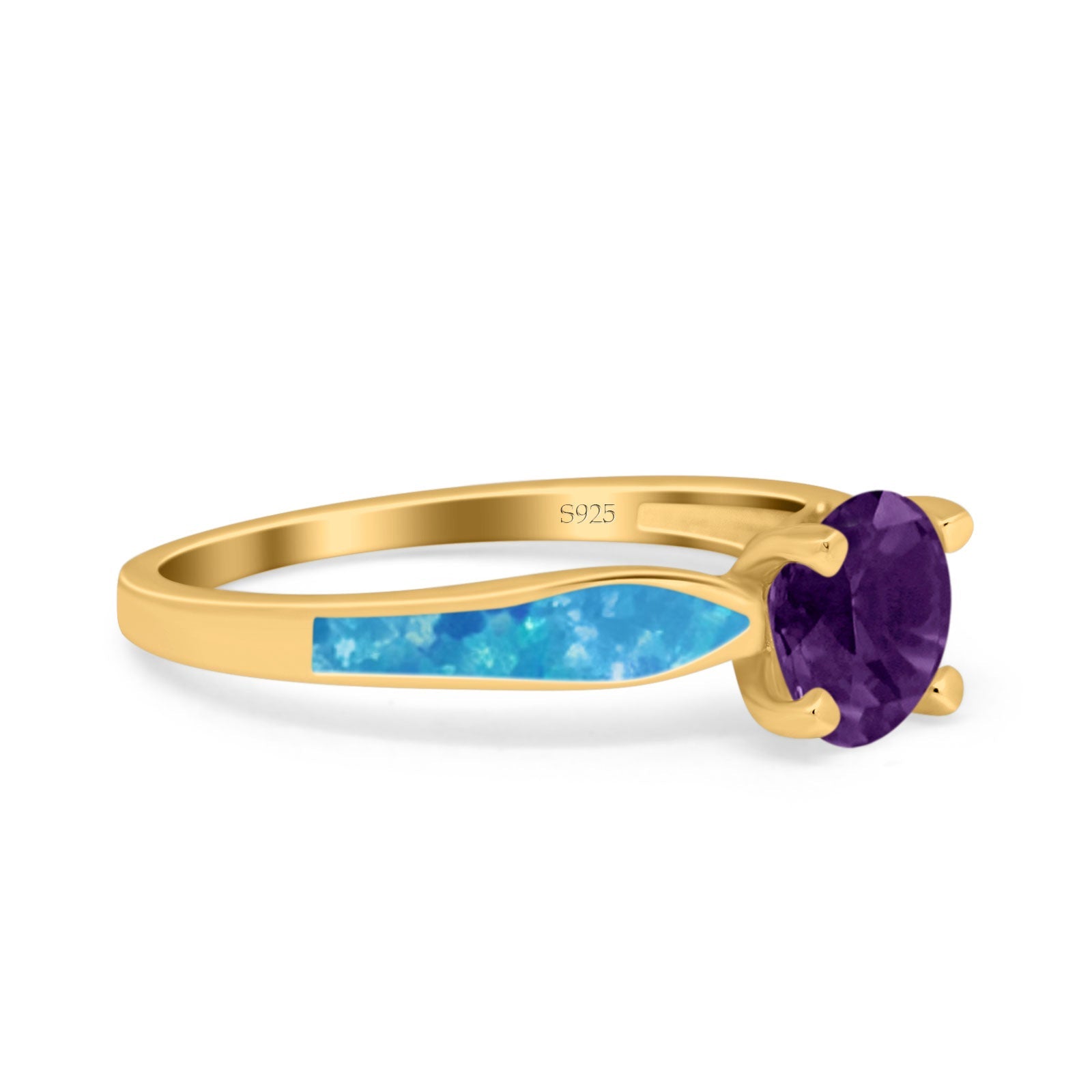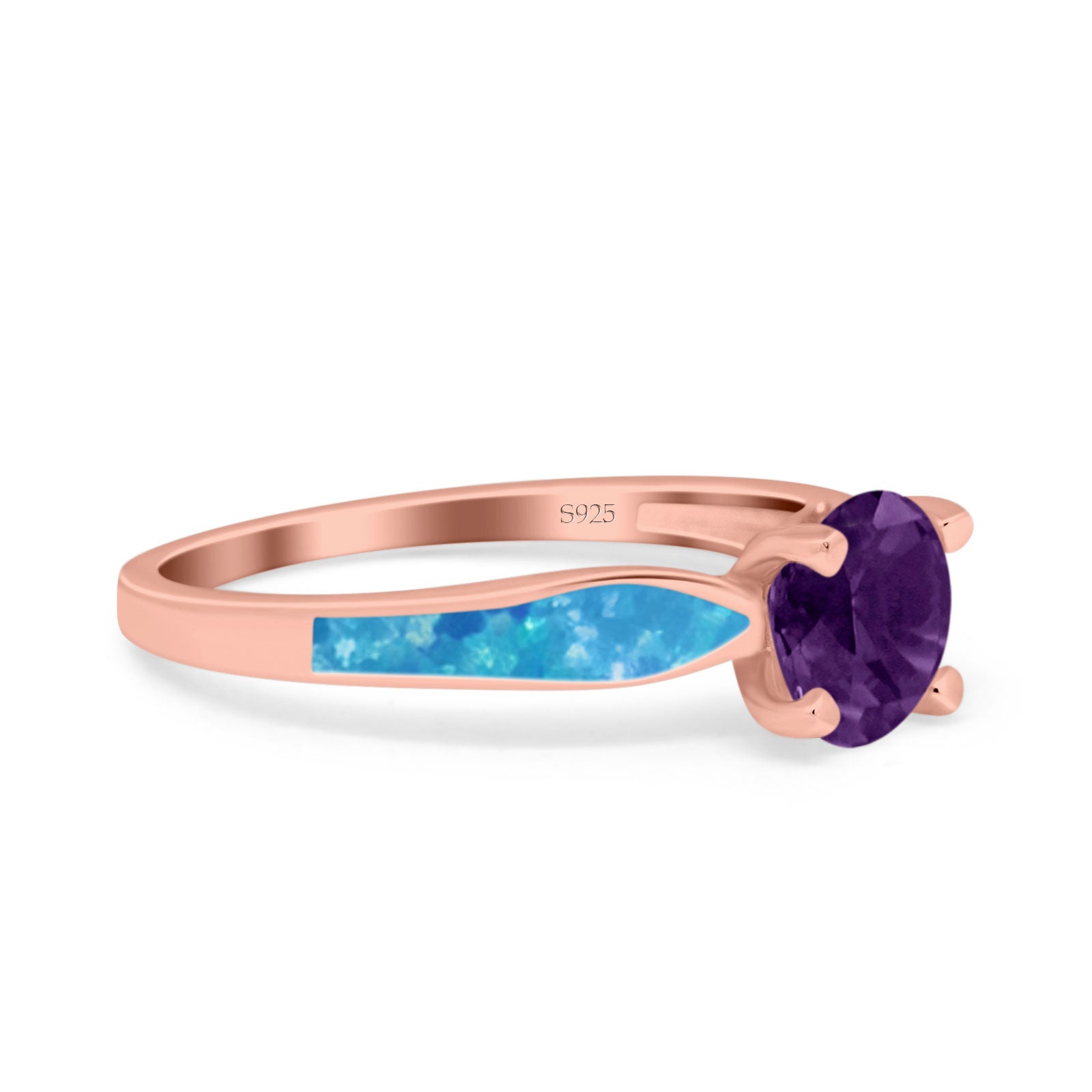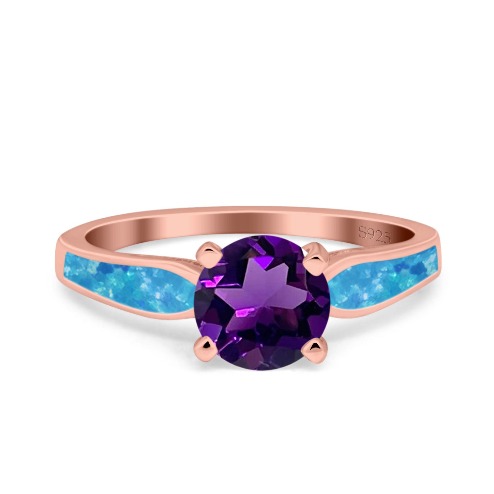Minimalist Round Natural Amethyst Solitaire Ring 925 Sterling Silver