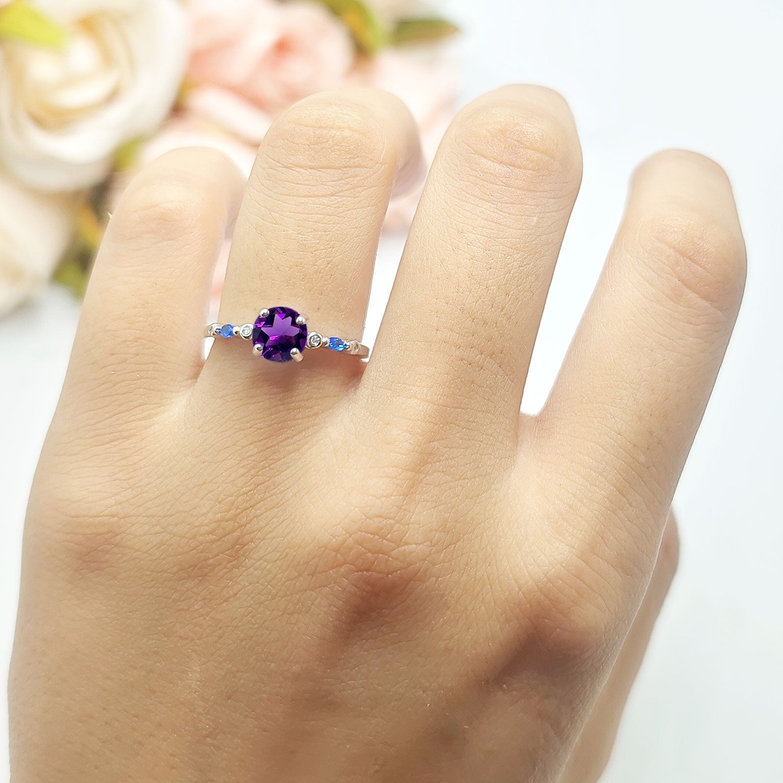 Minimalist 8mm Lab Created Blue Opal Heart Ring 925 Sterling Silver