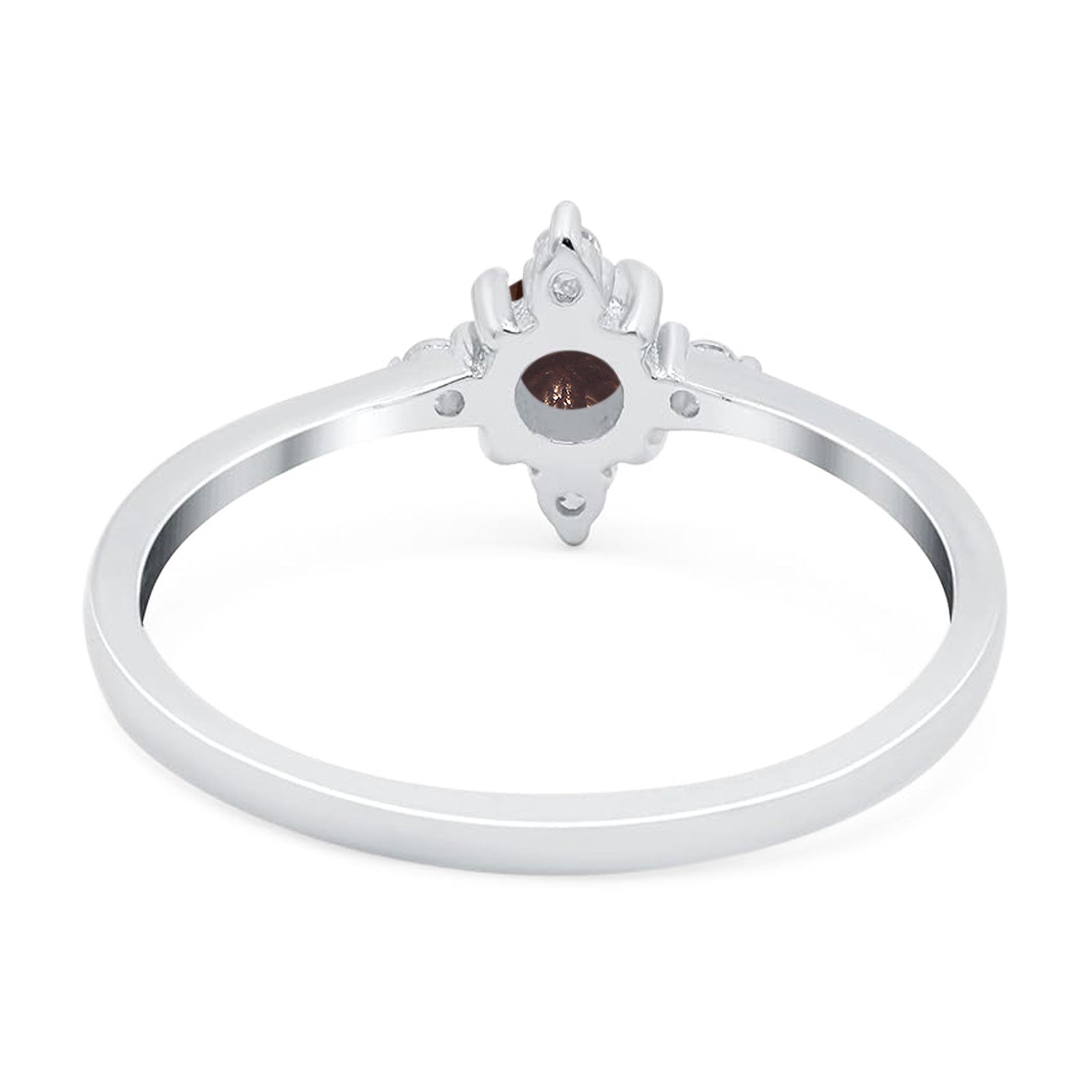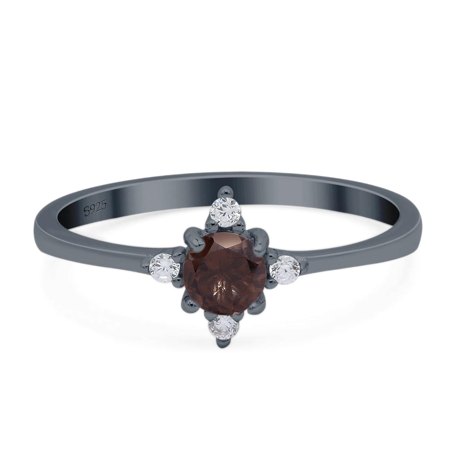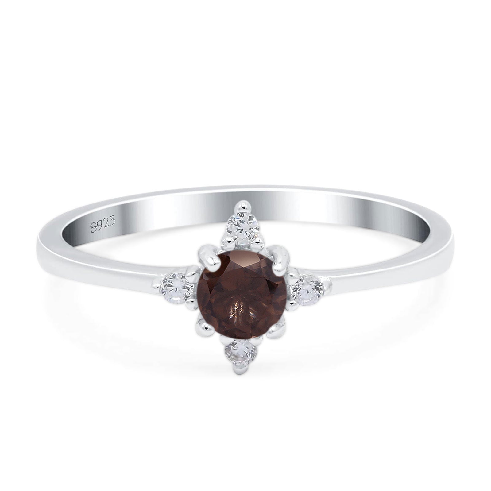 Minimalist Round Natural Chocolate Smoky Quartz Solitaire Ring 925 Sterling Silver