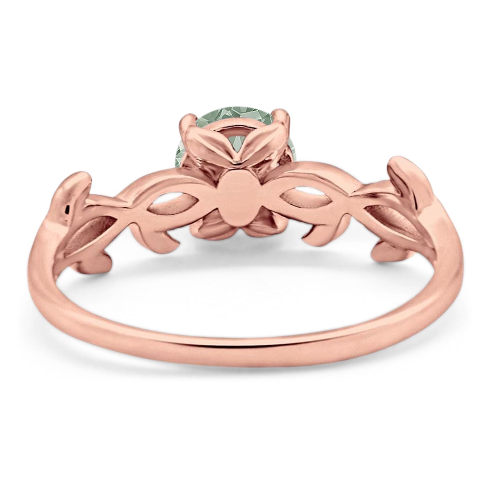 Minimalist Round Natural Green Amethyst Prasiolite Solitaire Infinity Shank Ring 925 Sterling Silver