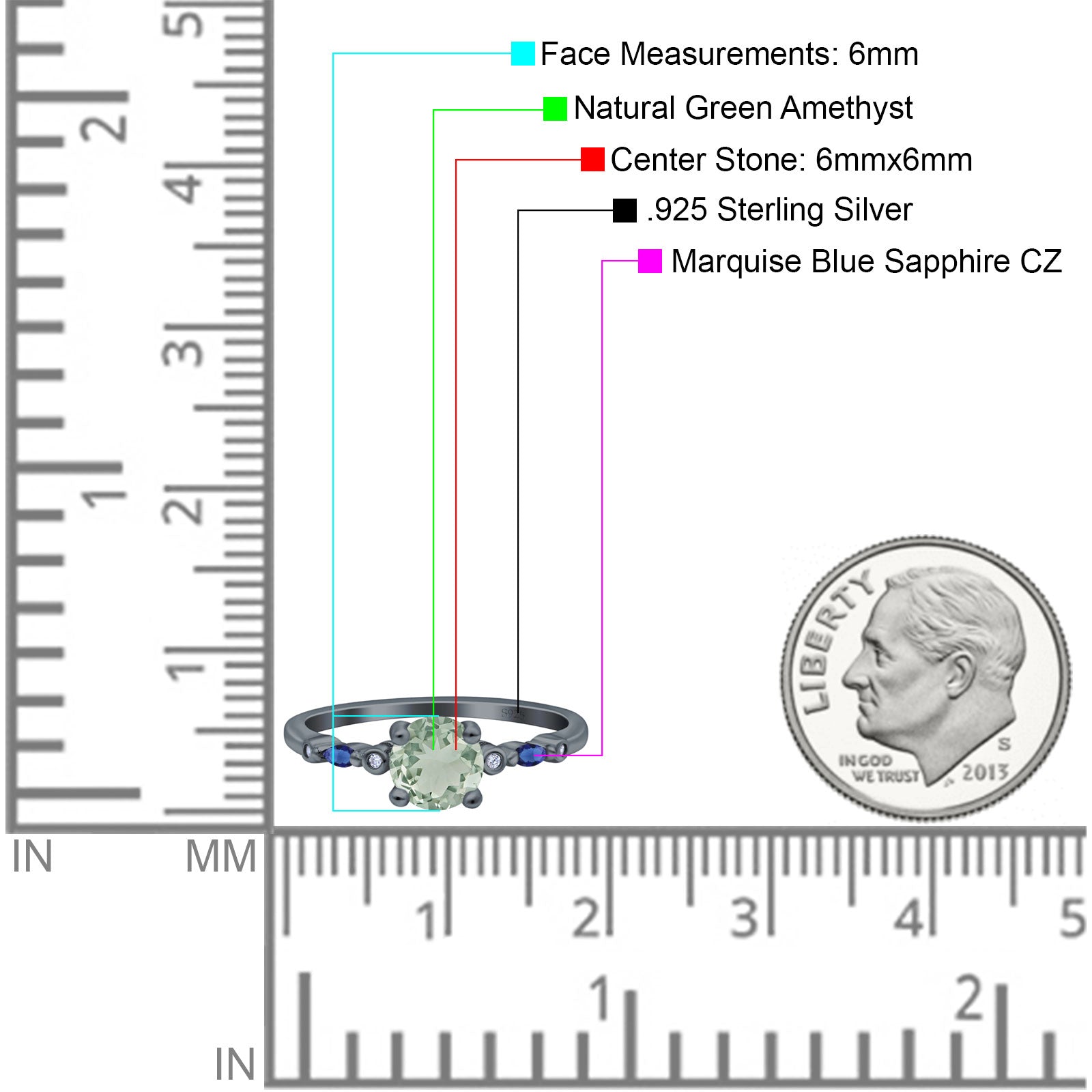 Center Stone Measurements: 6mmx6mm.