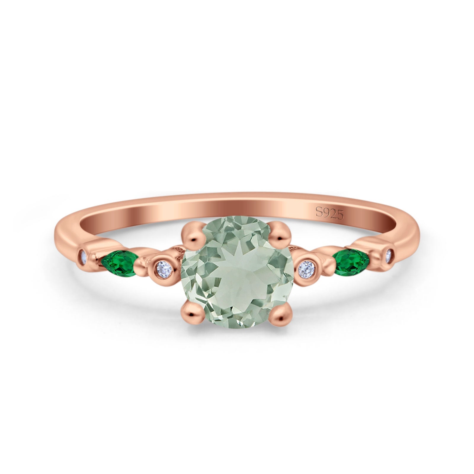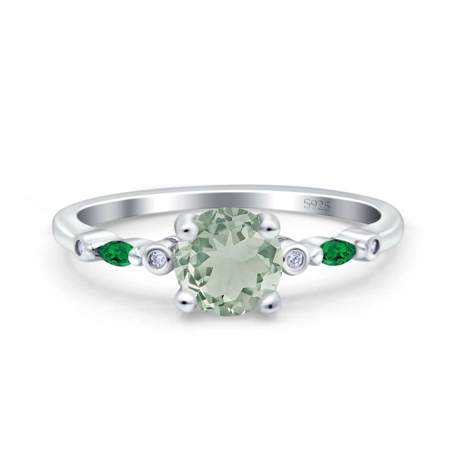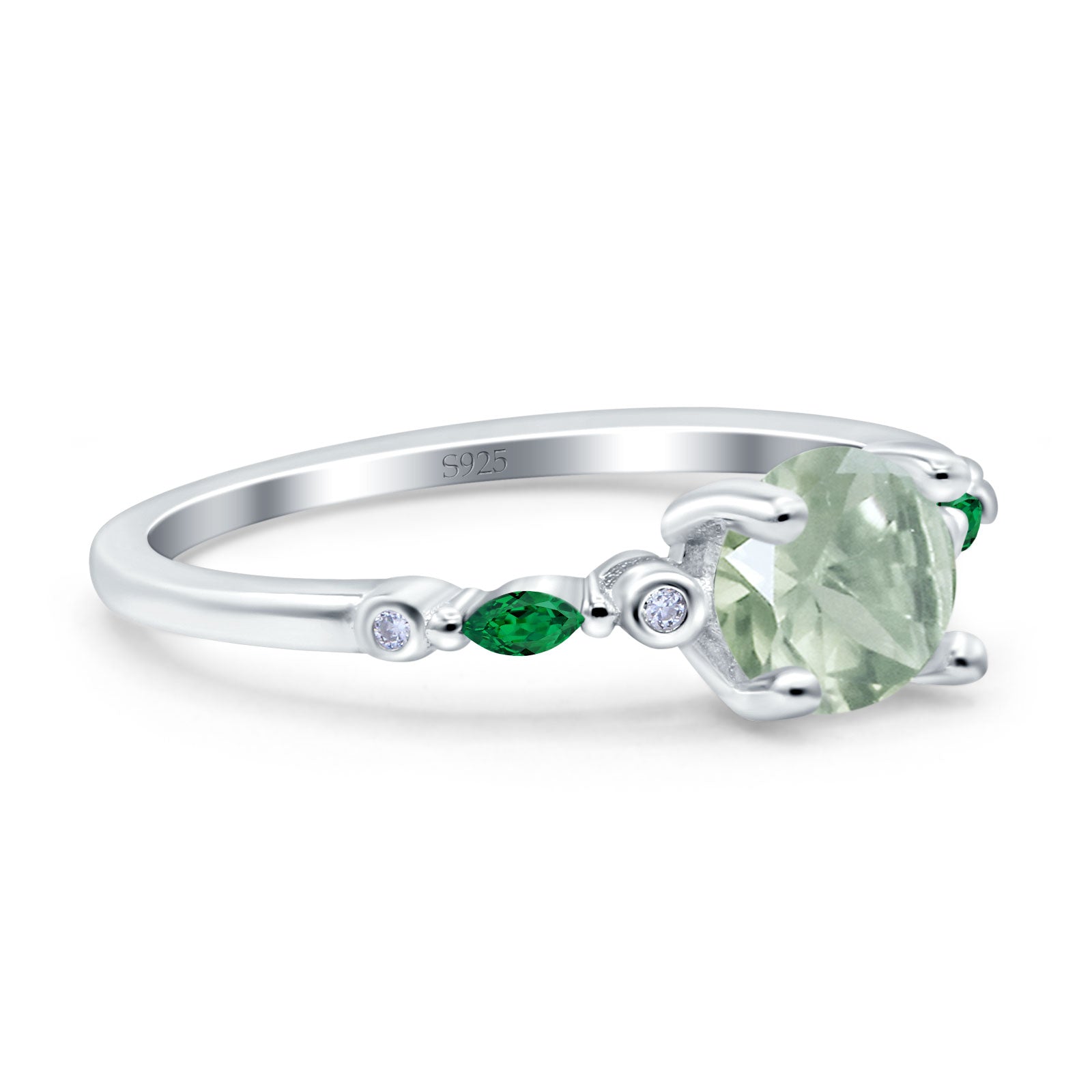 Side Stone: Marquise Green Emerald (CZ).