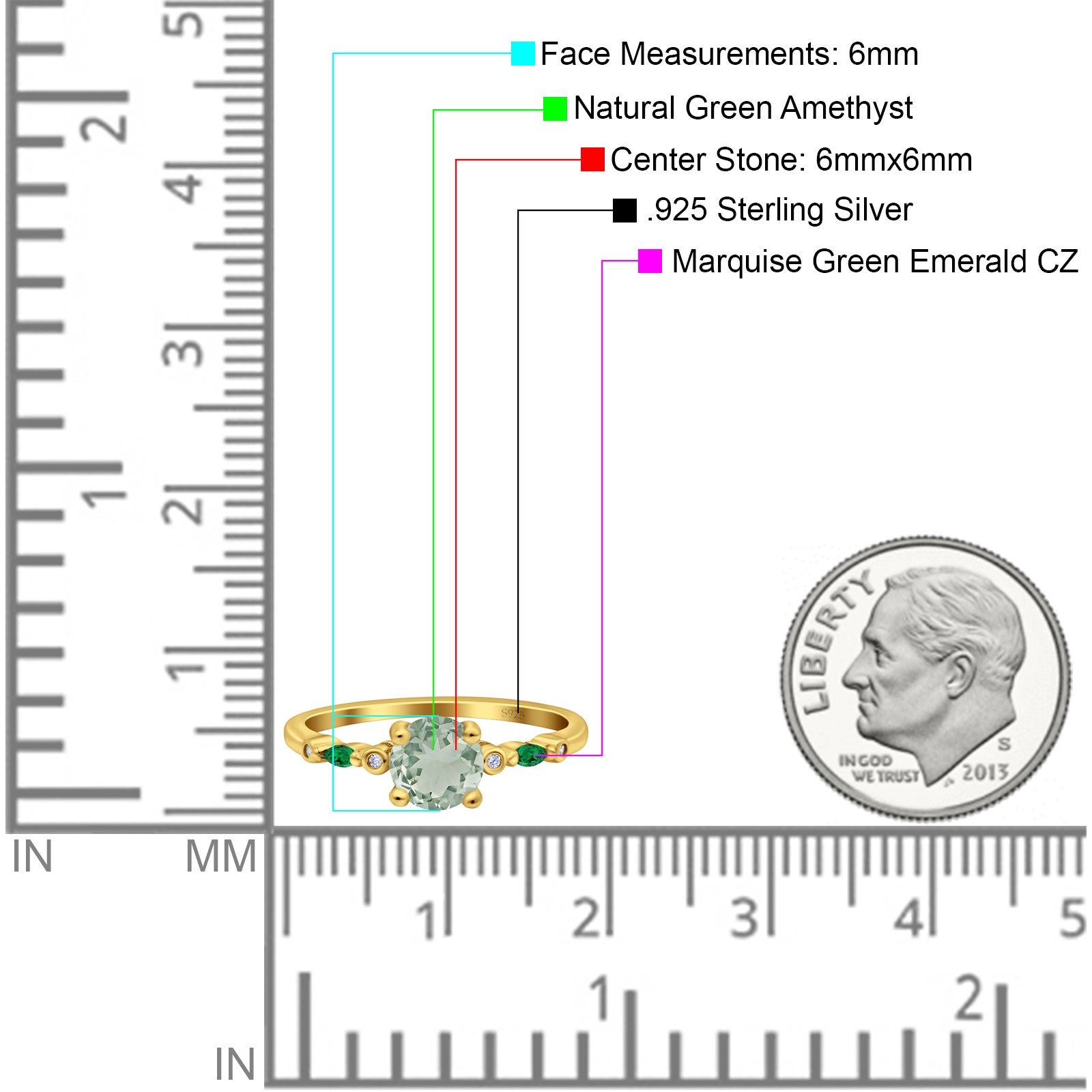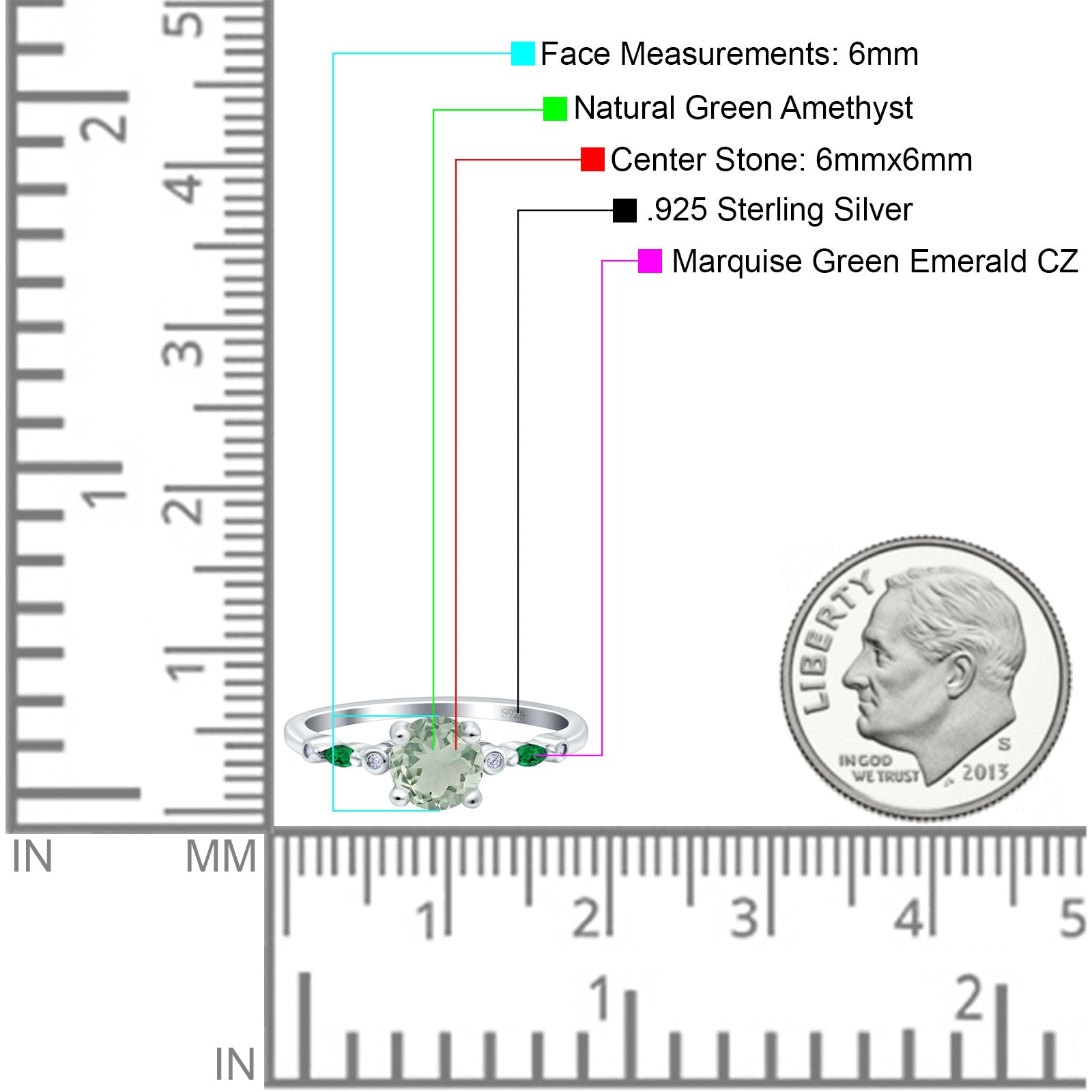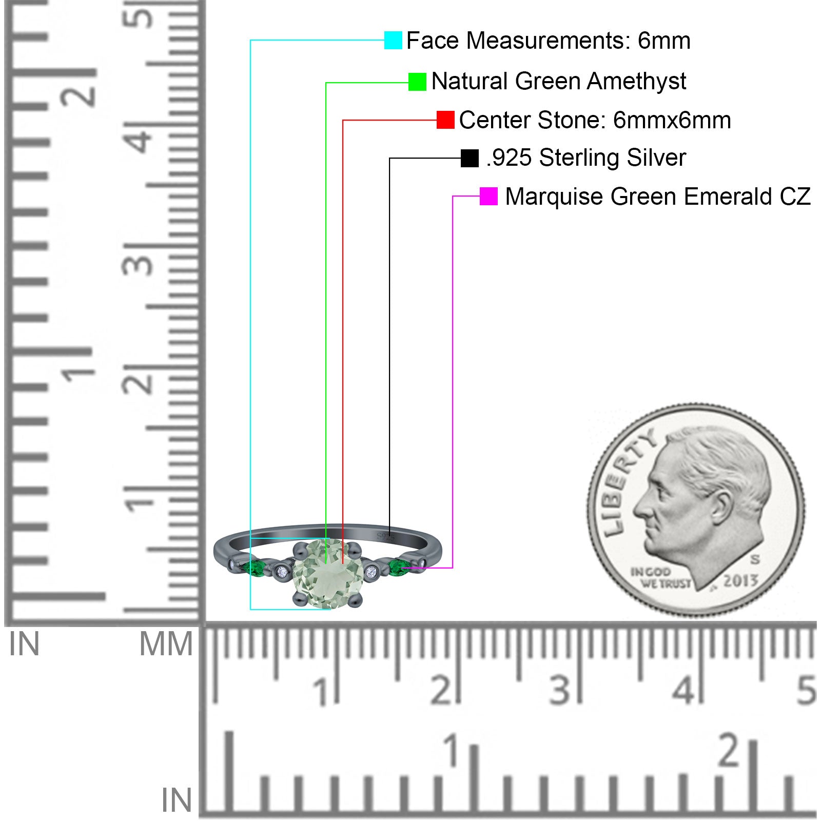 Side Stone: Marquise Green Emerald (CZ).