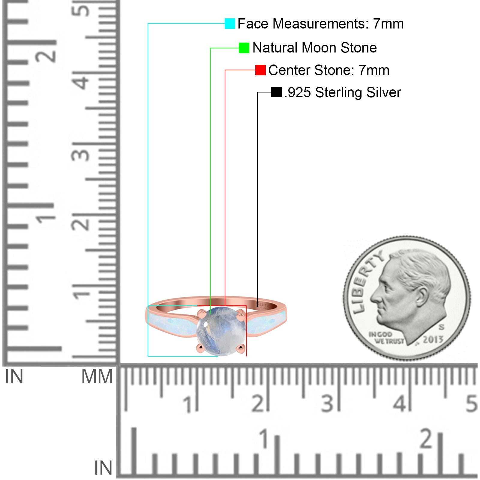 Side Stone: Lab Created White Opal.