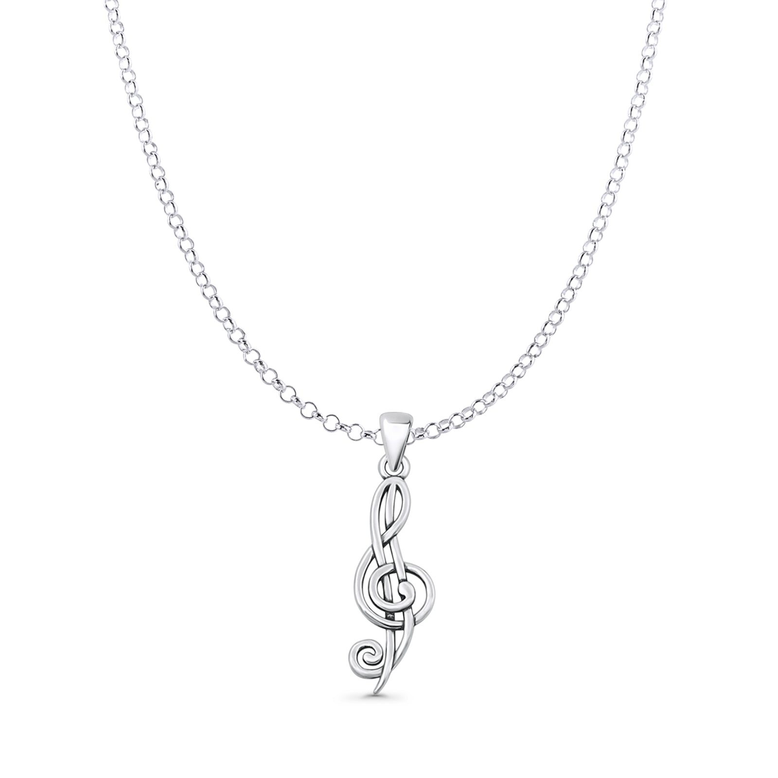 Musical Note Pendant Rolo Chain Necklace Oxidized 925 Sterling Silver