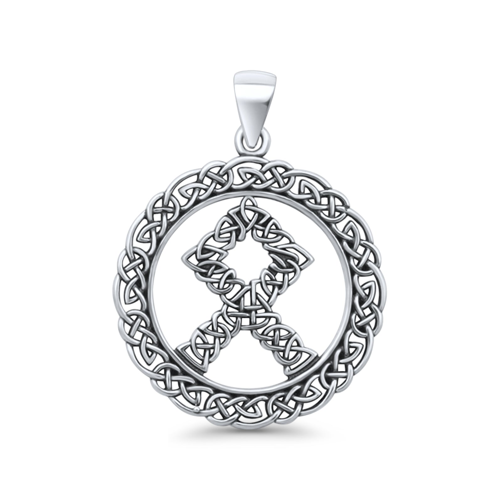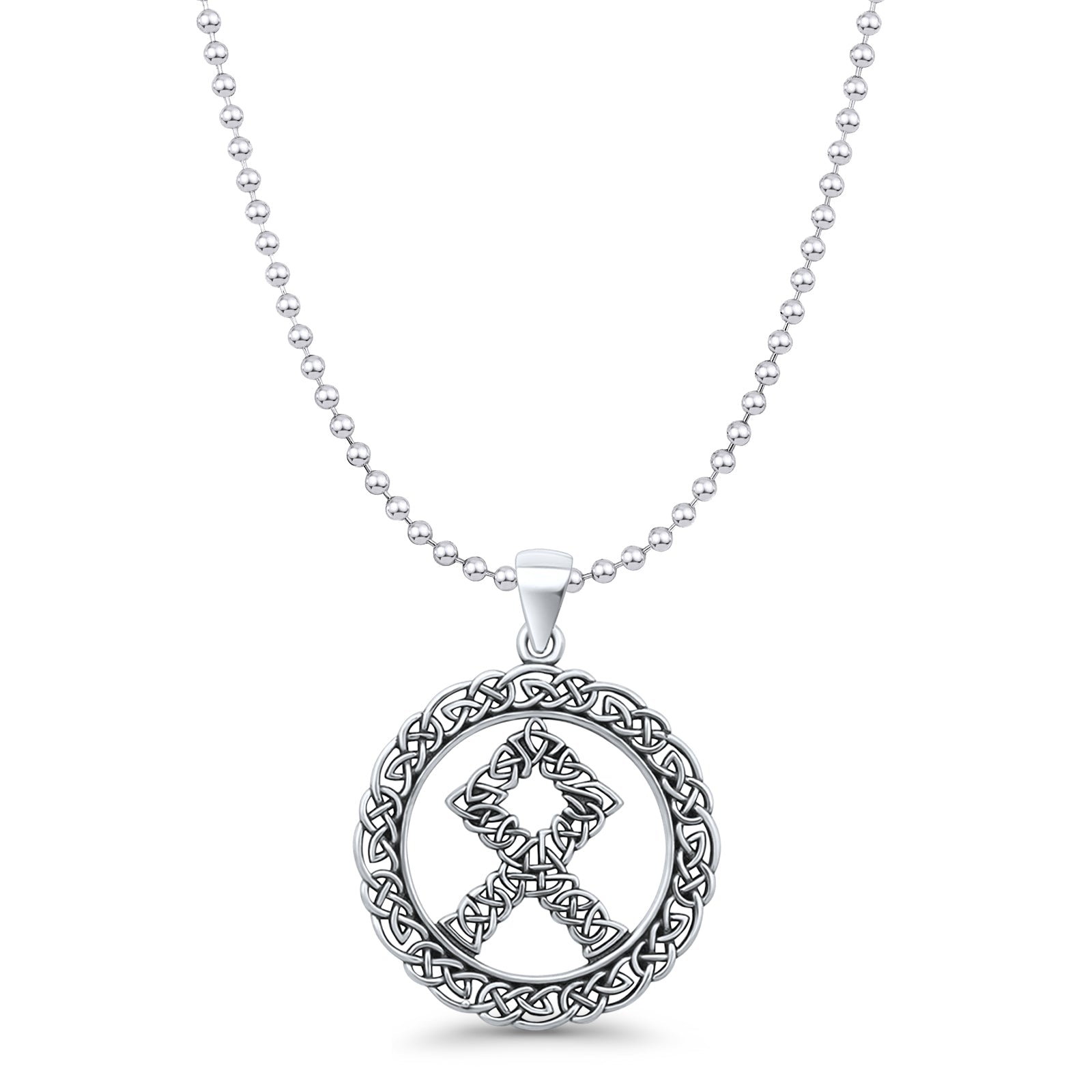 Othala Rune Pendant Oxidized Bead Chain Necklace 925 Sterling Silver