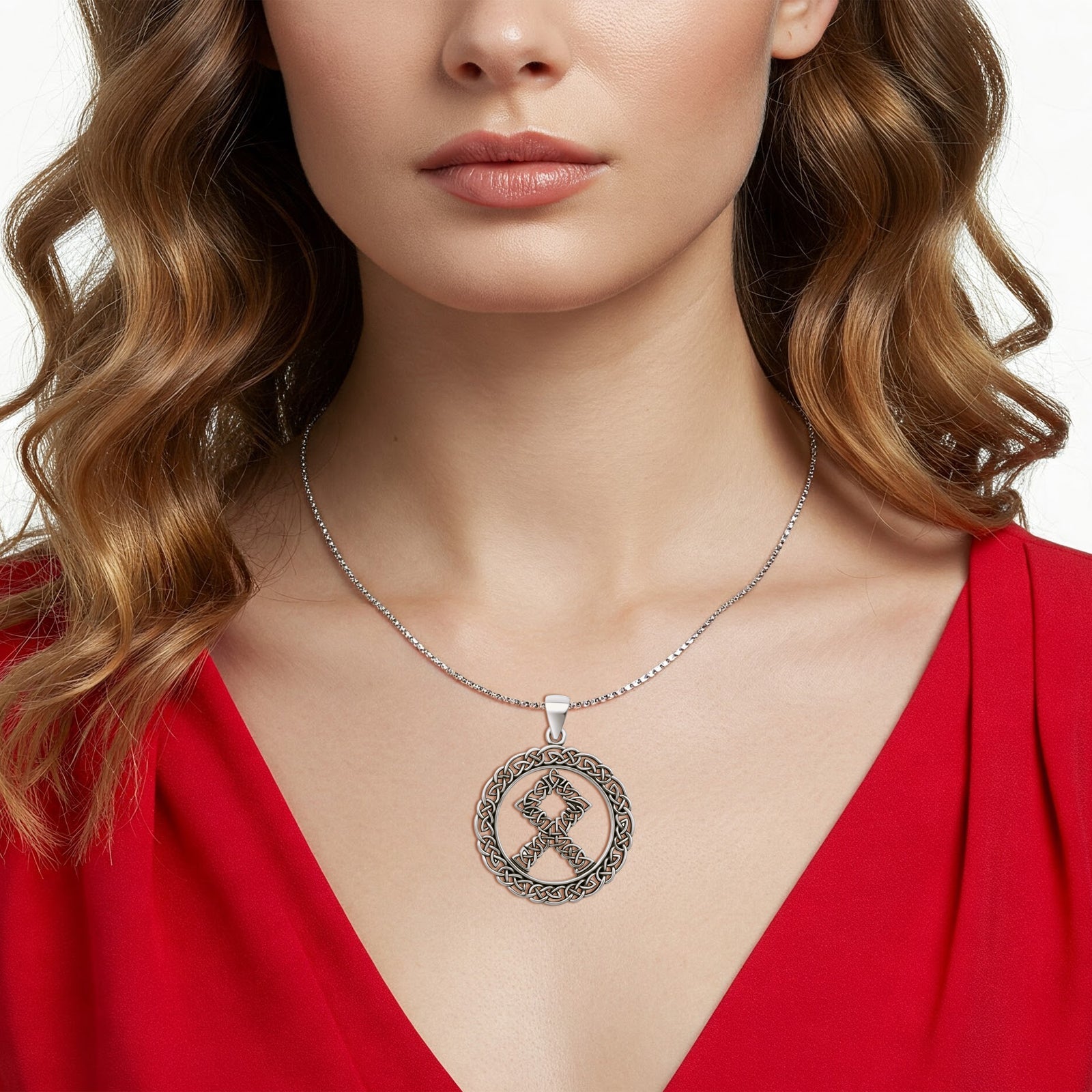 Othala Rune Pendant Oxidized Box Chain Necklace 925 Sterling Silver