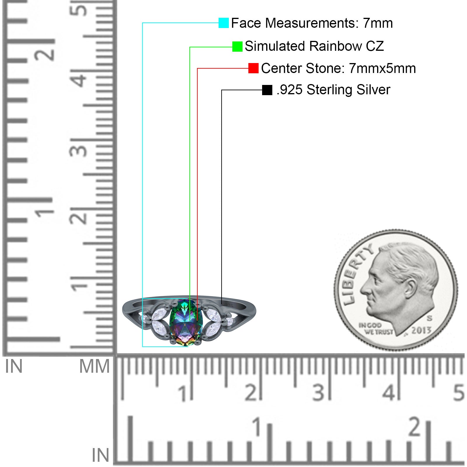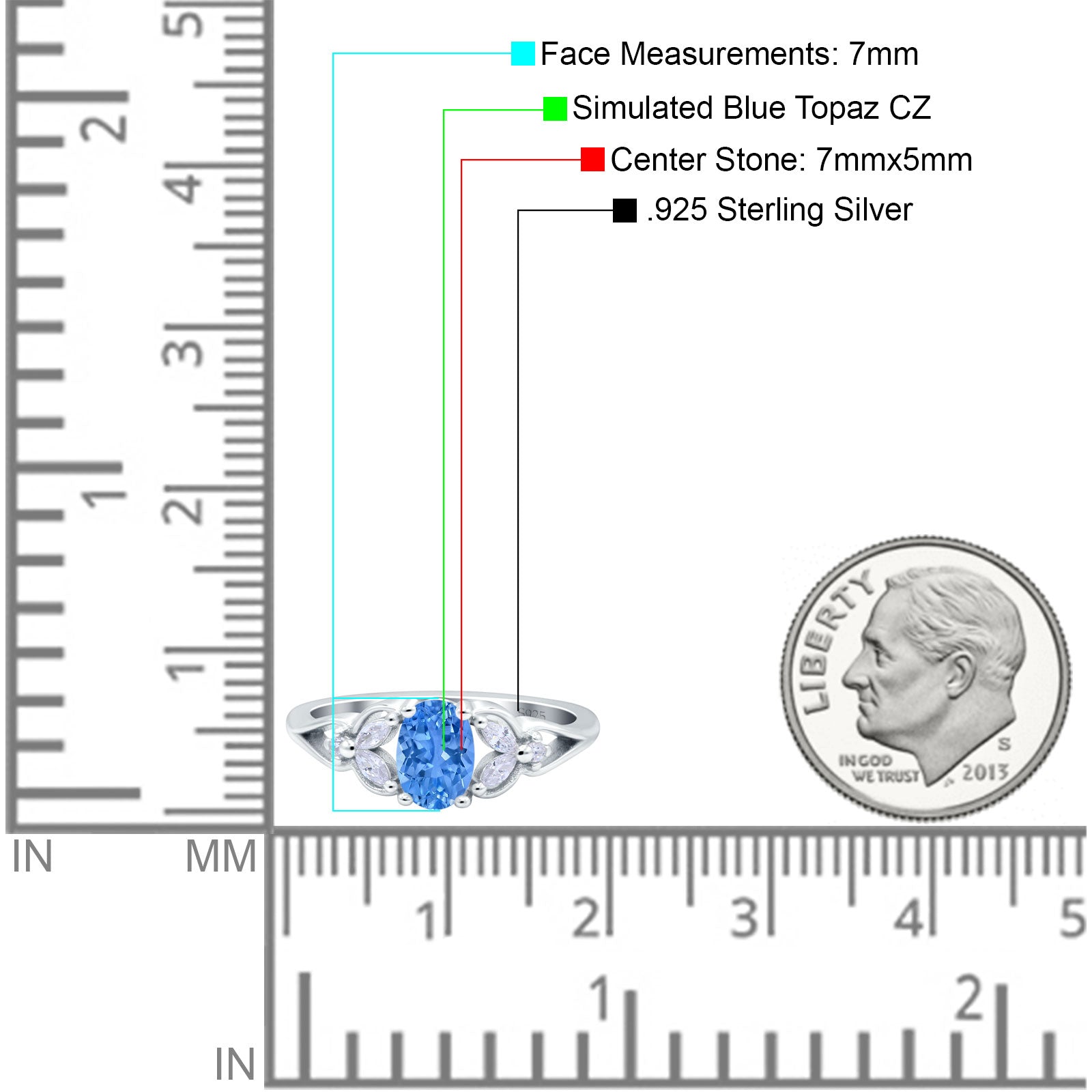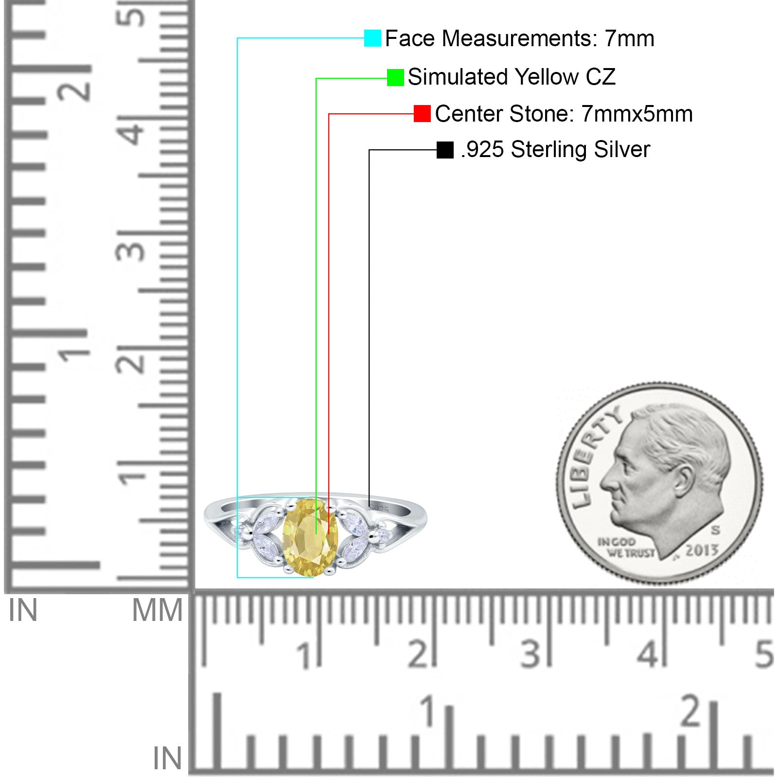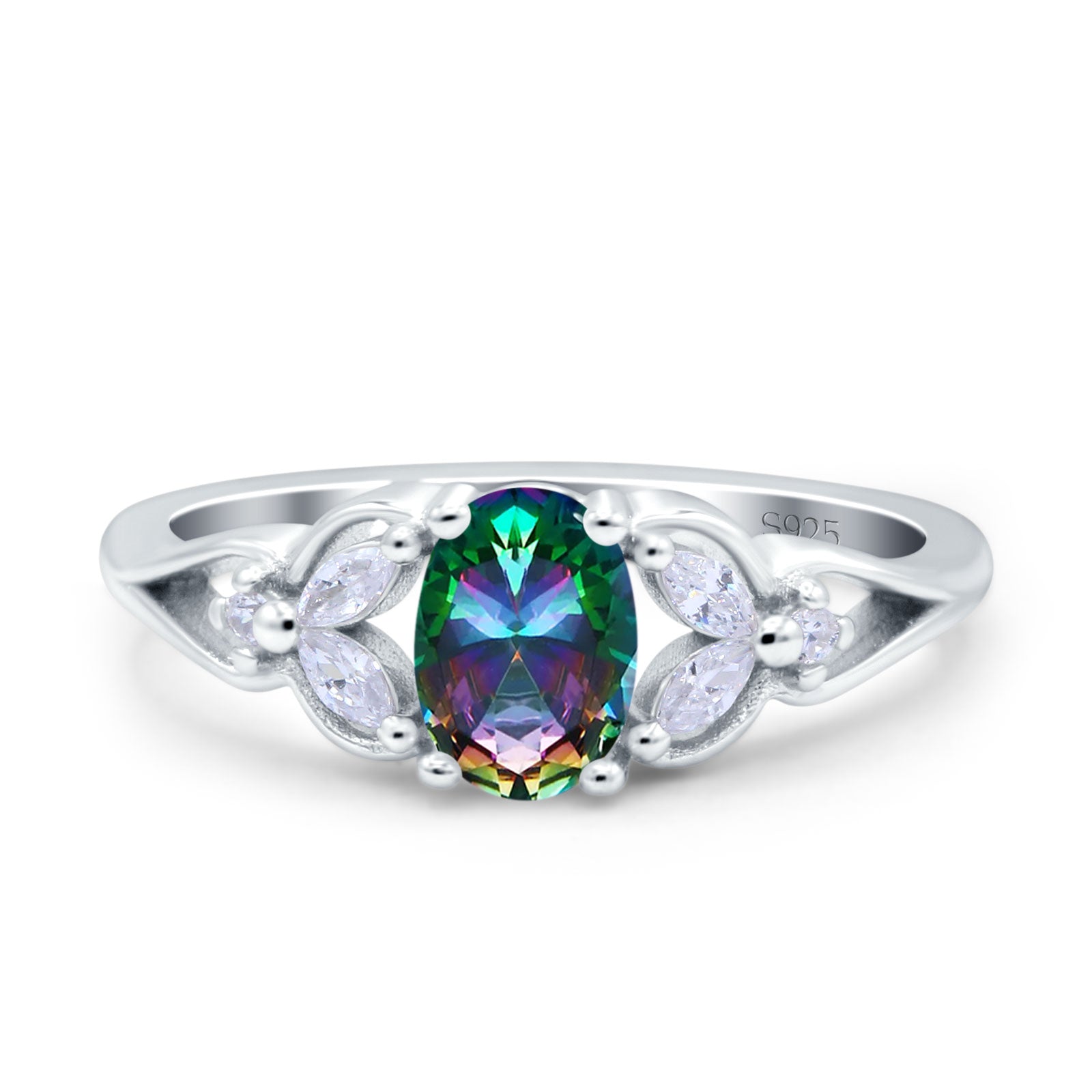 Oval Art Deco Bridal Wedding Engagement Ring Marquise Round Simulated Cubic Zirconia 925 Sterling Silver