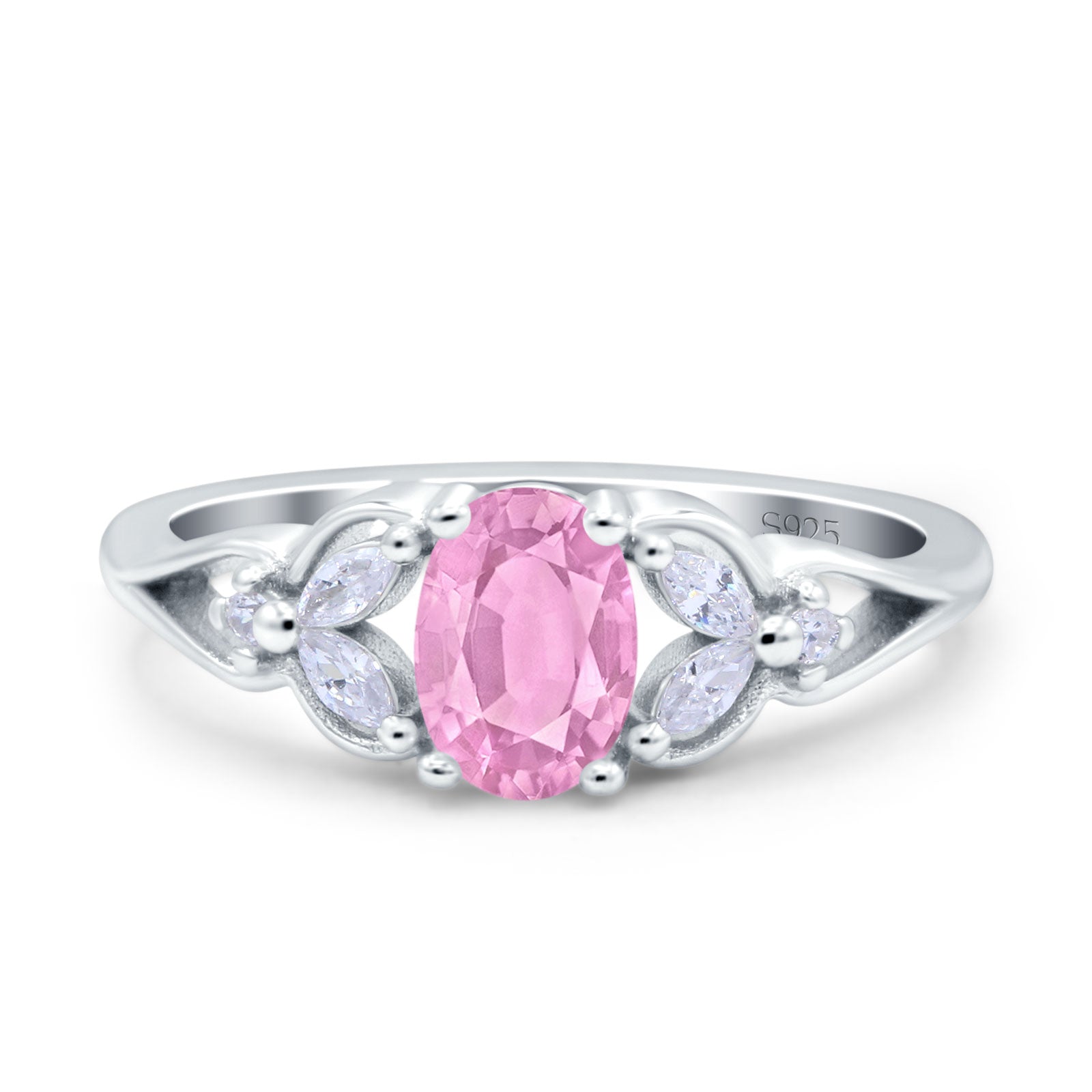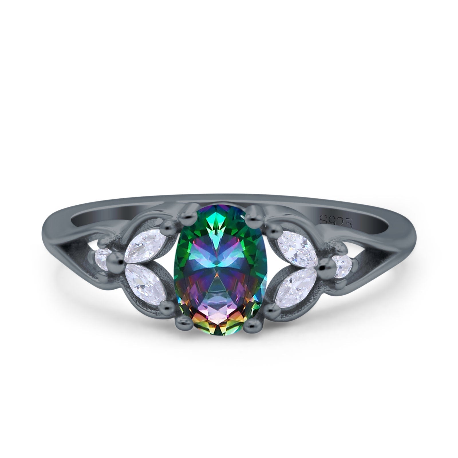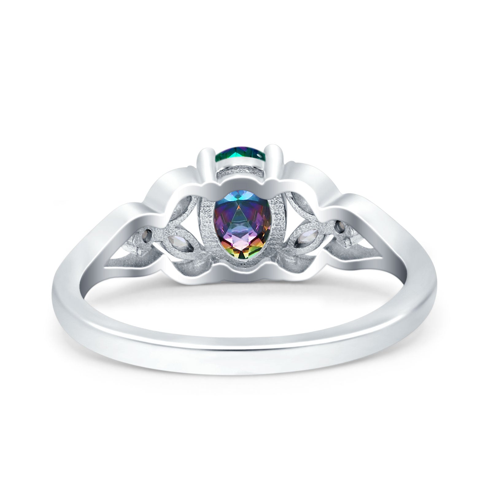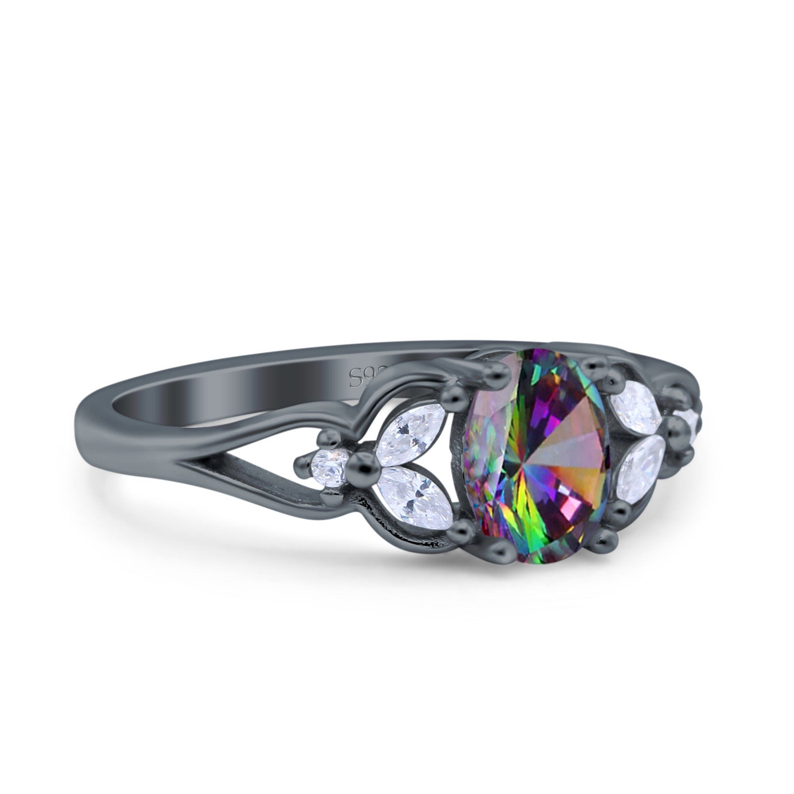 Oval Art Deco Bridal Wedding Engagement Ring Marquise Round Simulated Cubic Zirconia 925 Sterling Silver