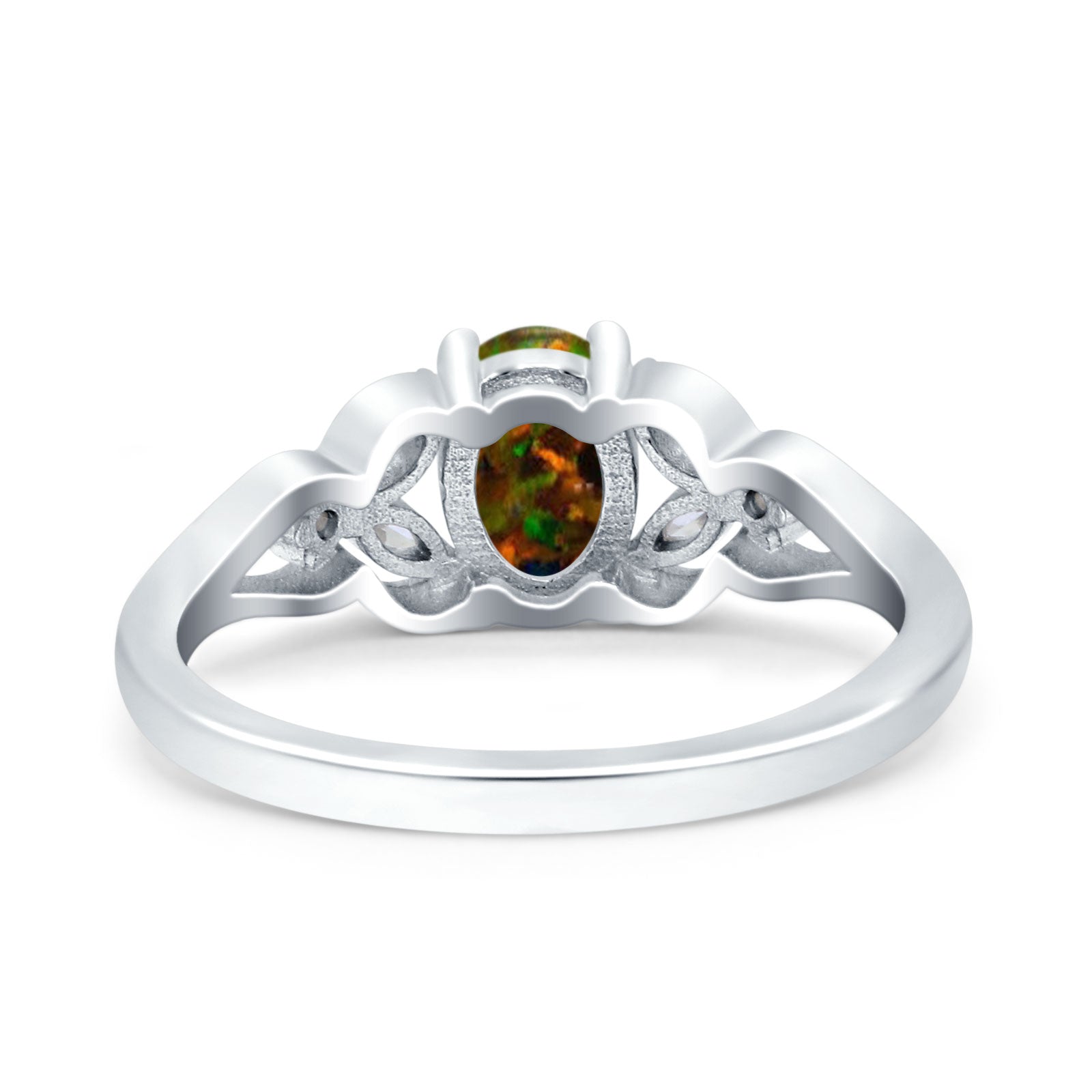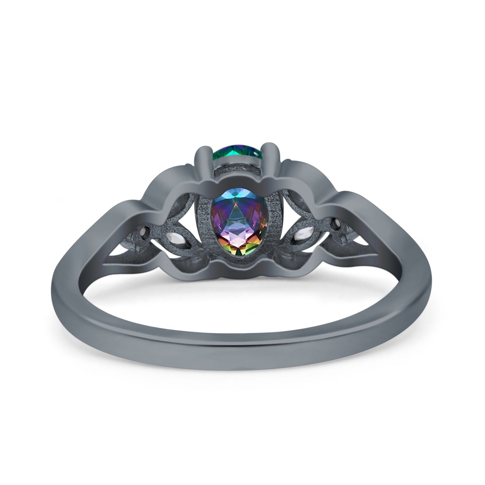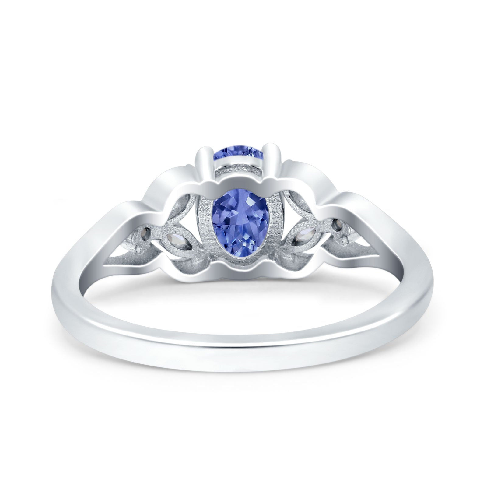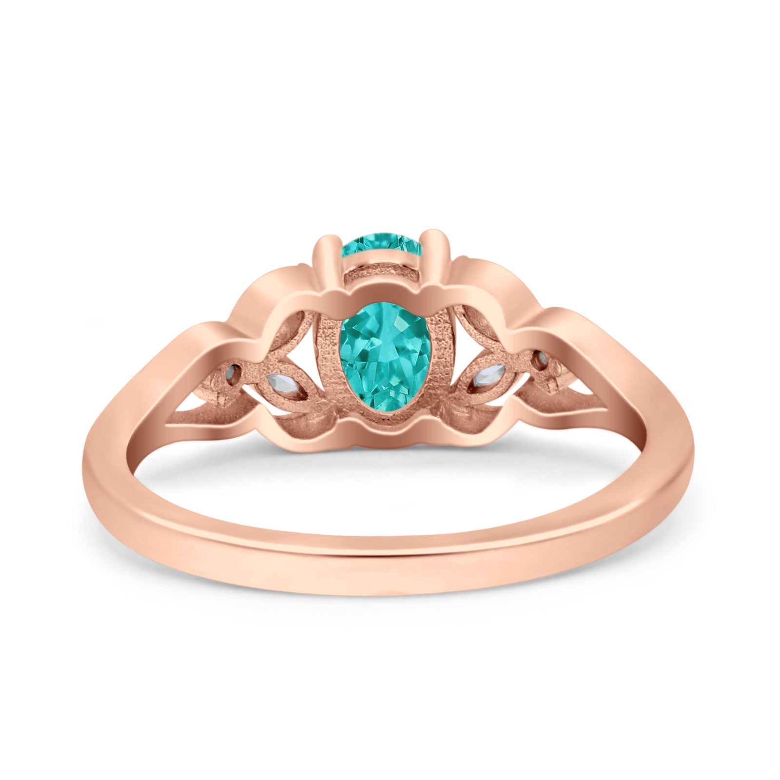Oval Art Deco Bridal Wedding Engagement Ring Marquise Round Simulated Cubic Zirconia 925 Sterling Silver