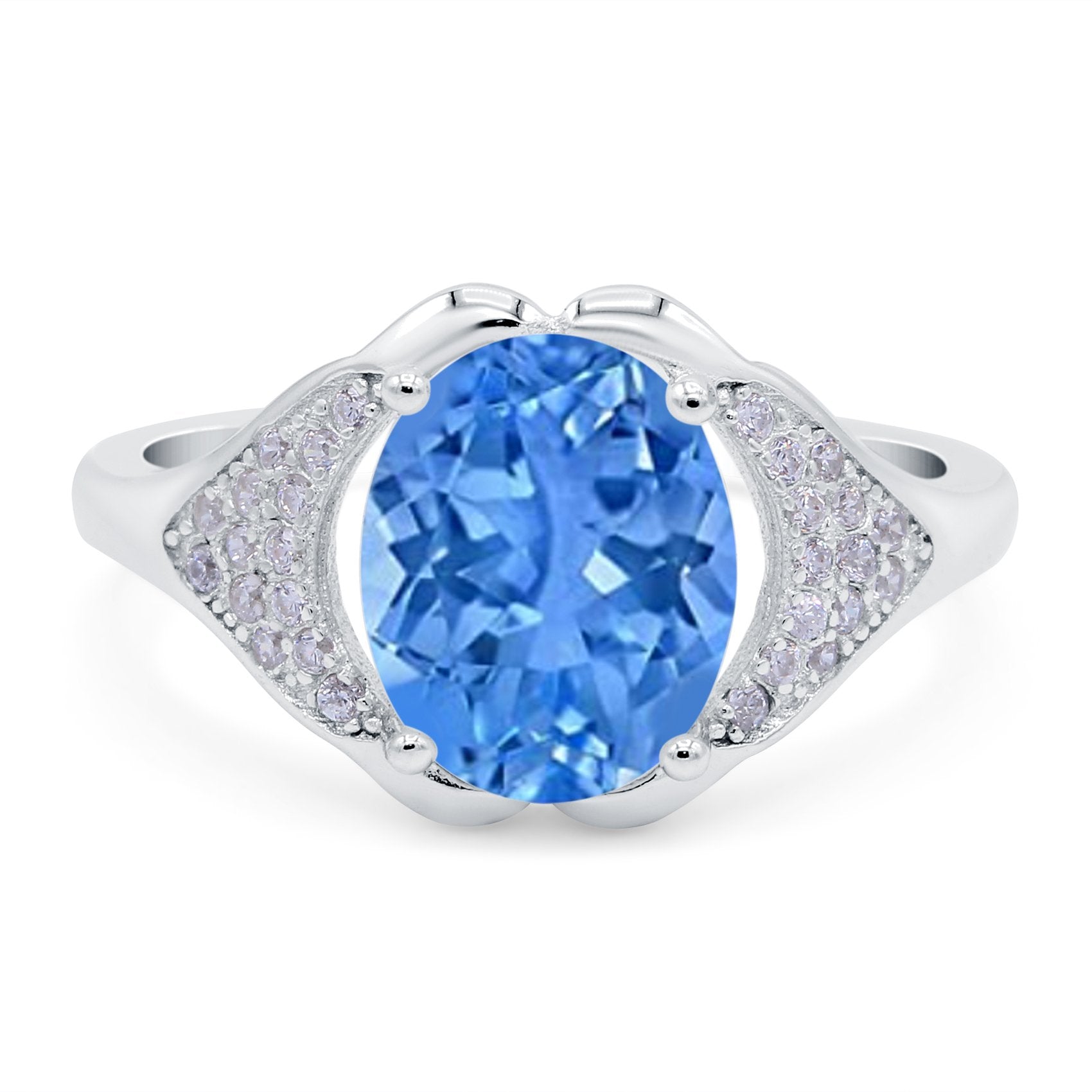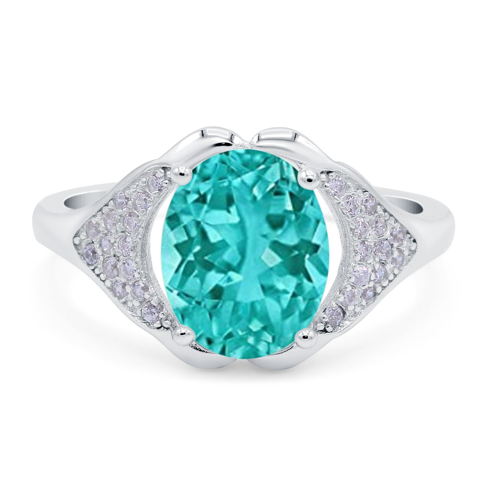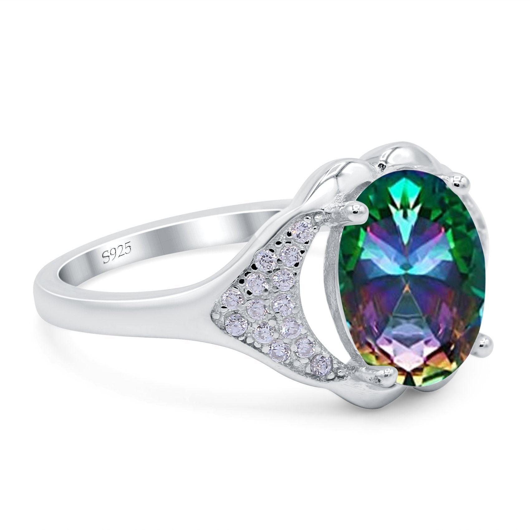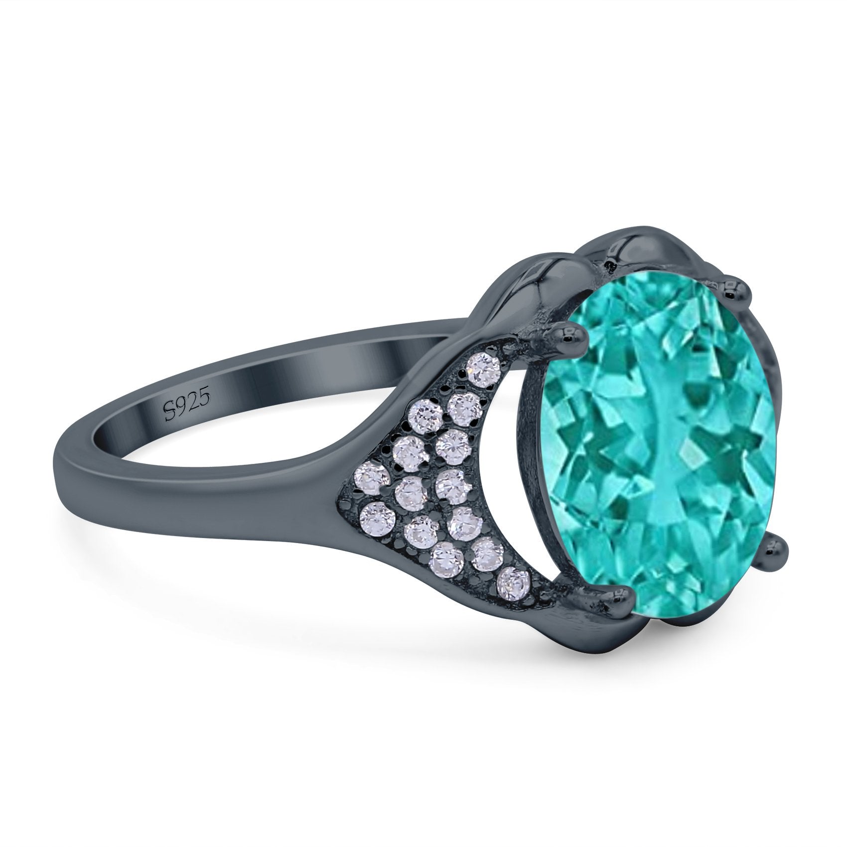 Oval Art Deco Wedding Engagement Bridal Ring Simulated Cubic Zirconia 925 Sterling Silver