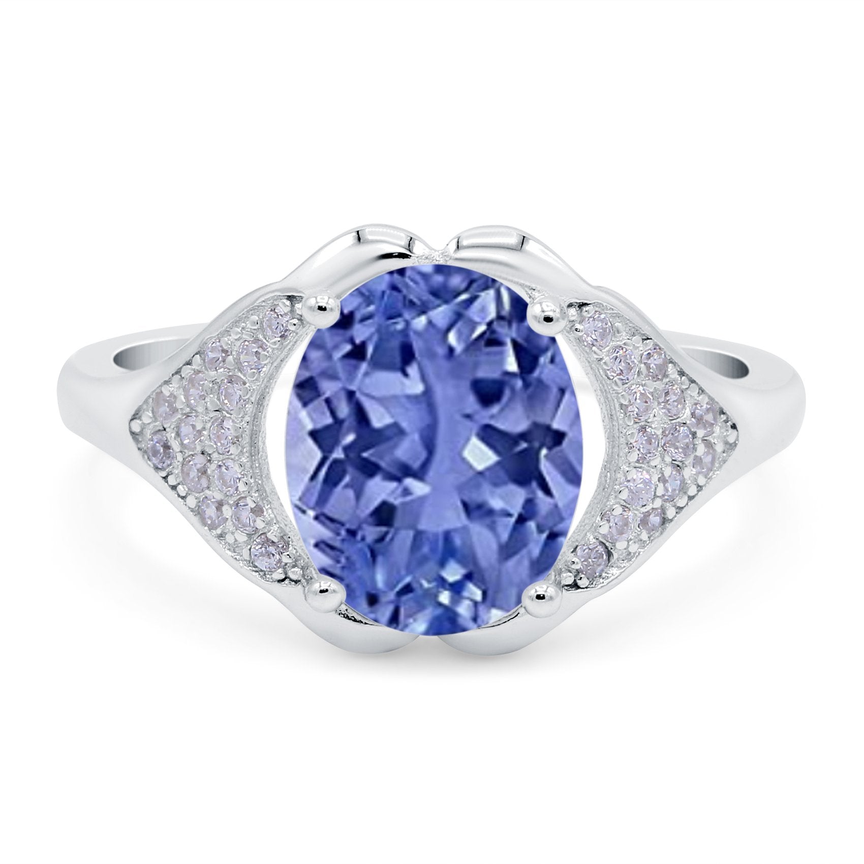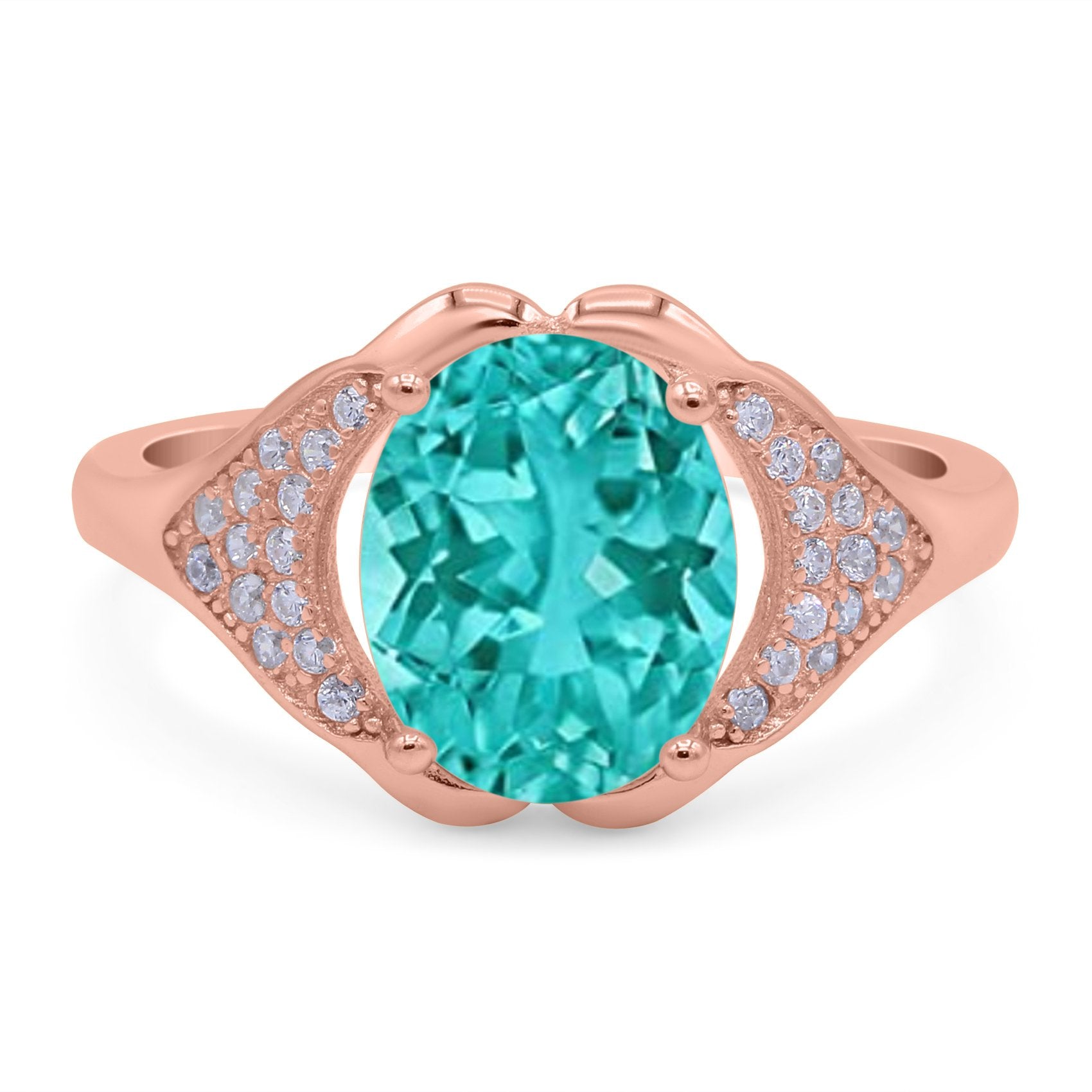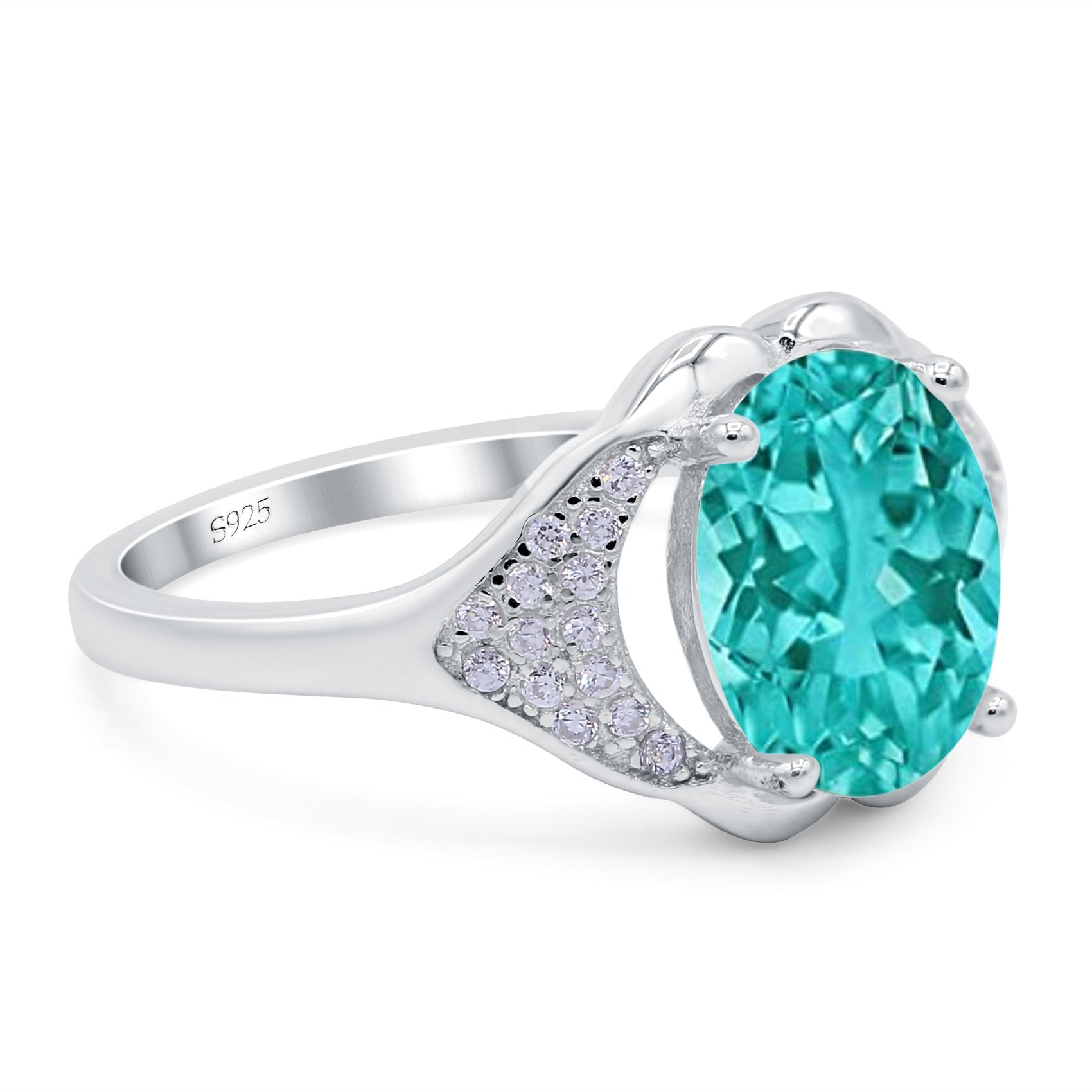 Oval Art Deco Wedding Engagement Bridal Ring Simulated Cubic Zirconia 925 Sterling Silver