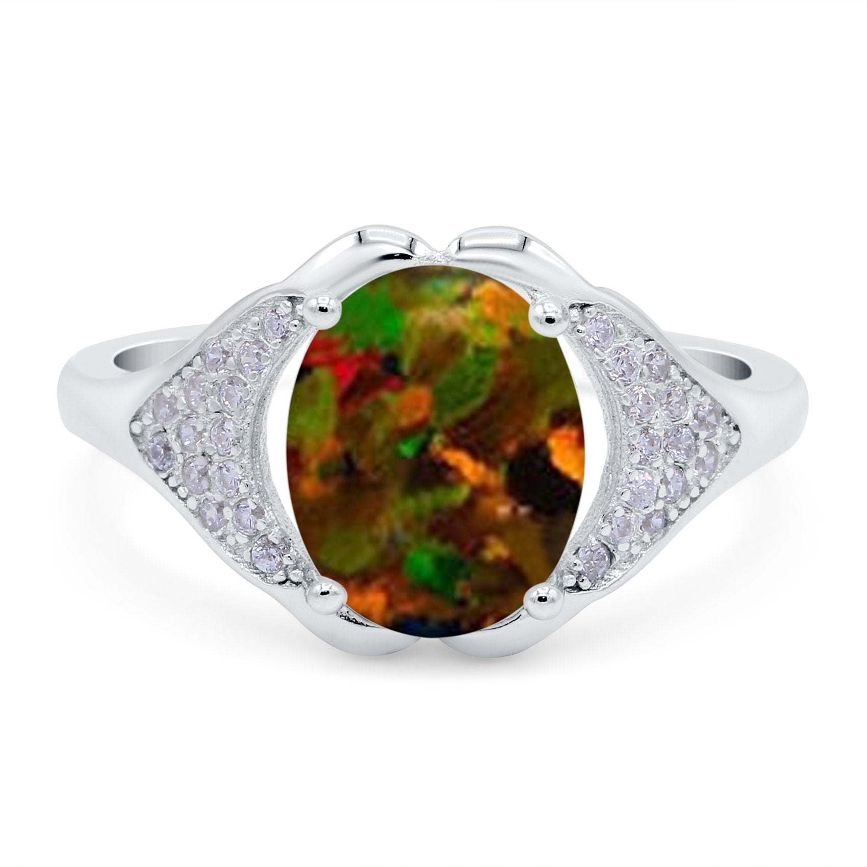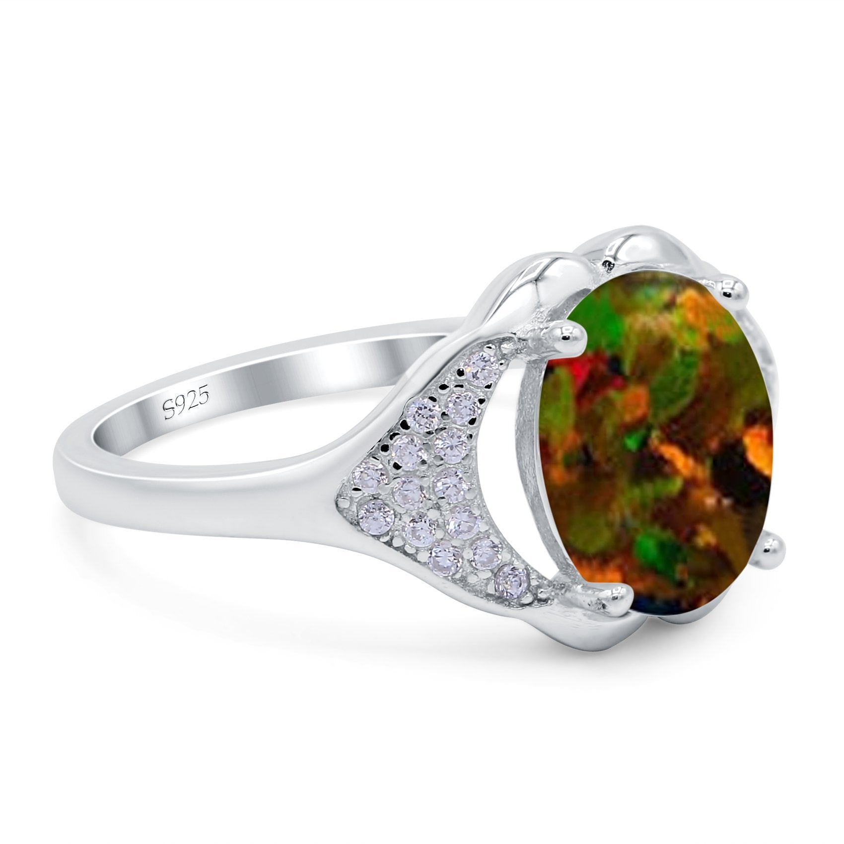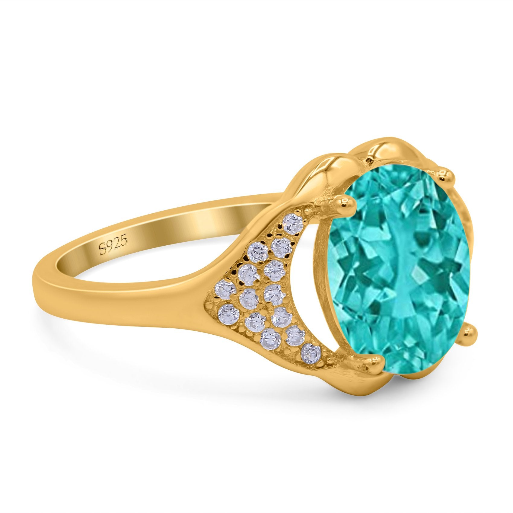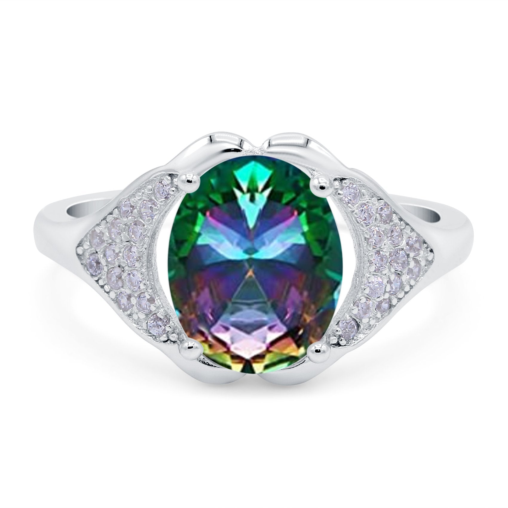 Oval Art Deco Wedding Engagement Bridal Ring Simulated Cubic Zirconia 925 Sterling Silver