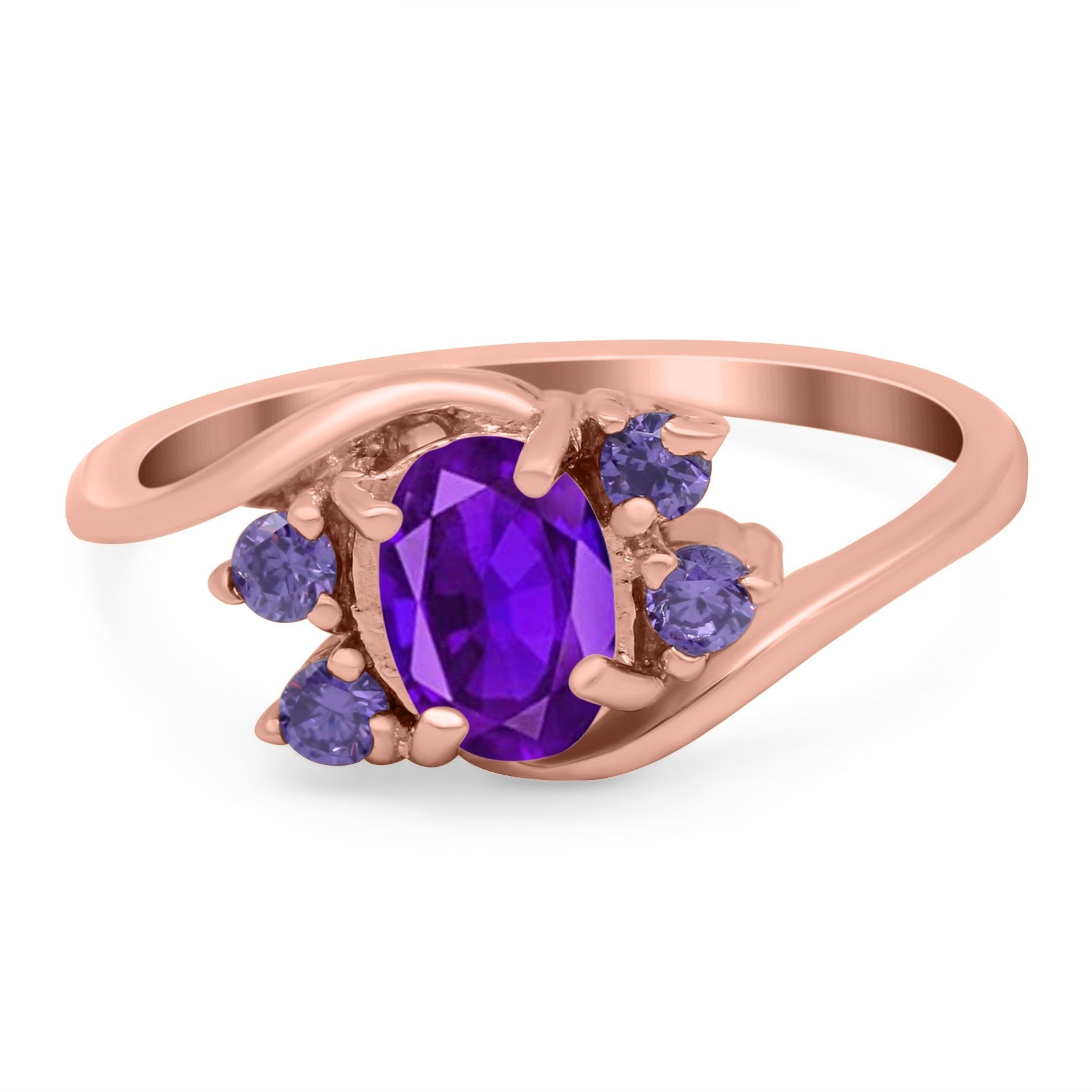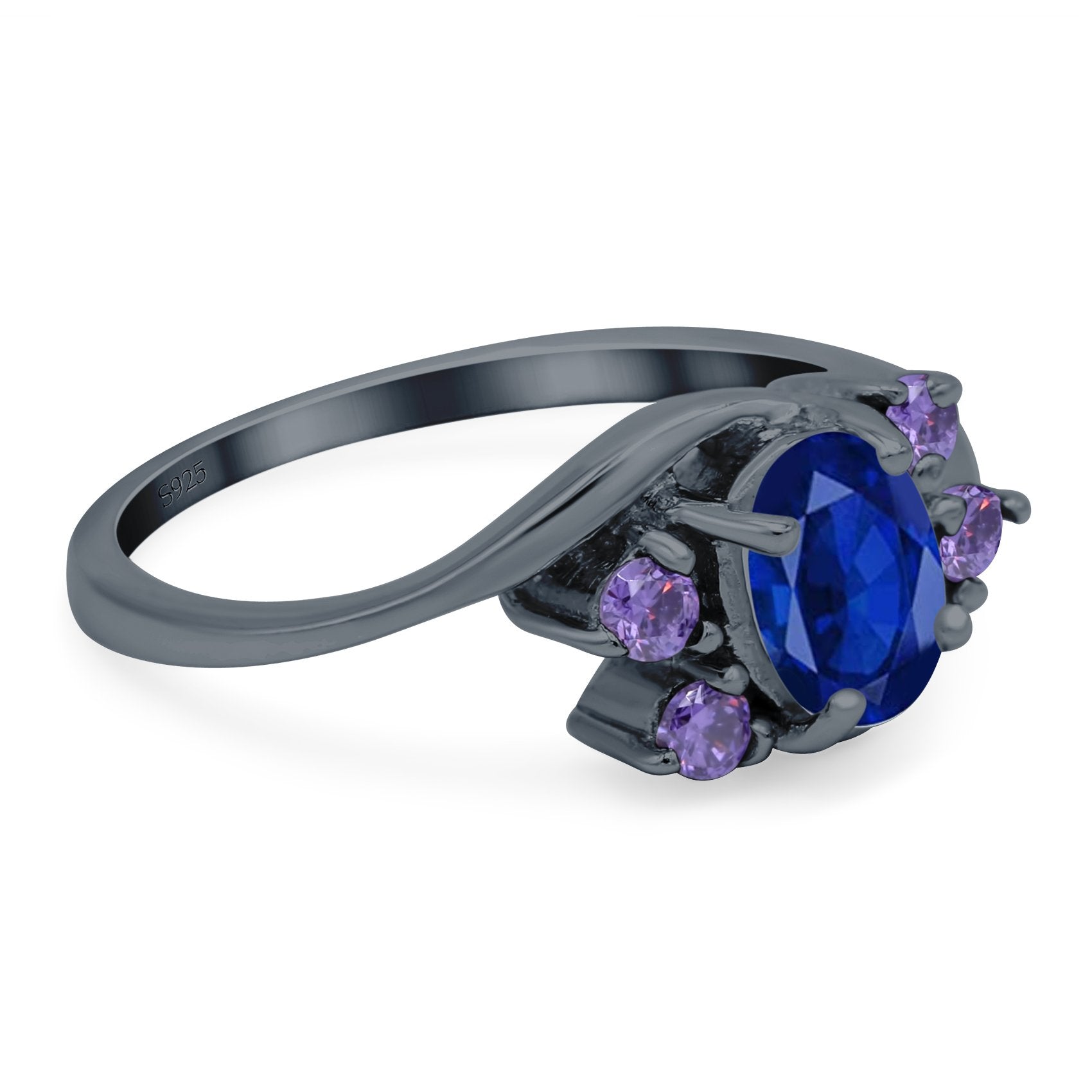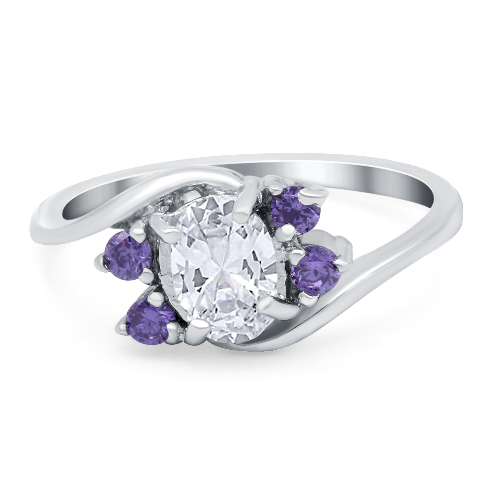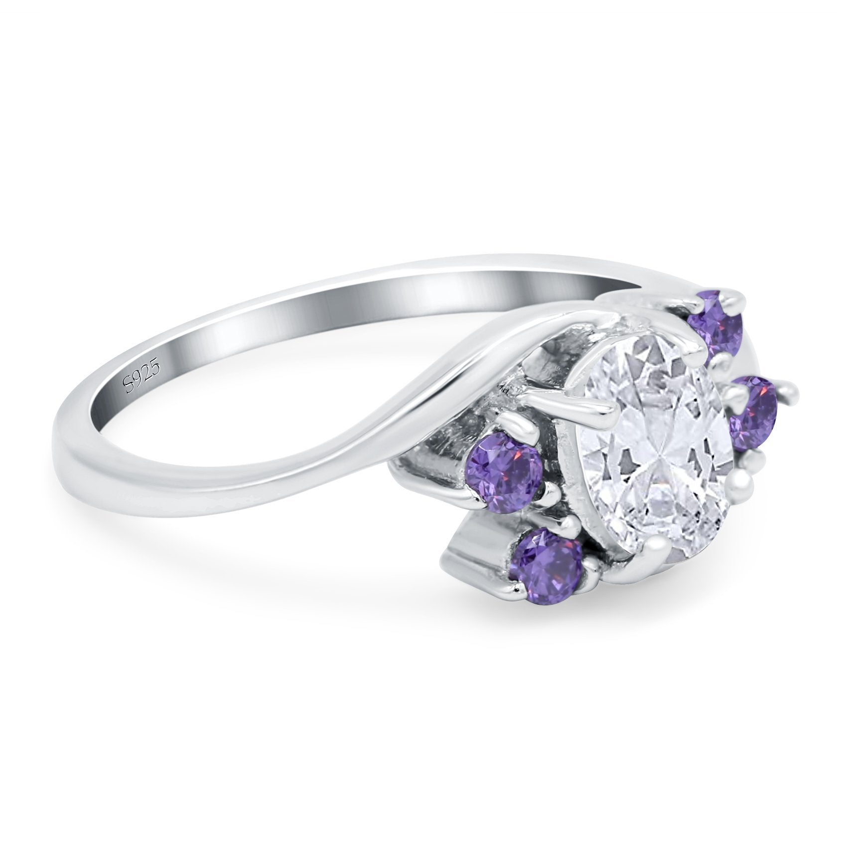 Oval Art Deco Wedding Ring Simulated Amethyst Cubic Zirconia 925 Sterling Silver
