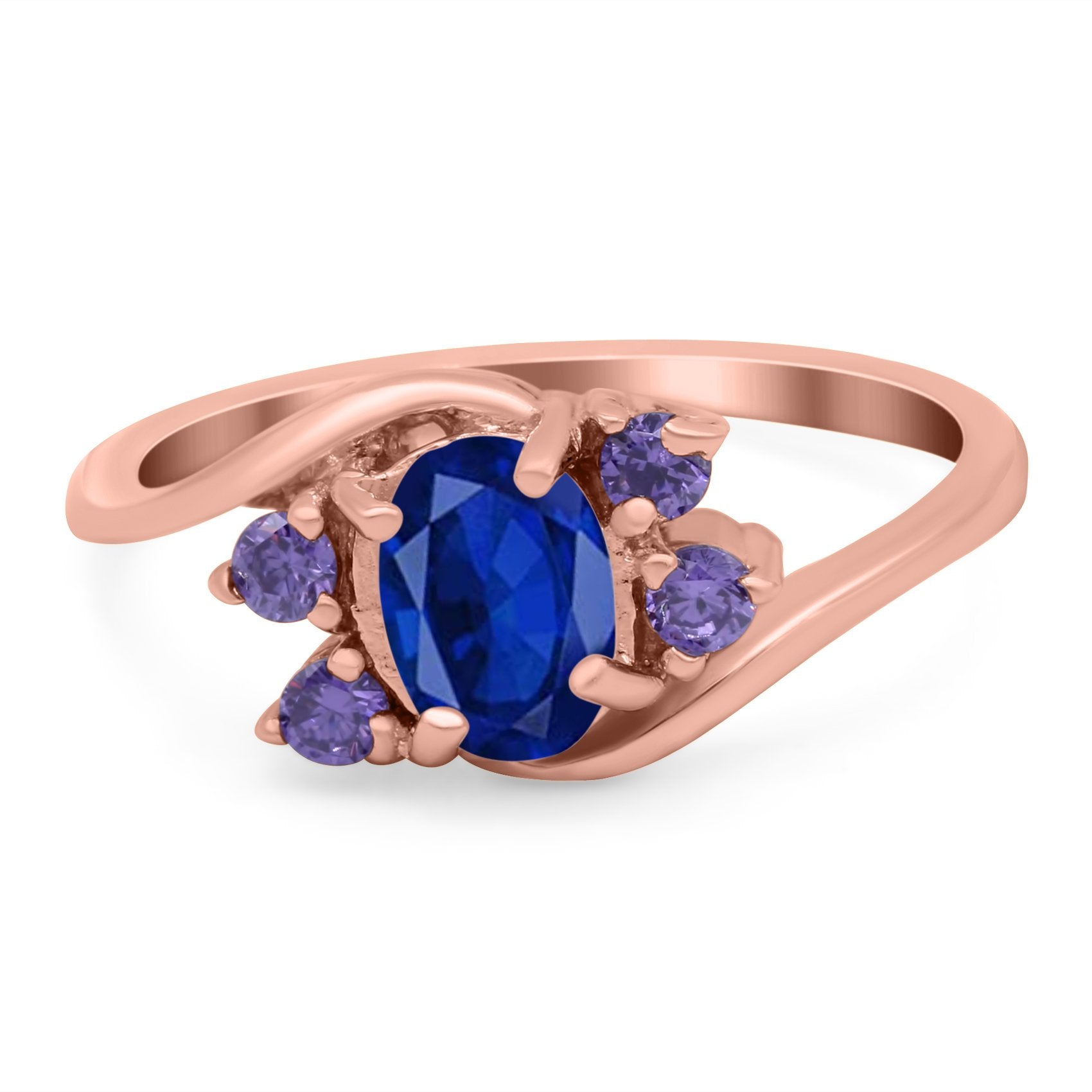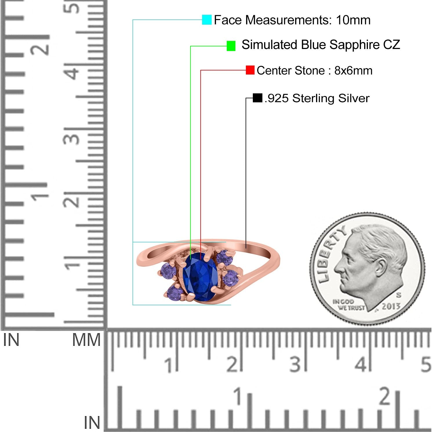 Rose Tone, Simulated Blue Sapphire CZ