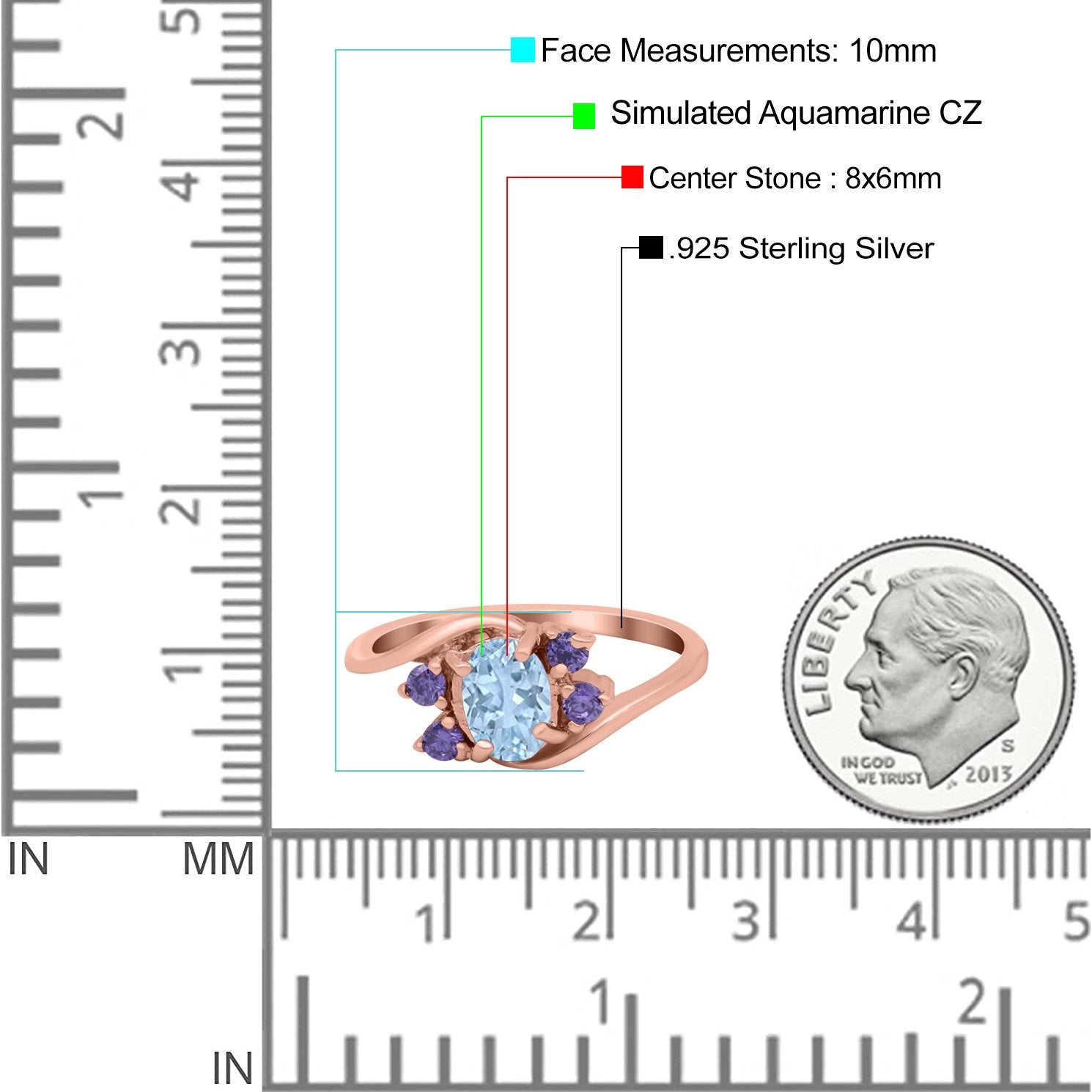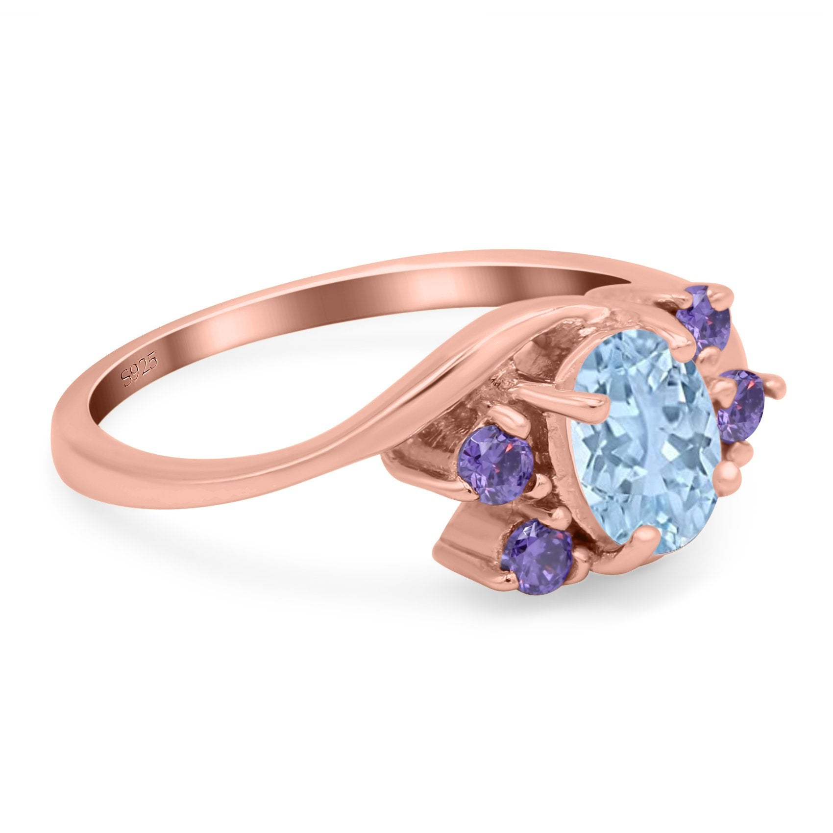 Rose Tone, Simulated Aquamarine CZ