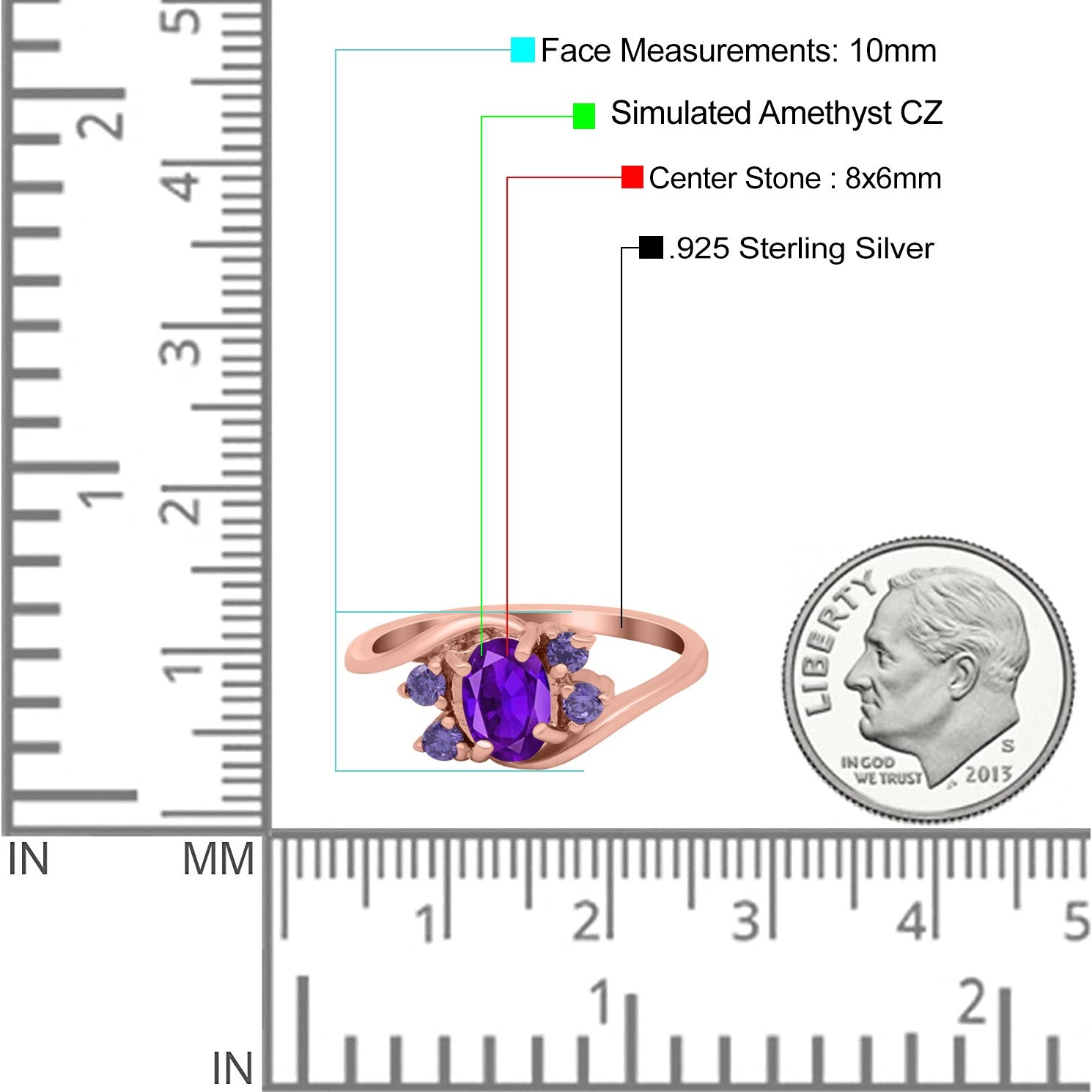 Rose Tone, Simulated Amethyst CZ