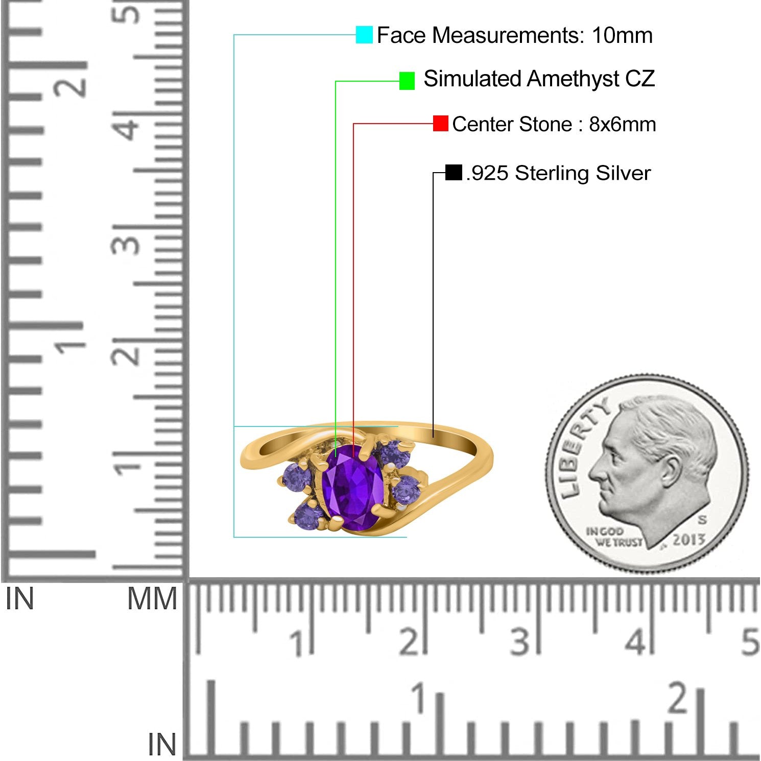 Yellow Tone, Simulated Amethyst CZ