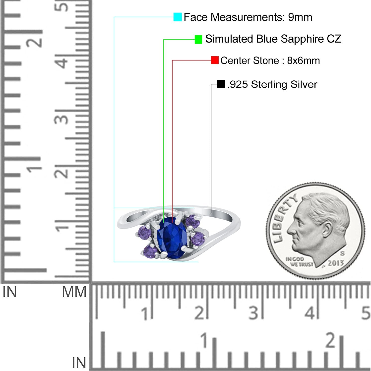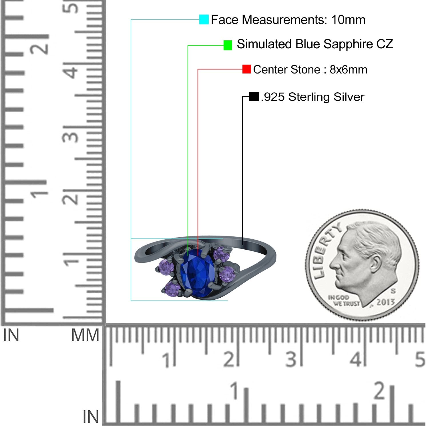 Black Tone, Simulated Blue Sapphire CZ