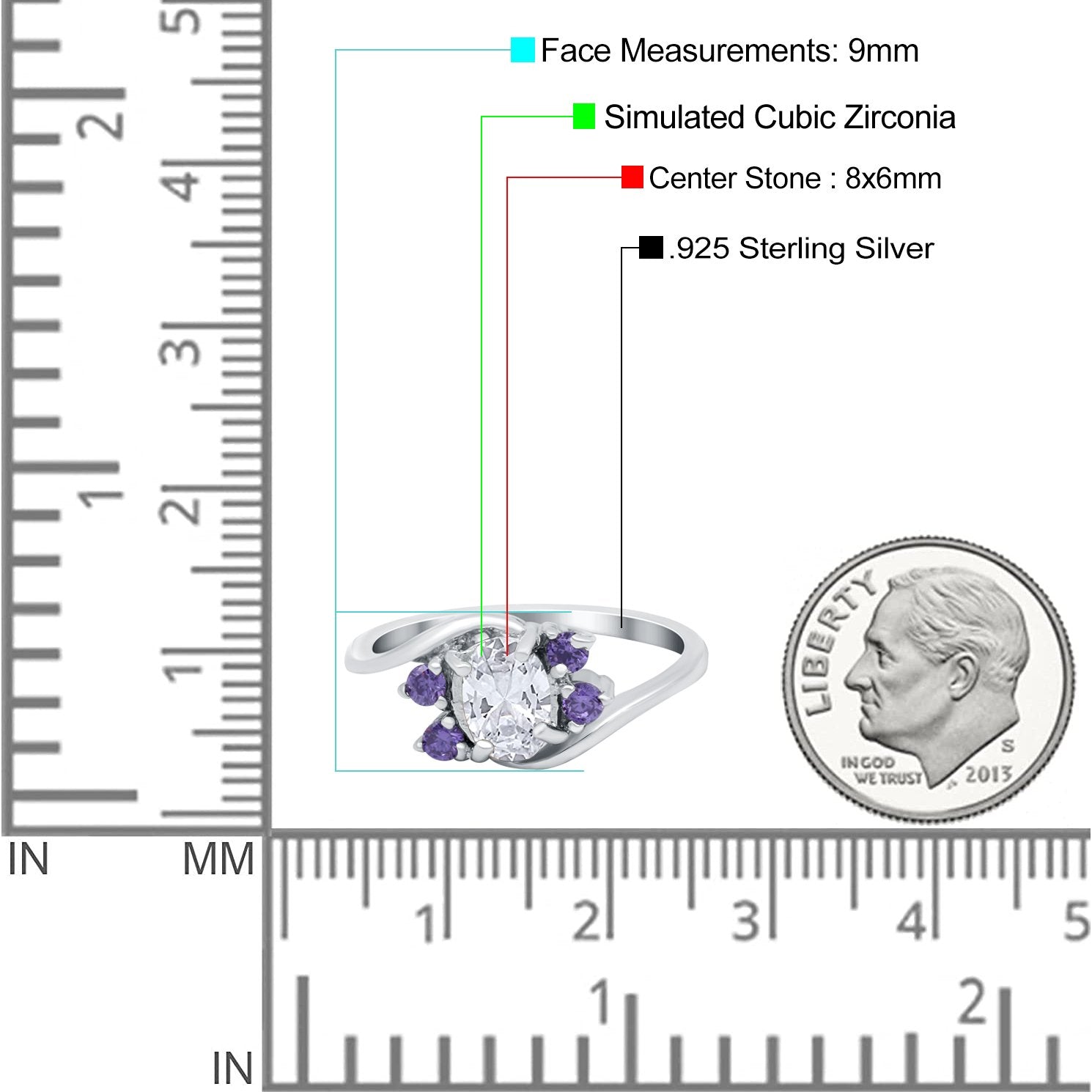 Center Stone Measurements: 8mmx6mm