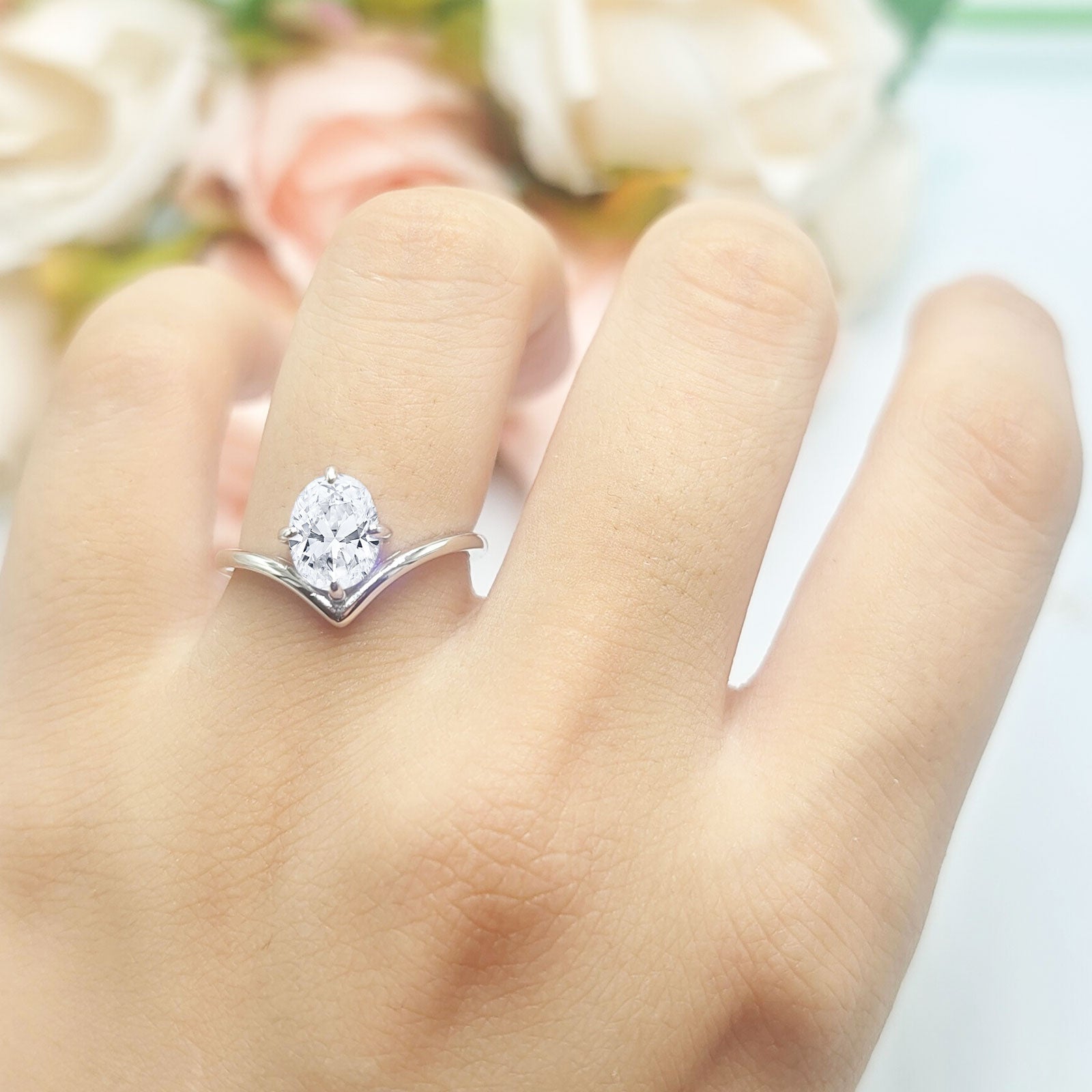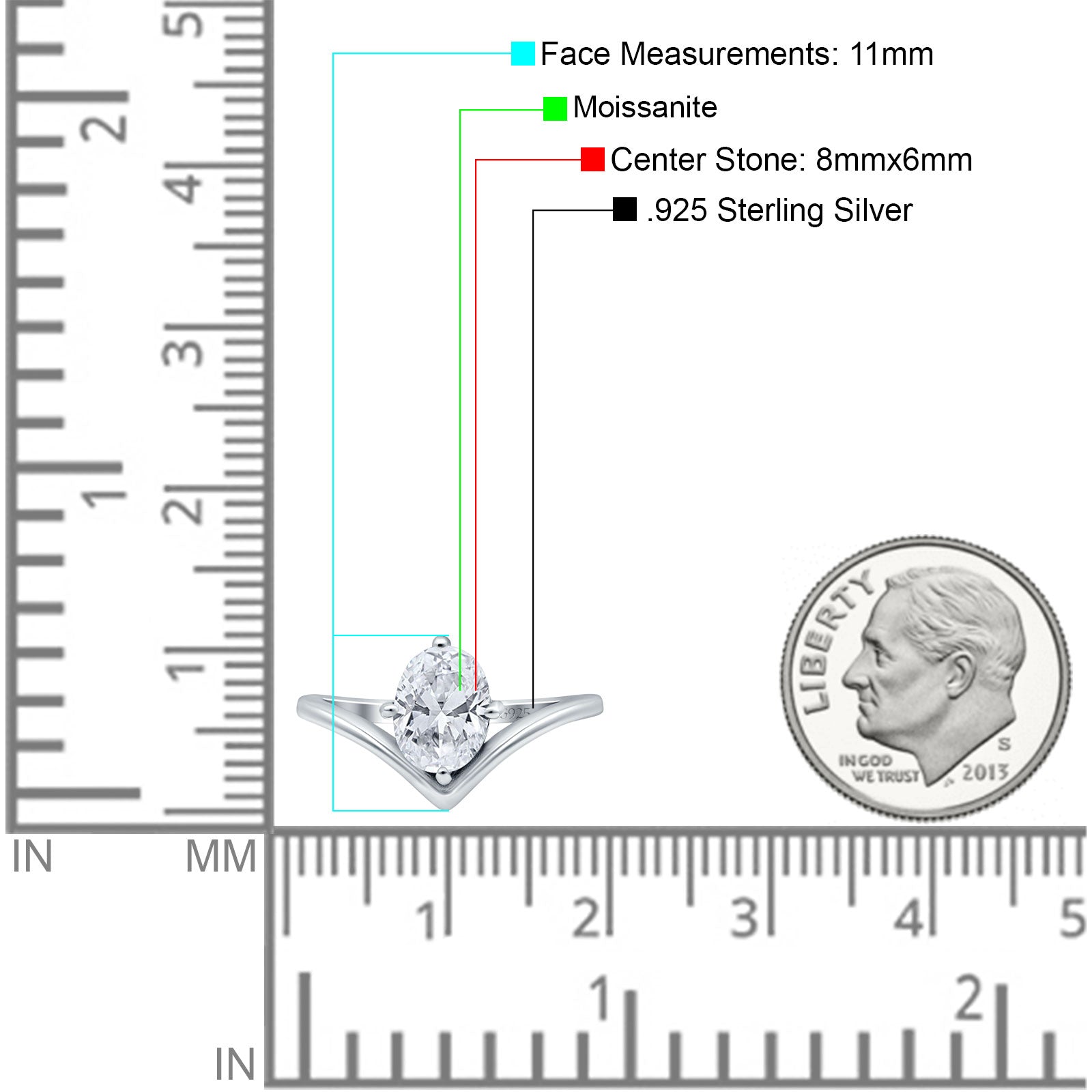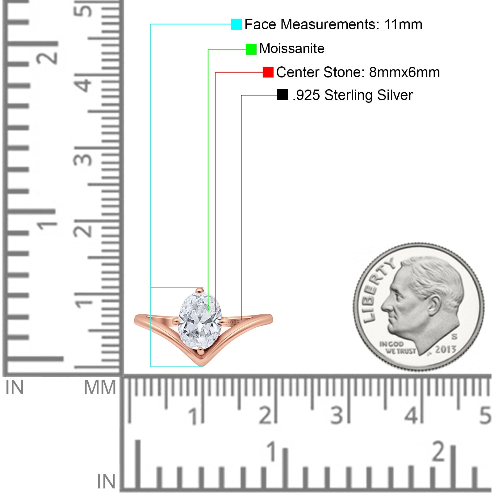 Oval Cut Moissanite V Midi Band Solitaire Ring 925 Sterling Silver