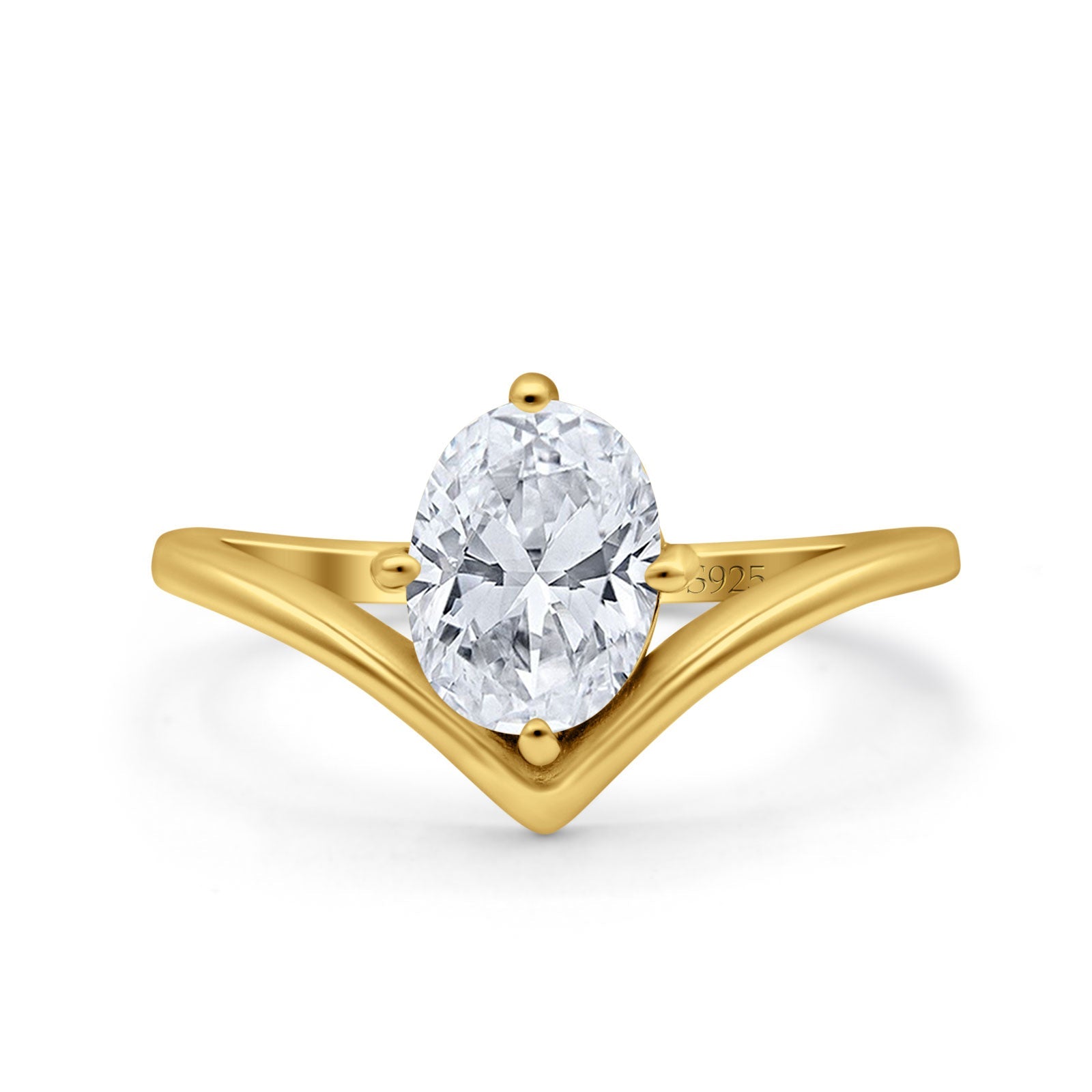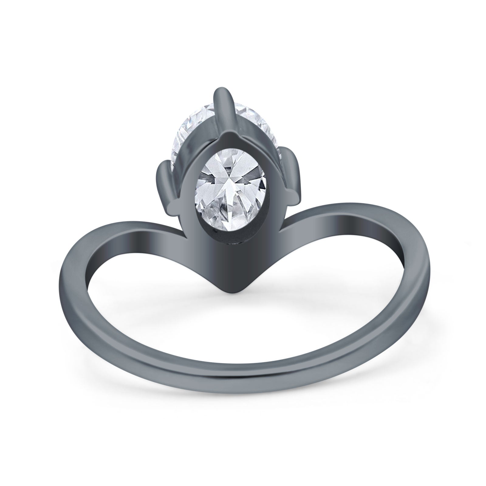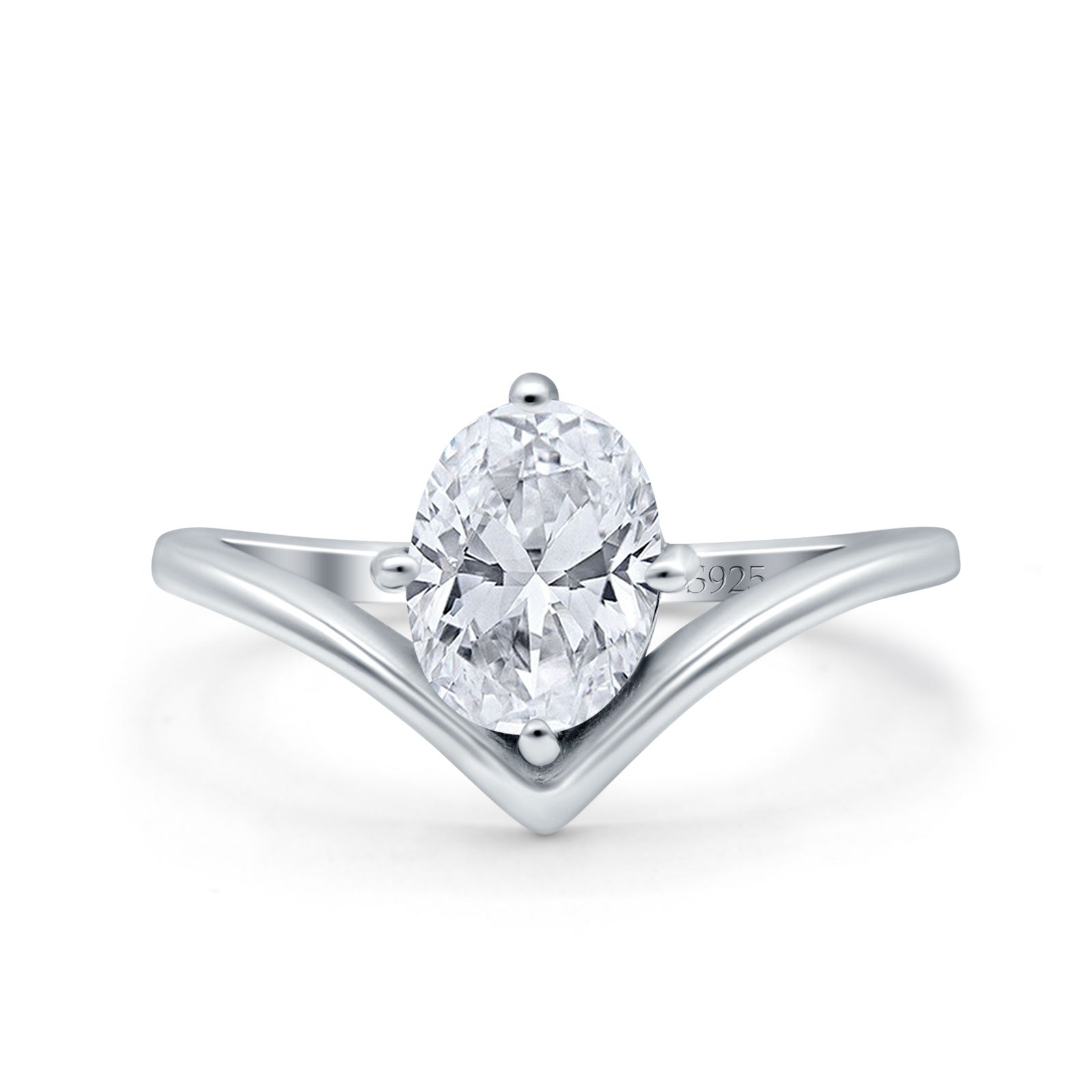 Oval Cut Moissanite V Midi Band Solitaire Ring 925 Sterling Silver