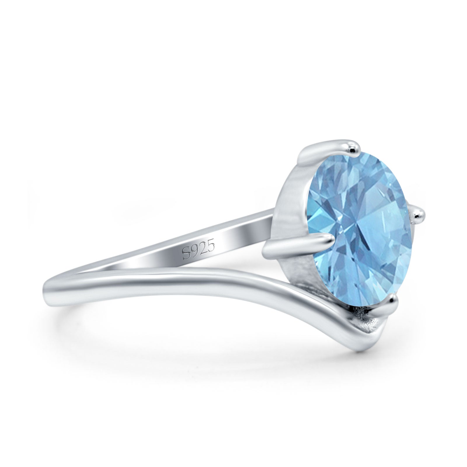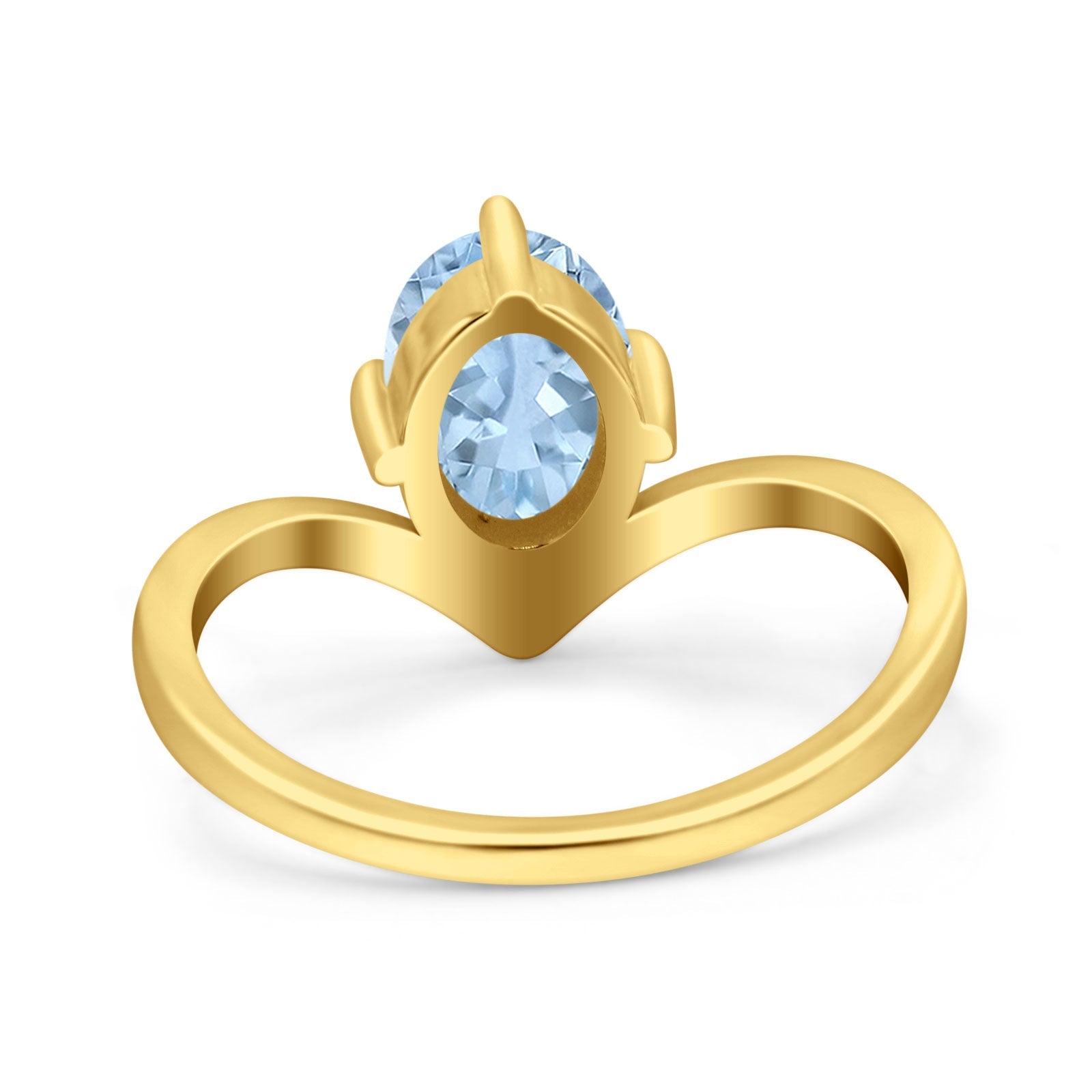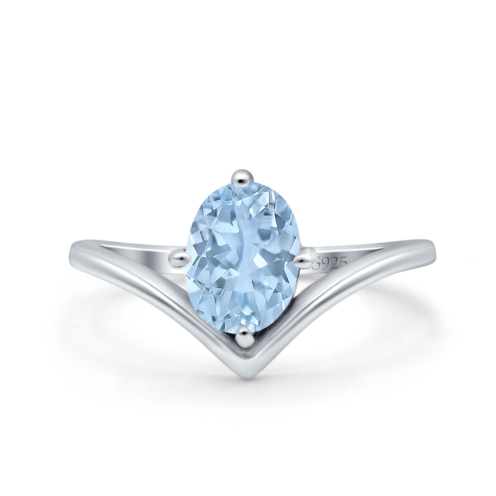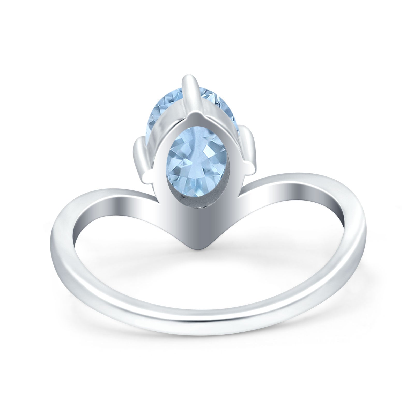 Oval Cut Natural Aquamarine V Midi Band Solitaire Ring 925 Sterling Silver